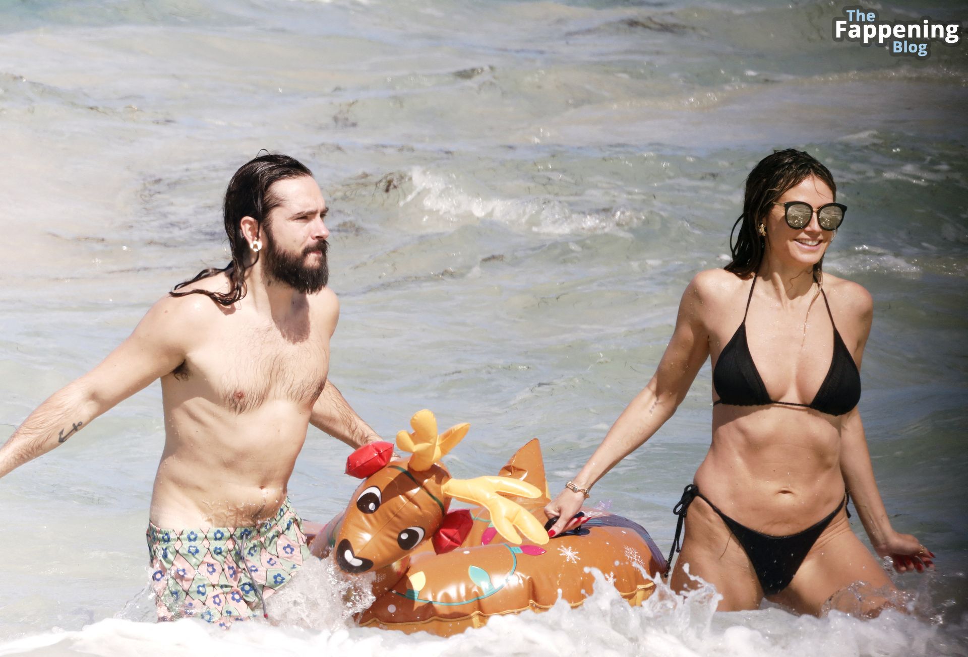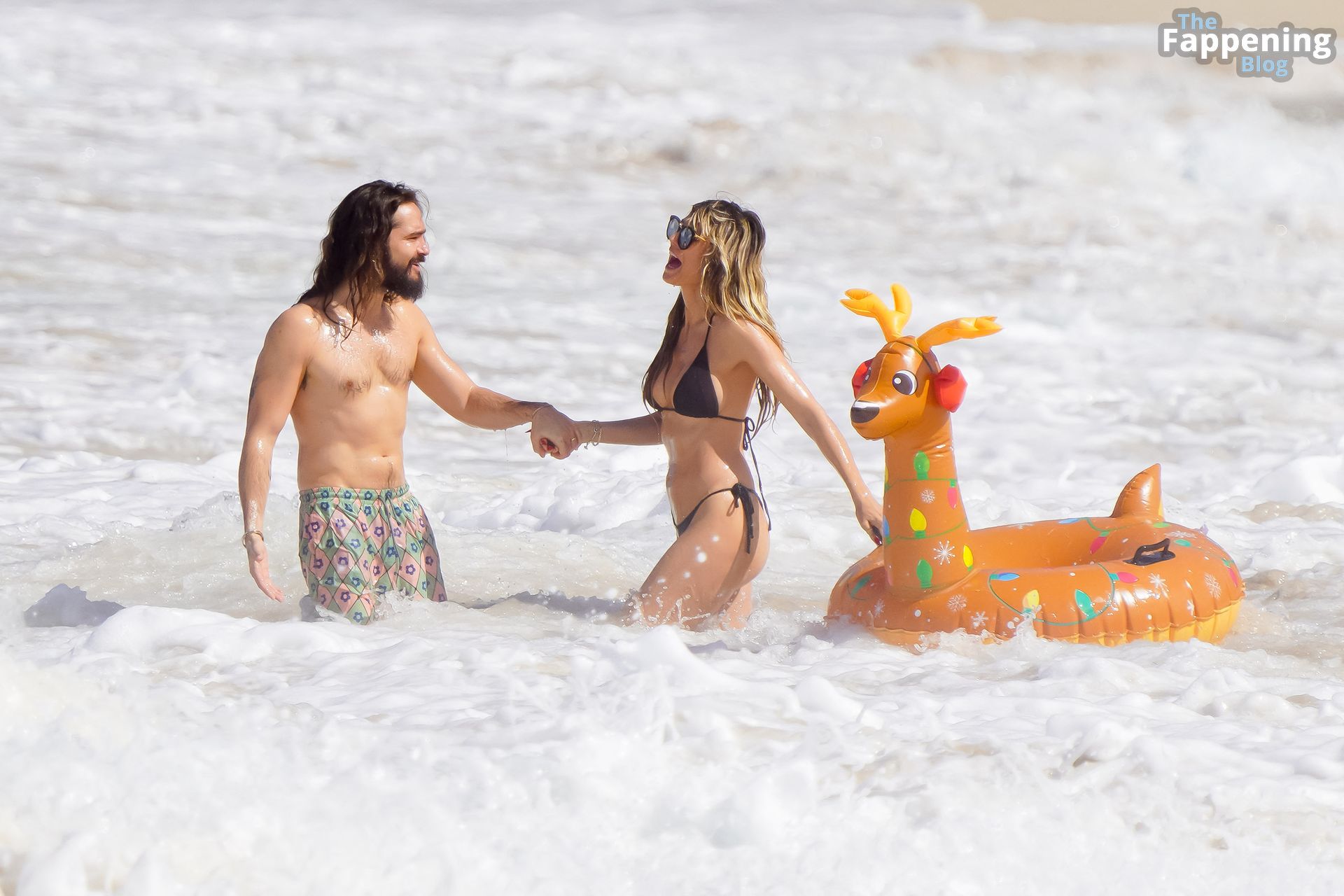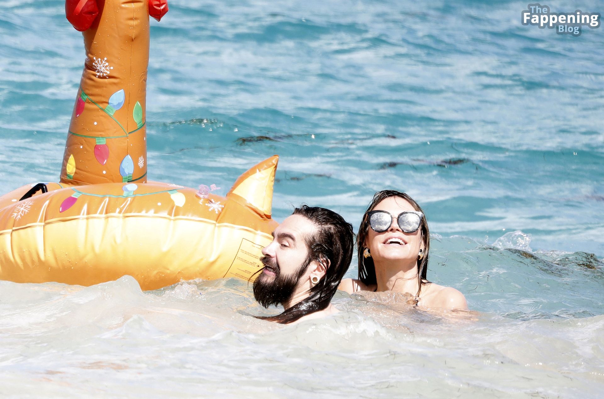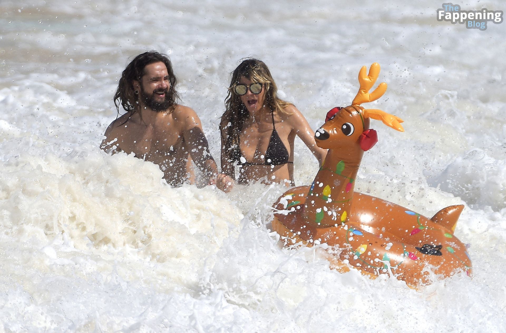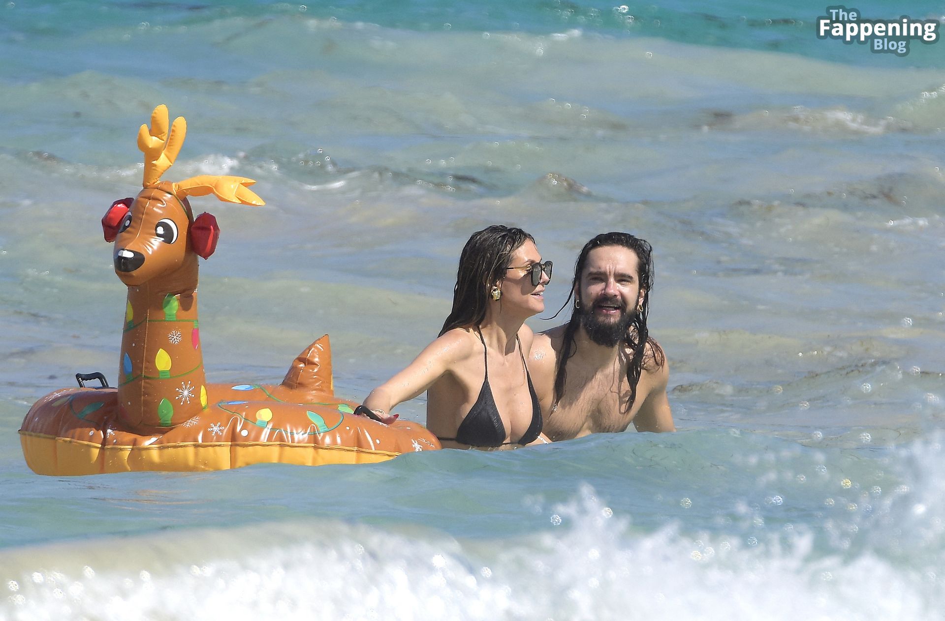 La presentadora de America’s Got Talent deslumbró con un diminuto bikini negro mientras ella y el rockero de Tokio Hotel mostraban su cariño en público, besándose y tomados de la mano, durante sus vacaciones de invierno en St Bart’s. Madre de cuatro hijos, Heidi chapoteó en las olas en un reno inflable mientras Tom, atento, la observaba.