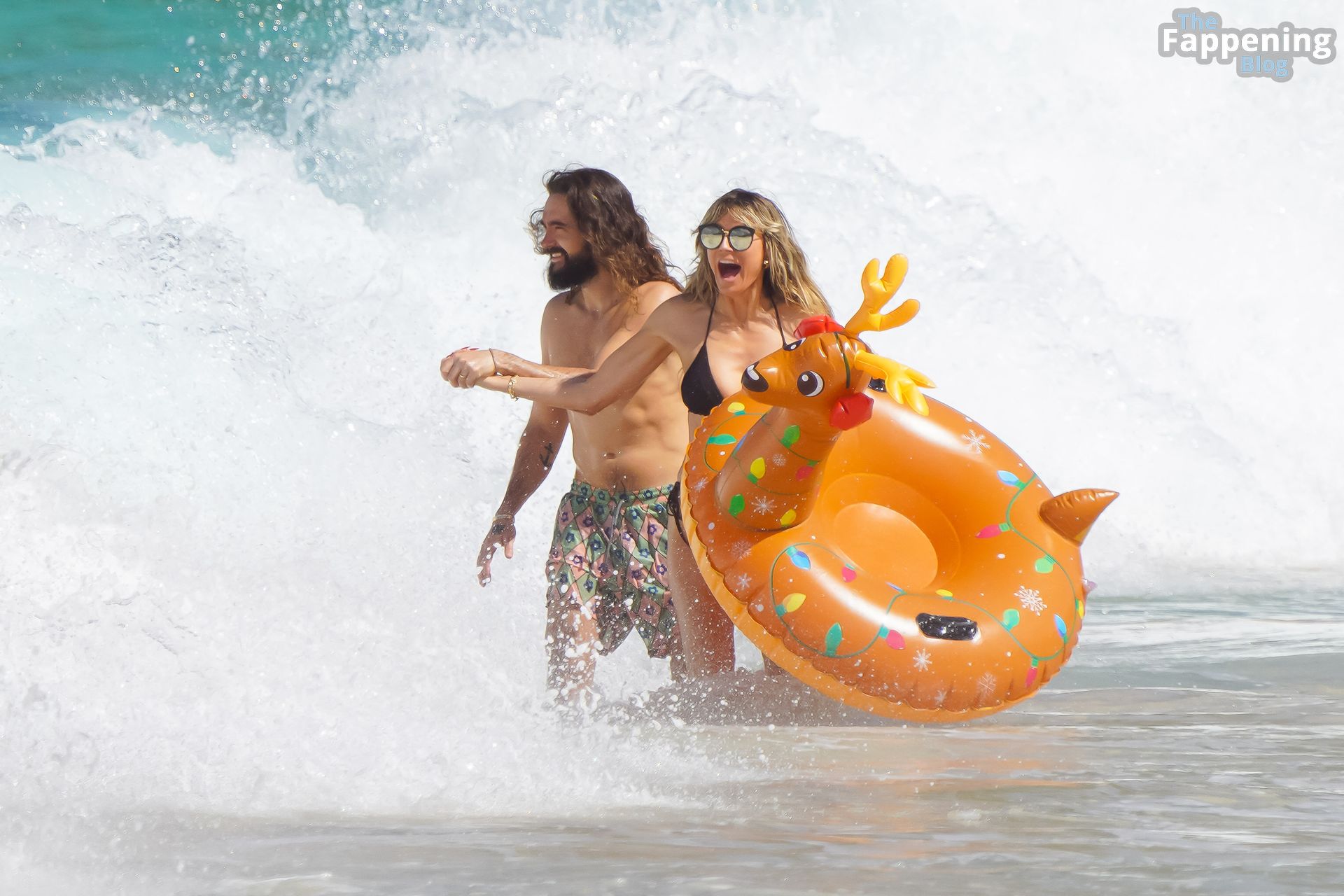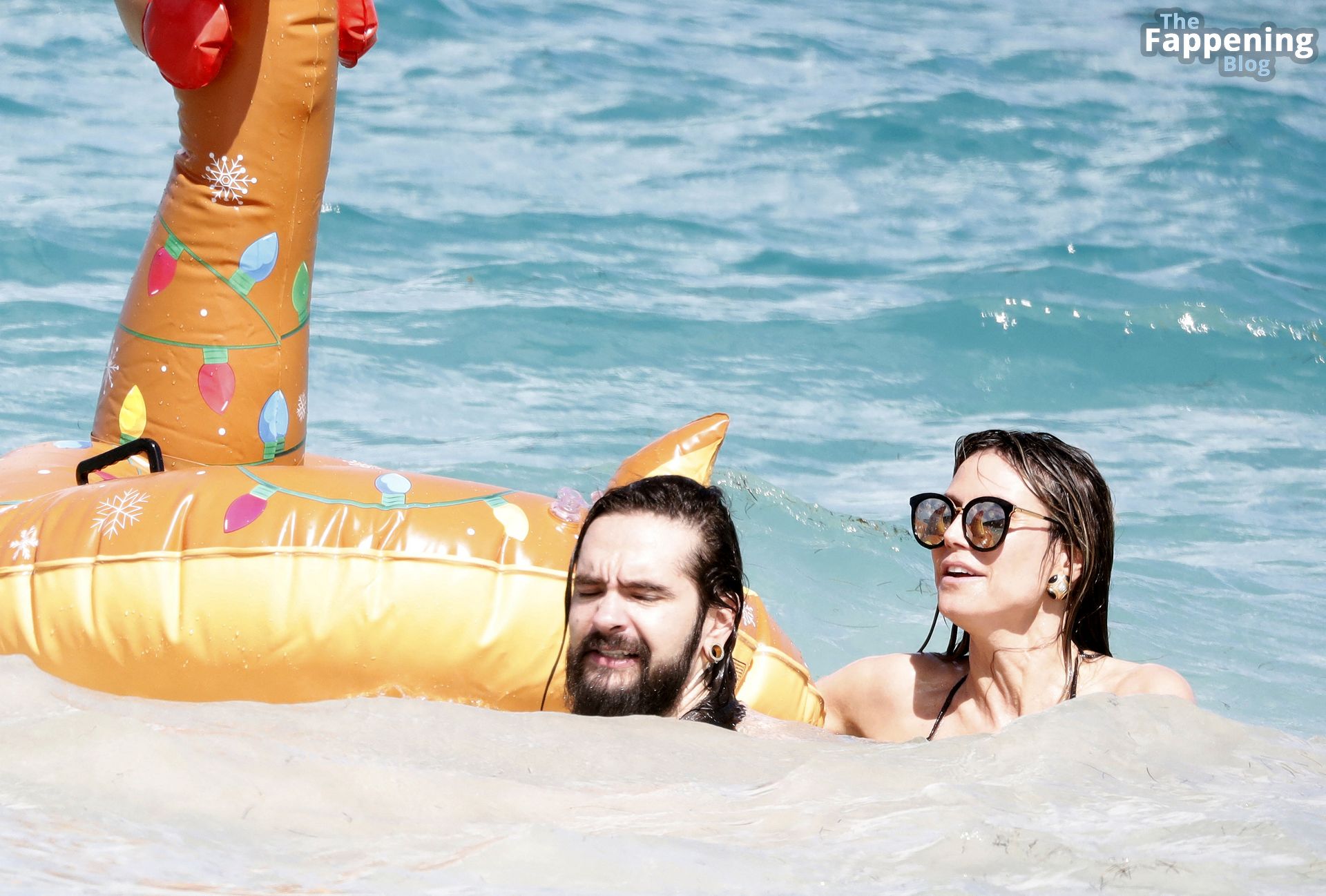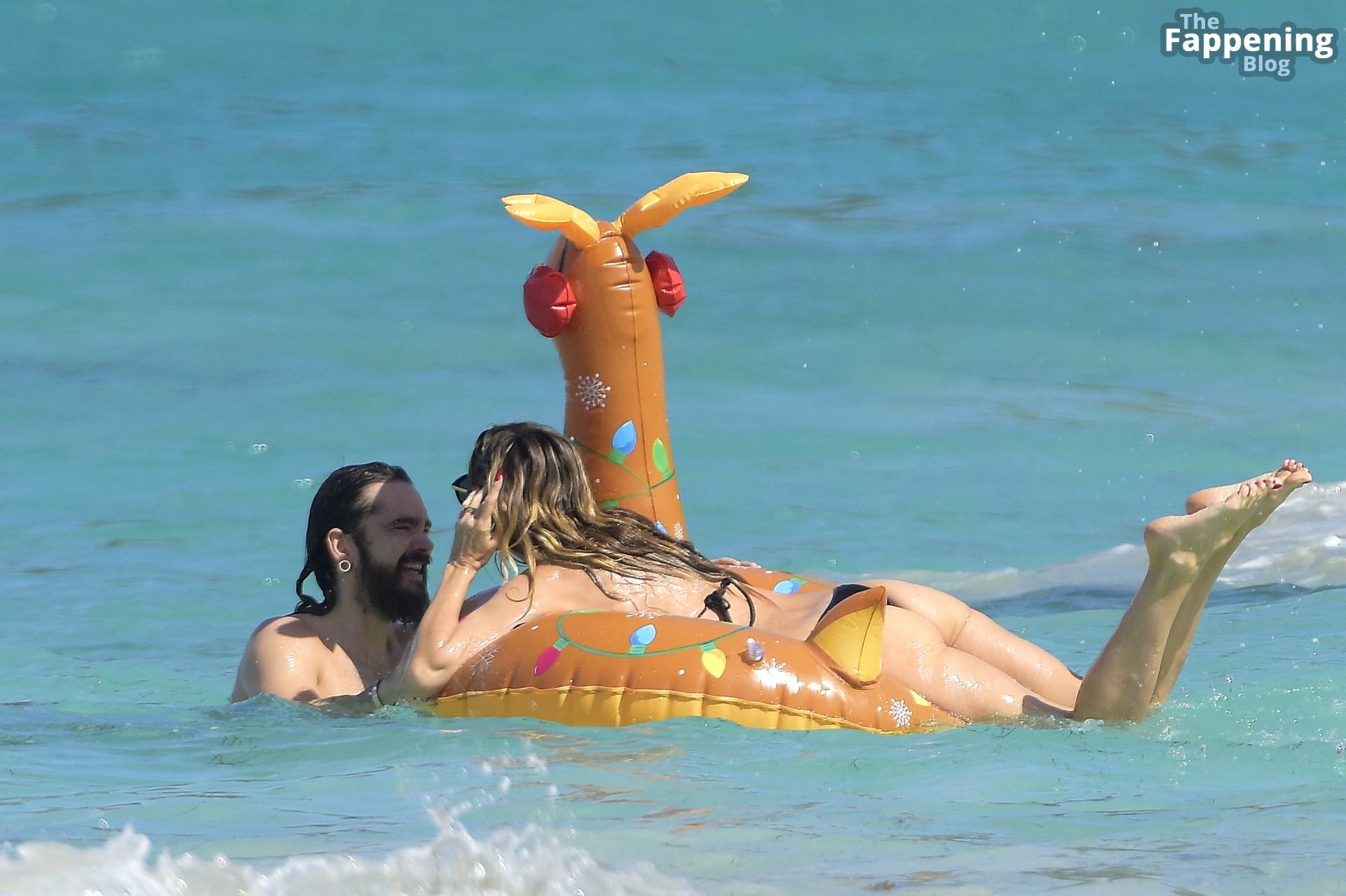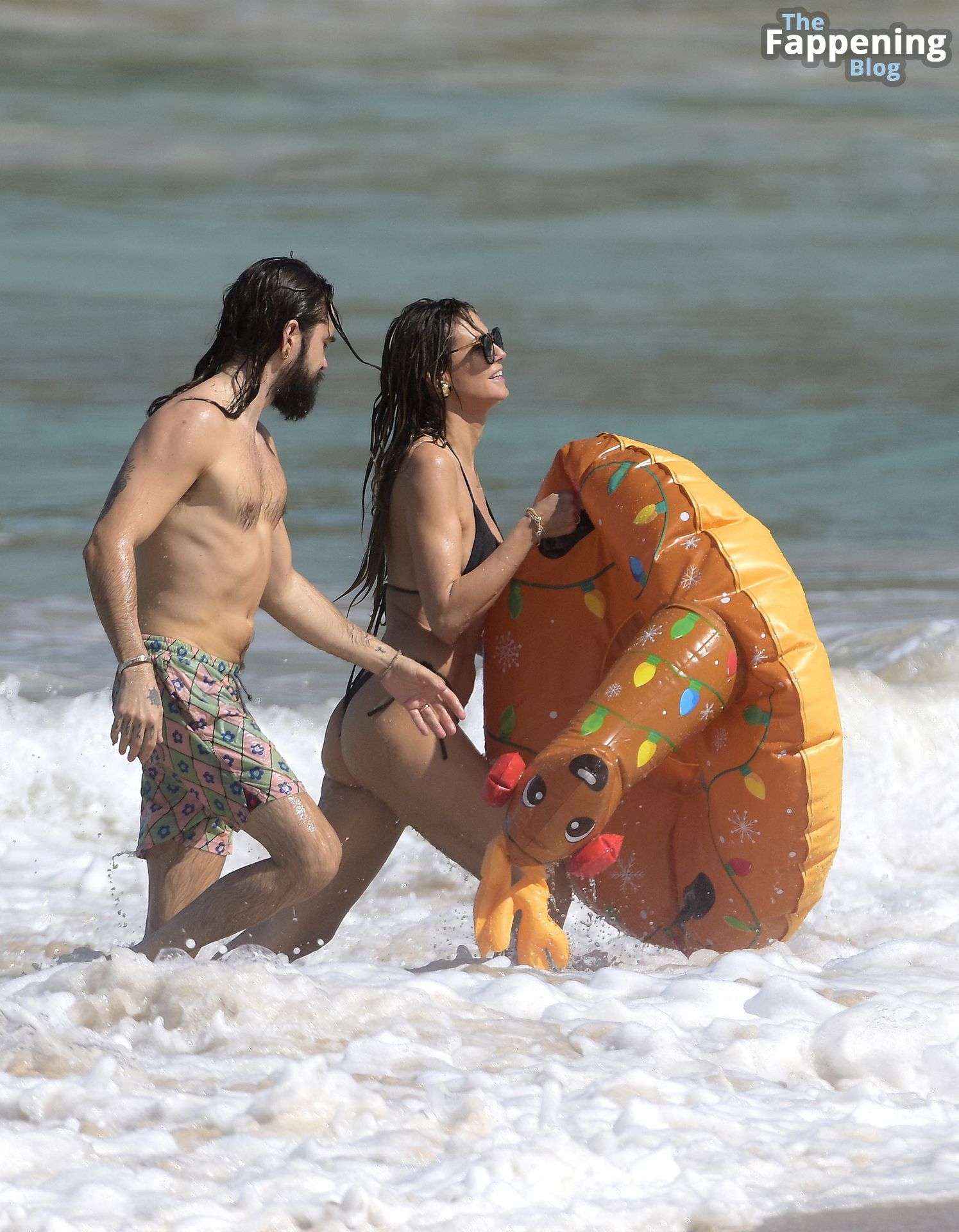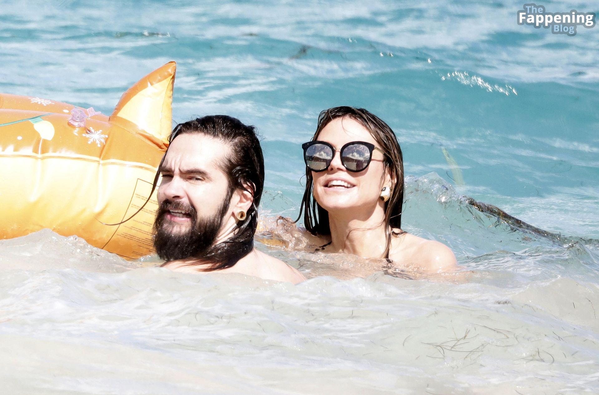 La presentadora de America’s Got Talent deslumbró con un diminuto bikini negro mientras ella y el rockero de Tokio Hotel mostraban su cariño en público, besándose y tomados de la mano, durante sus vacaciones de invierno en St Bart’s. Madre de cuatro hijos, Heidi chapoteó en las olas en un reno inflable mientras Tom, atento, la observaba.