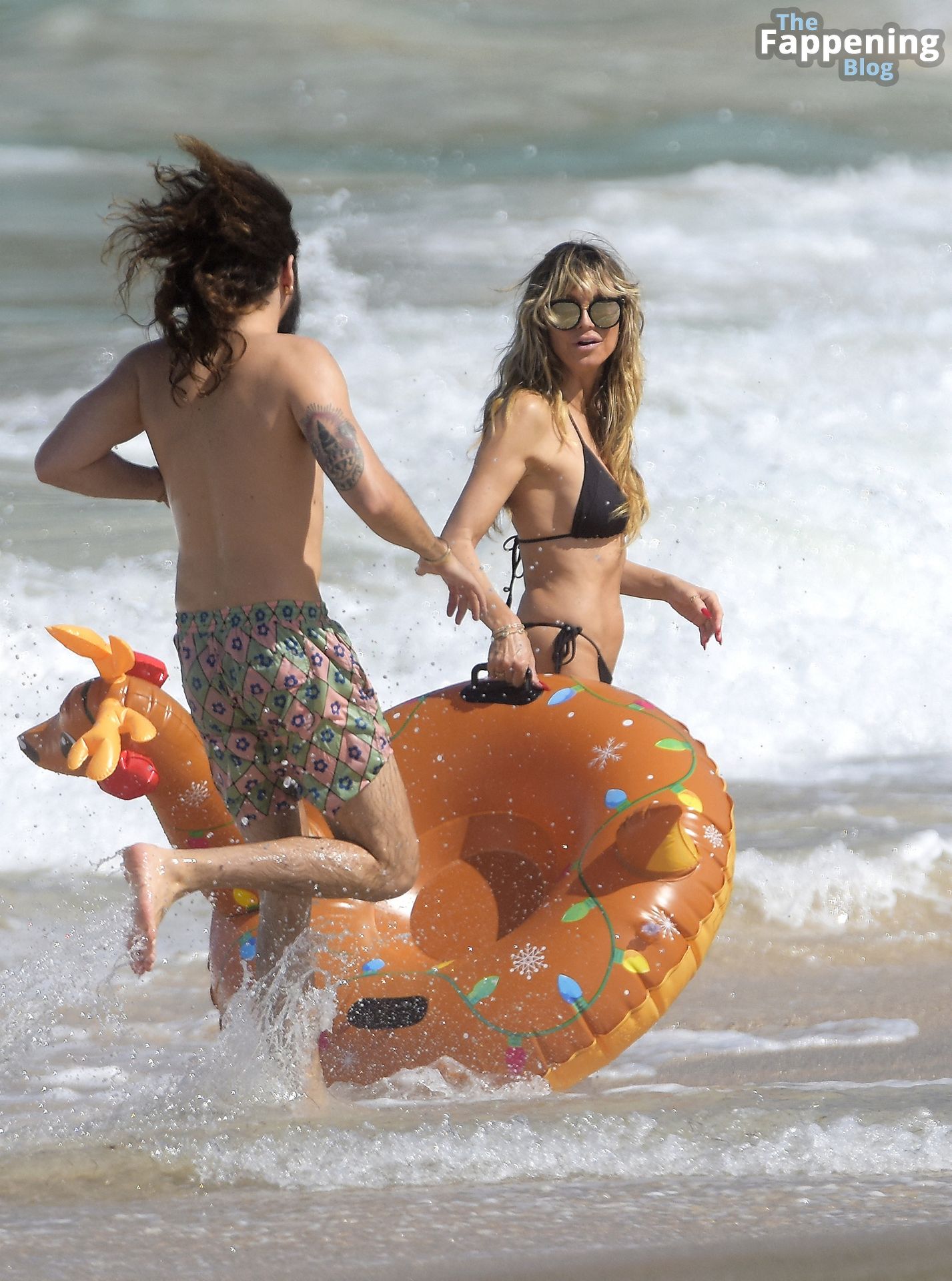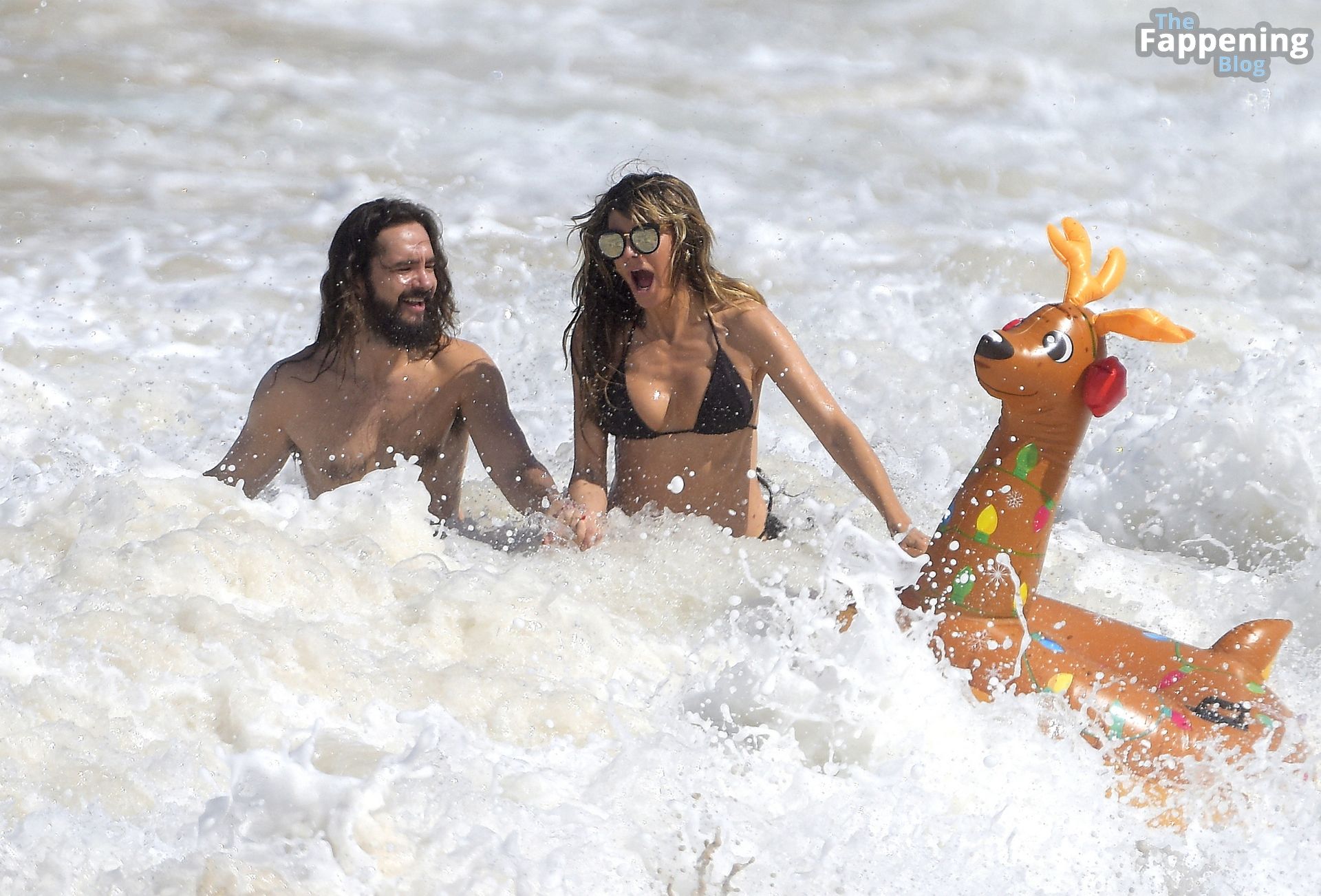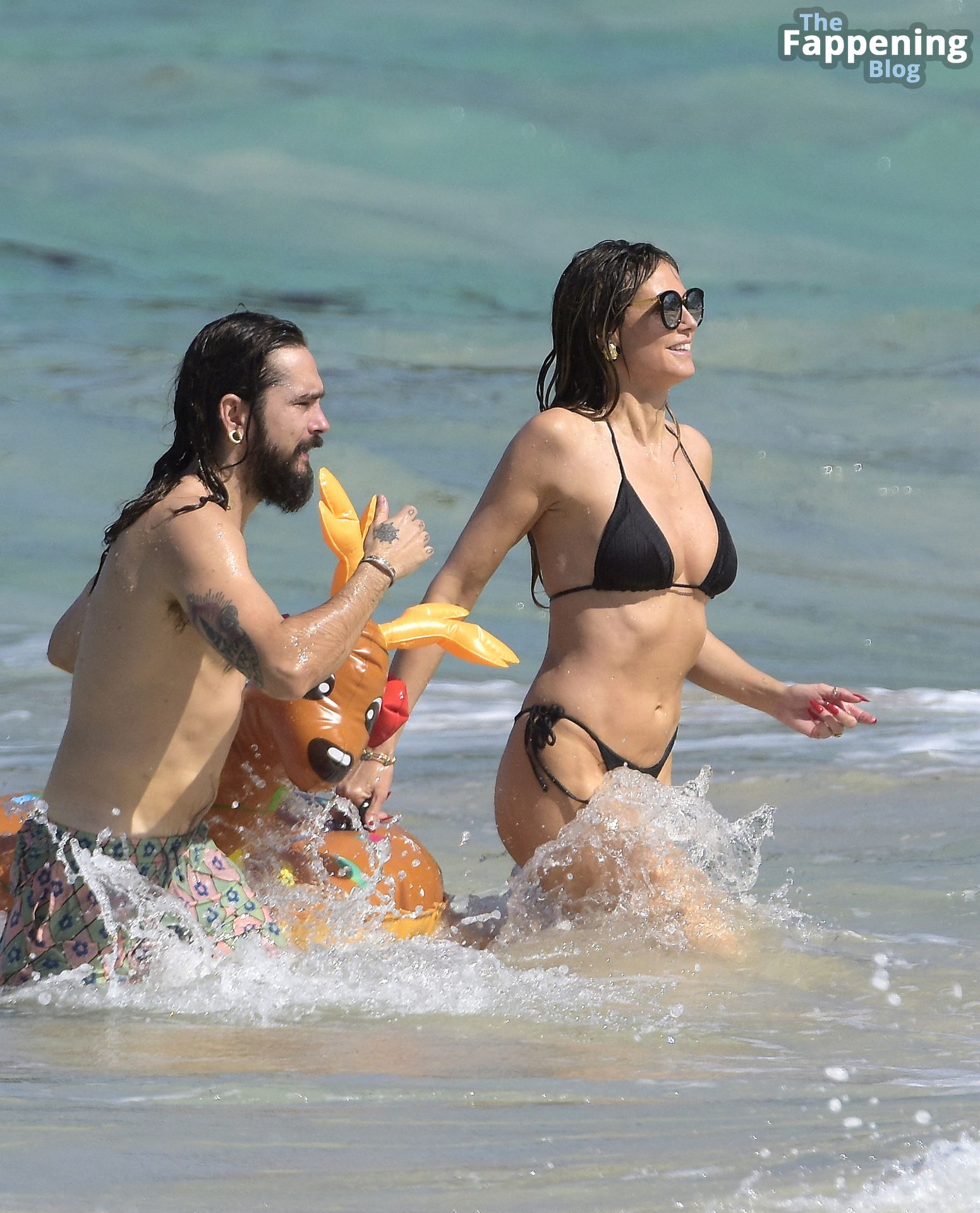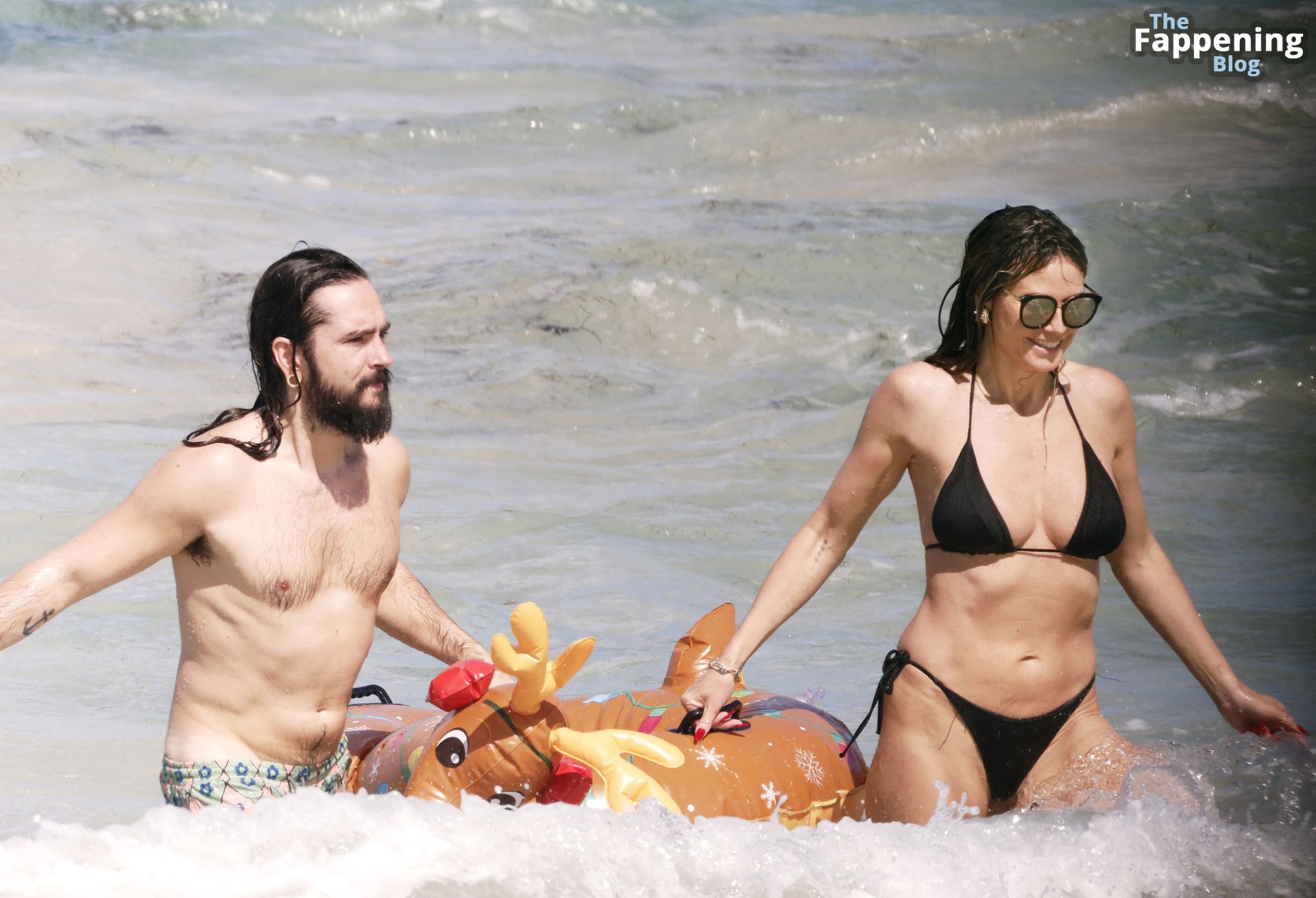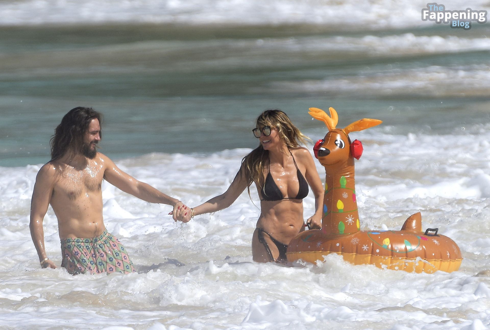 La presentadora de America’s Got Talent deslumbró con un diminuto bikini negro mientras ella y el rockero de Tokio Hotel mostraban su cariño en público, besándose y tomados de la mano, durante sus vacaciones de invierno en St Bart’s. Madre de cuatro hijos, Heidi chapoteó en las olas en un reno inflable mientras Tom, atento, la observaba.