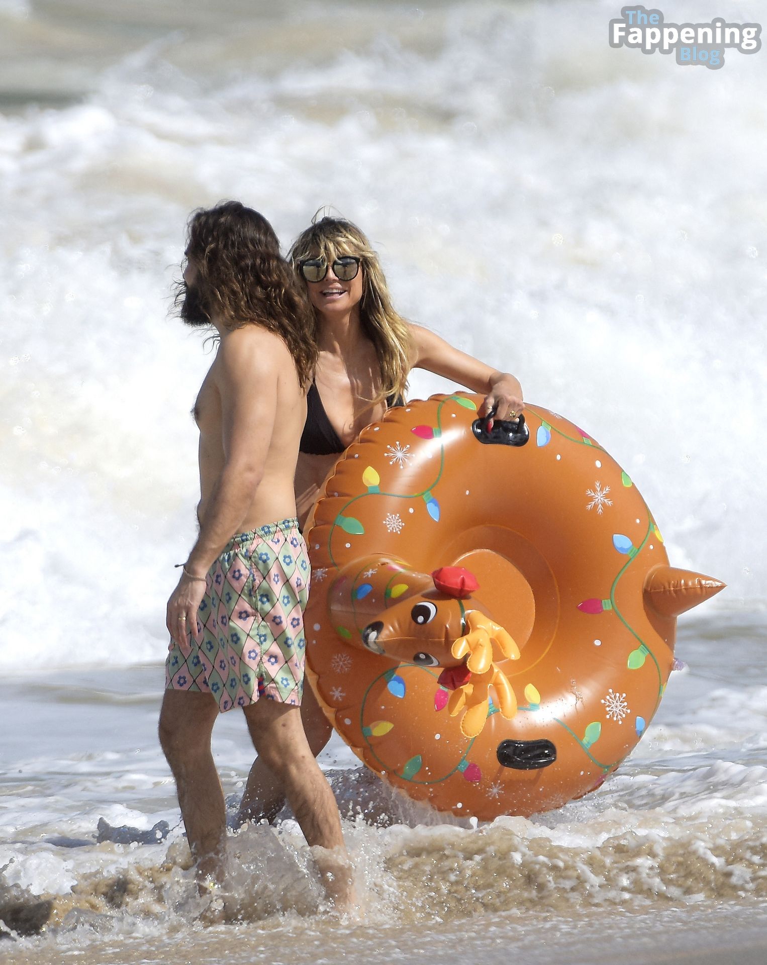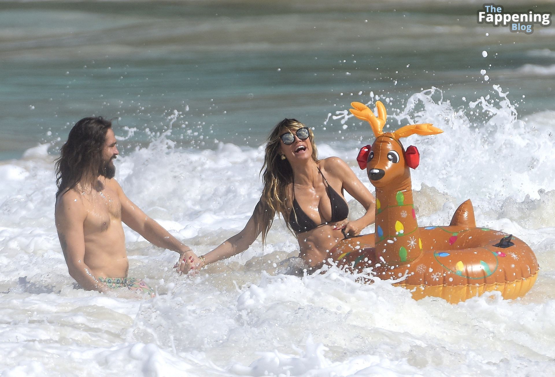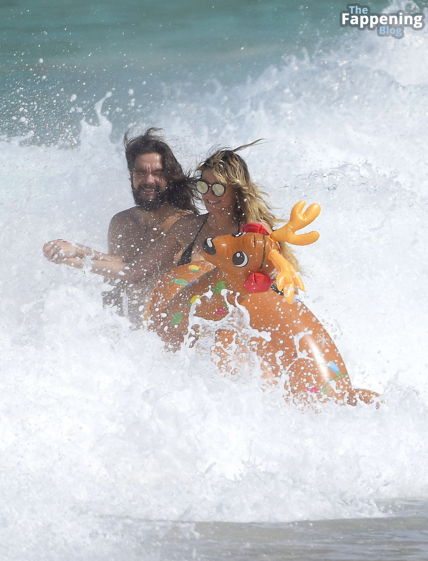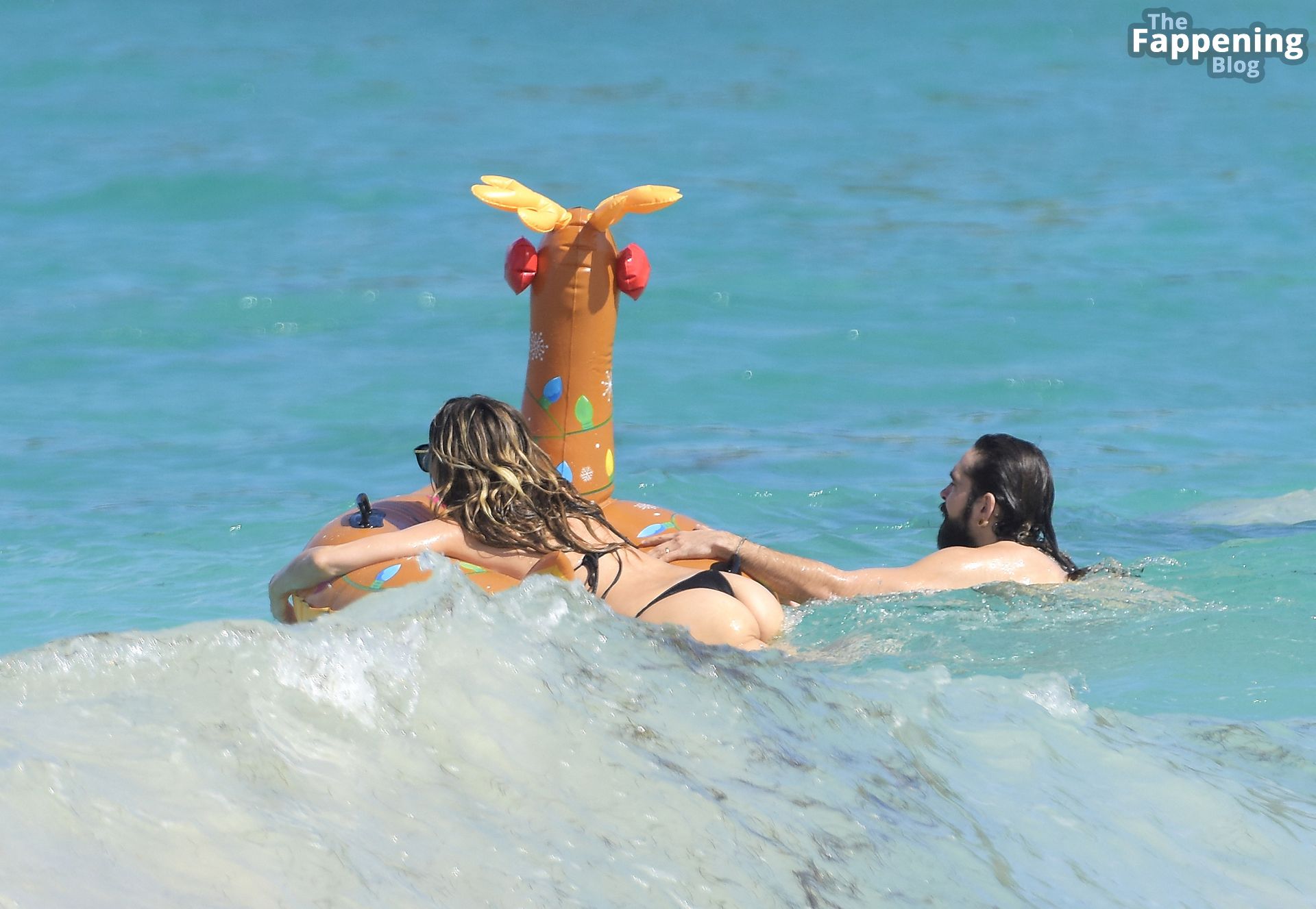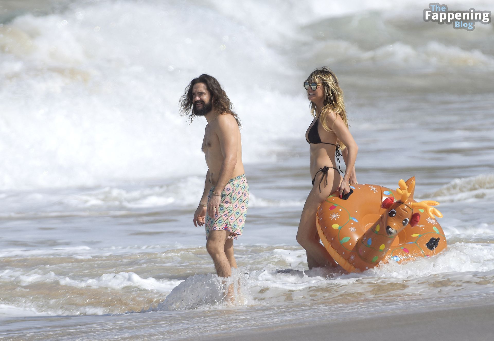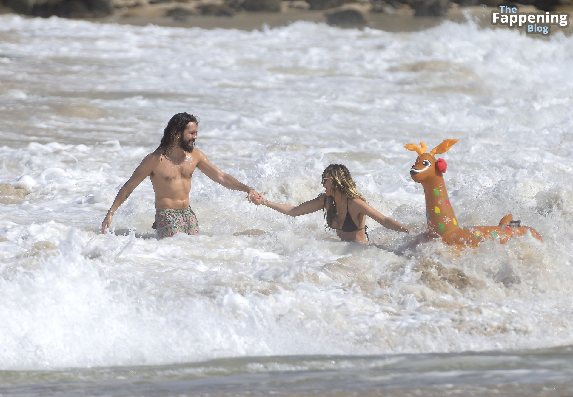 La presentadora de America’s Got Talent deslumbró con un diminuto bikini negro mientras ella y el rockero de Tokio Hotel mostraban su cariño en público, besándose y tomados de la mano, durante sus vacaciones de invierno en St Bart’s. Madre de cuatro hijos, Heidi chapoteó en las olas en un reno inflable mientras Tom, atento, la observaba.