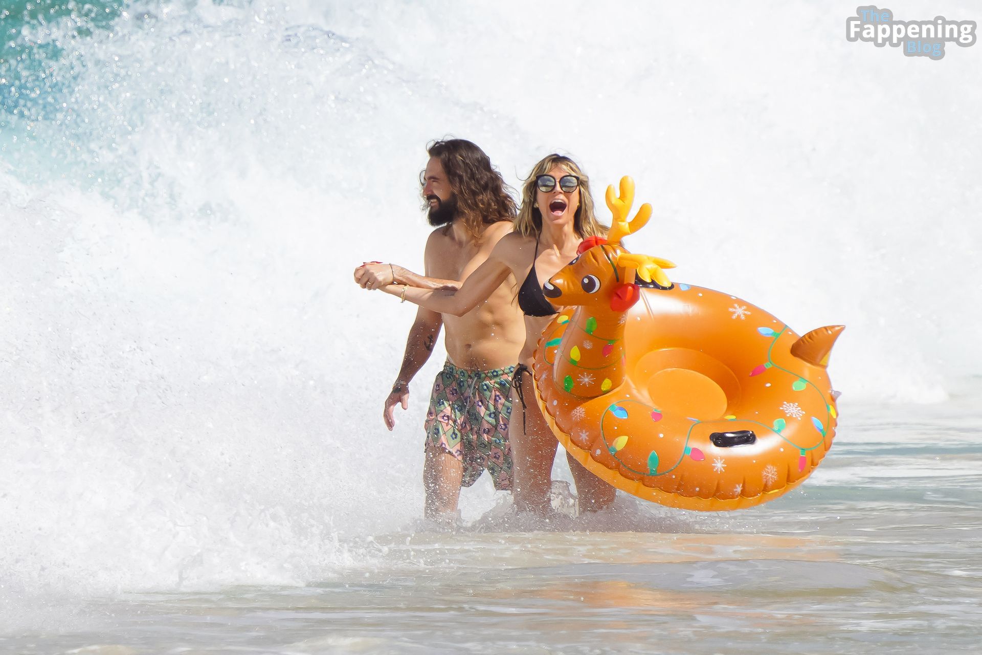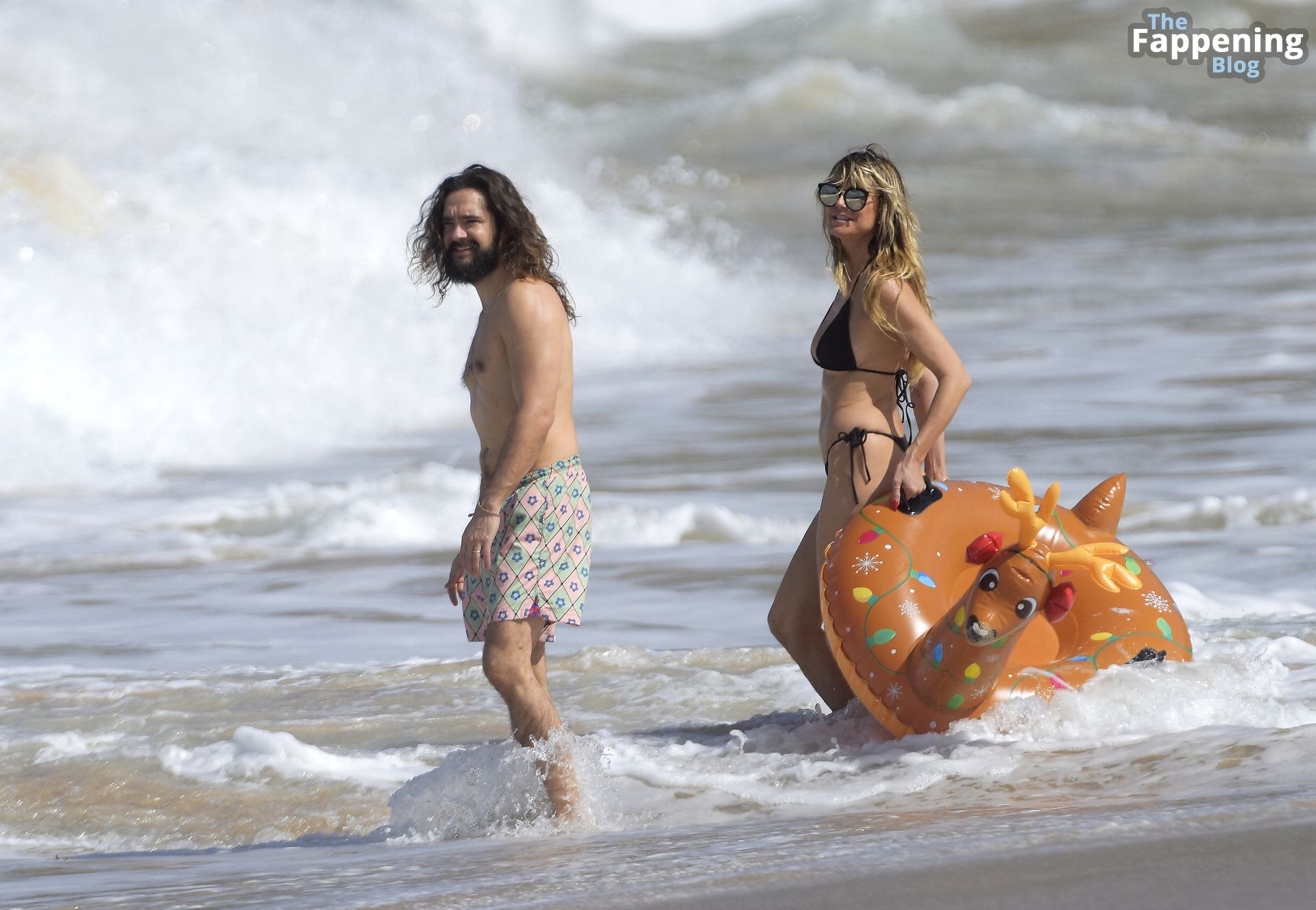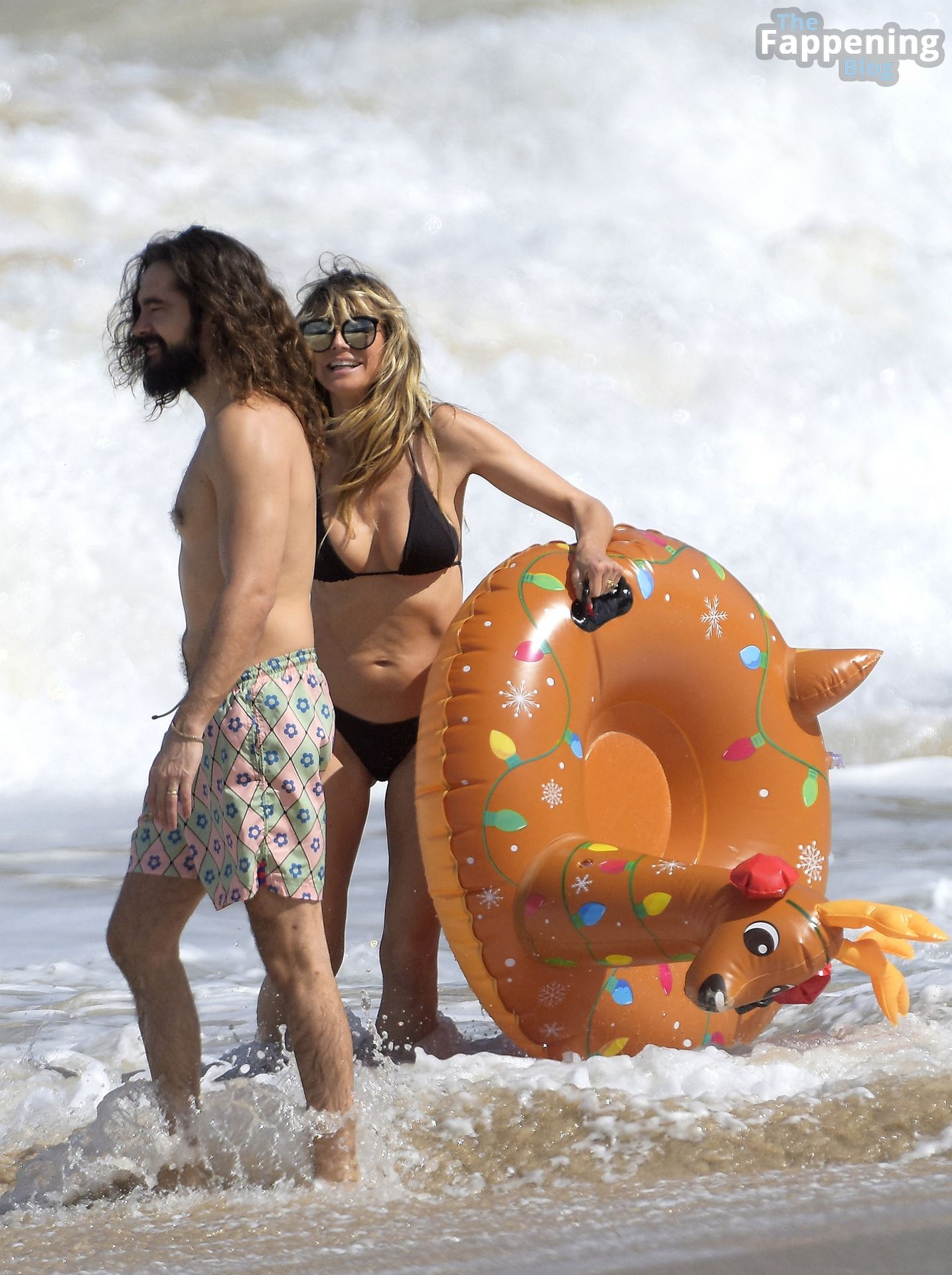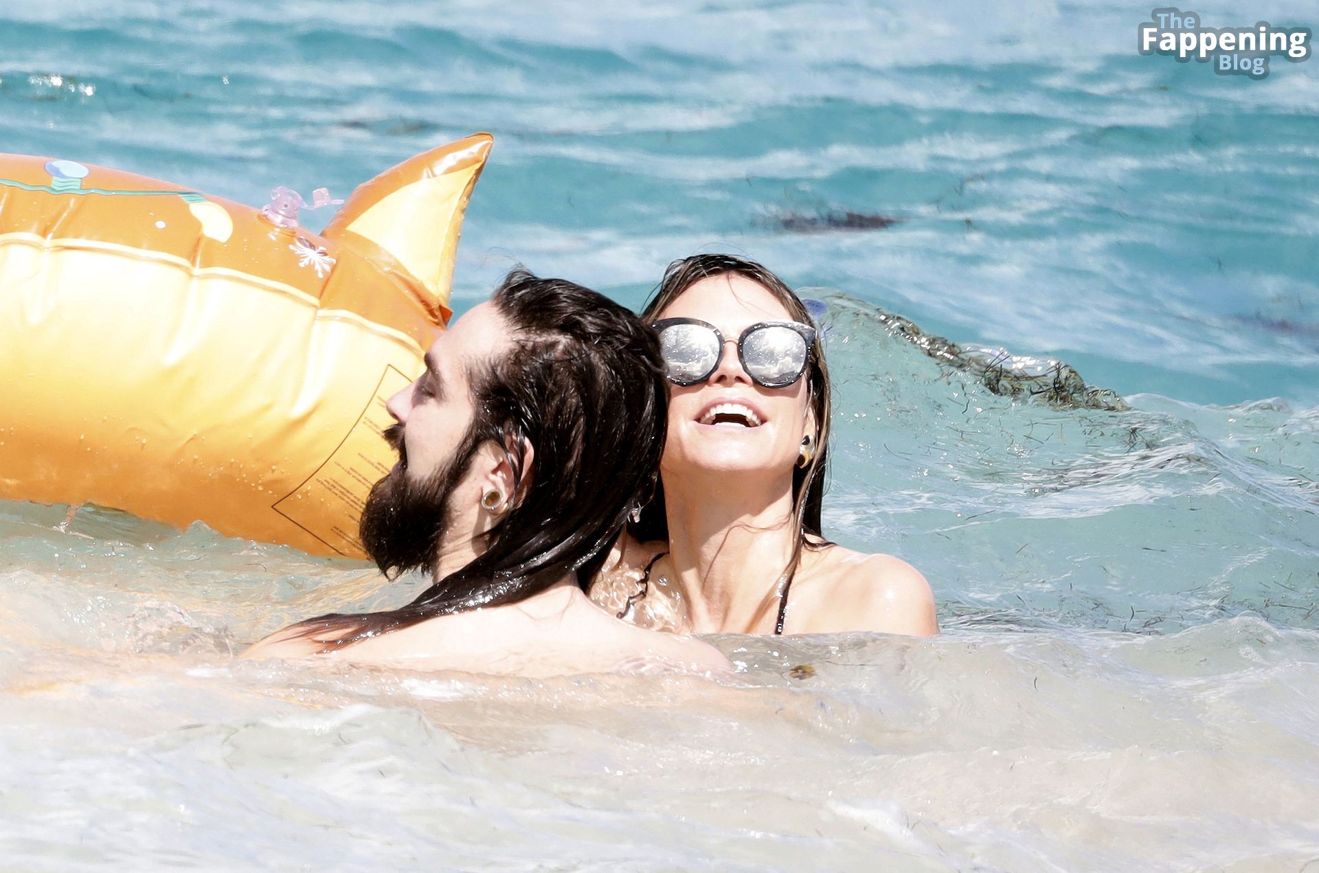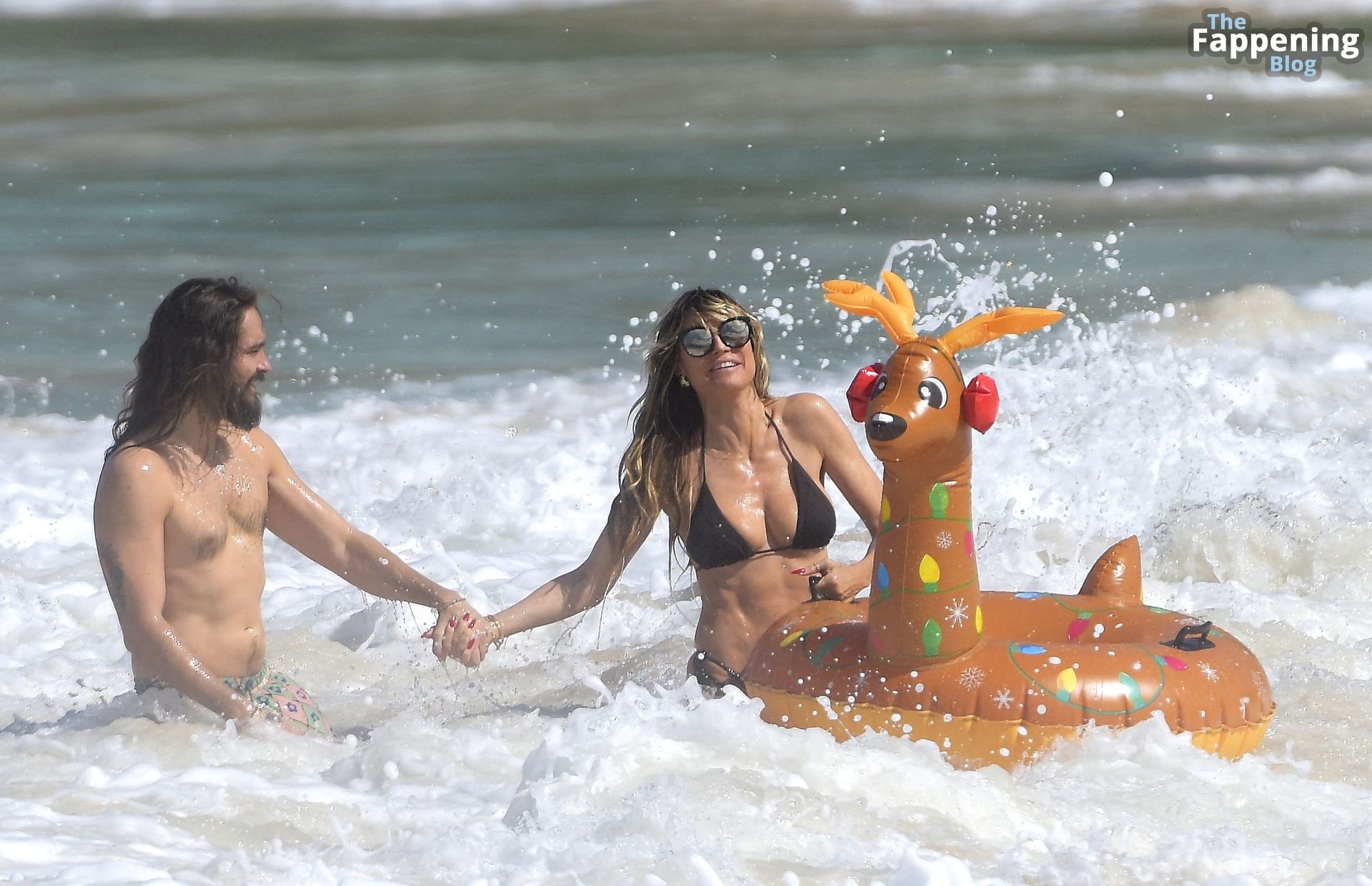La presentadora de America’s Got Talent deslumbró con un diminuto bikini negro mientras ella y el rockero de Tokio Hotel mostraban su cariño en público, besándose y tomados de la mano, durante sus vacaciones de invierno en St Bart’s. Madre de cuatro hijos, Heidi chapoteó en las olas en un reno inflable mientras Tom, atento, la observaba.