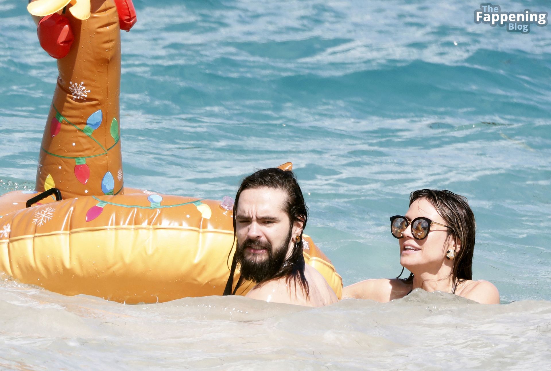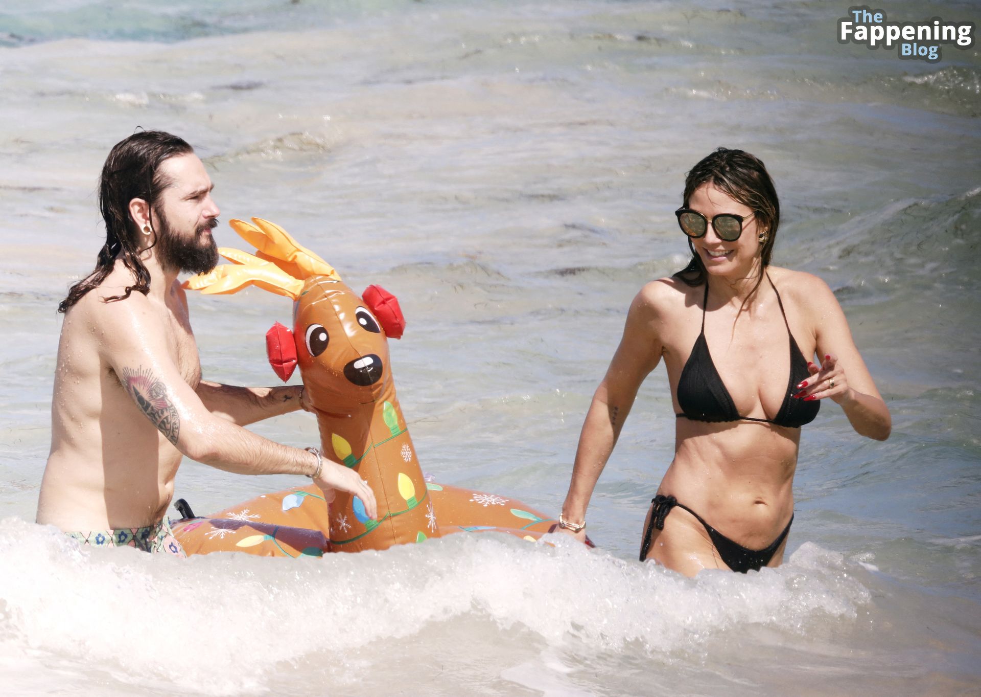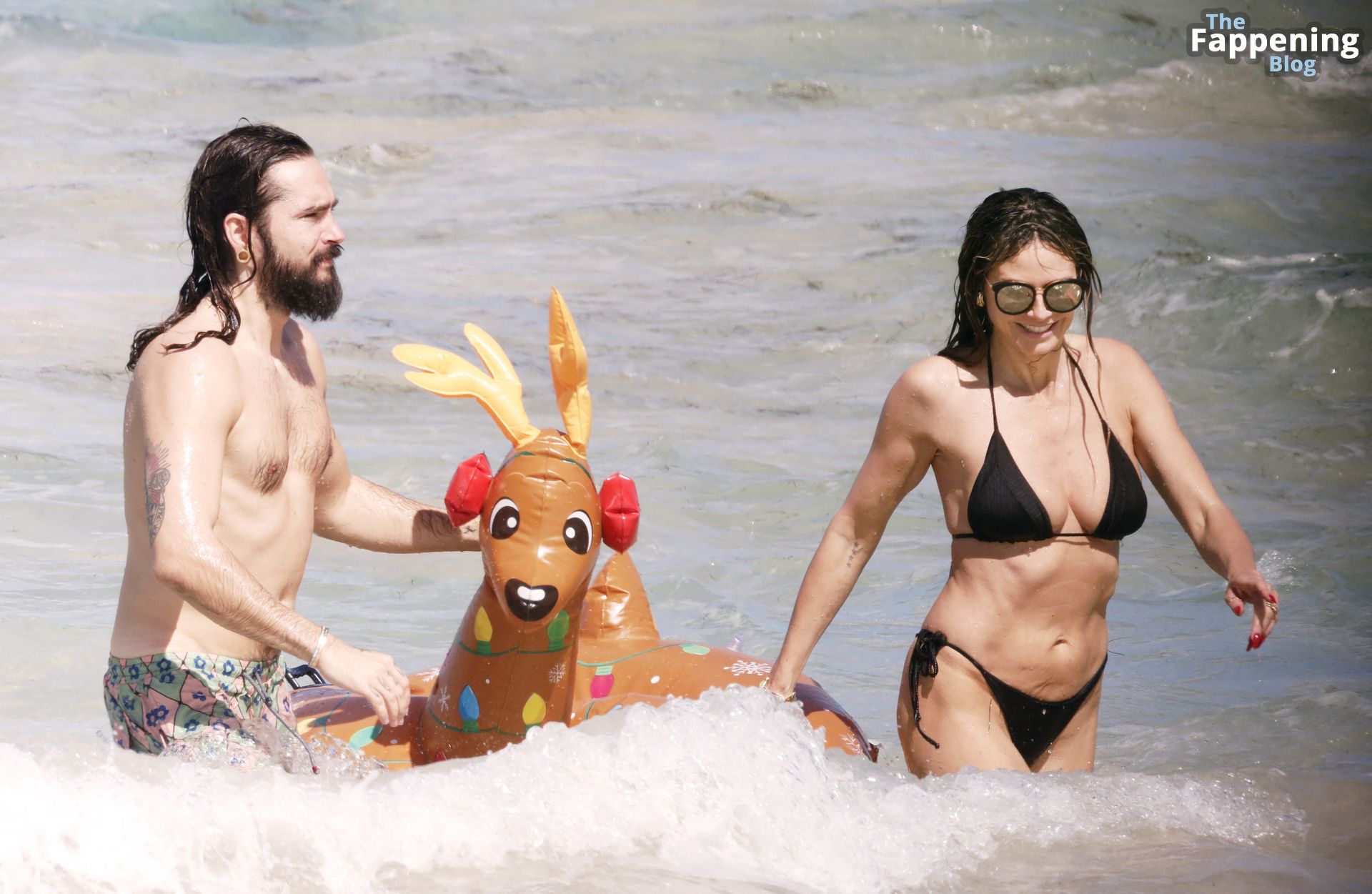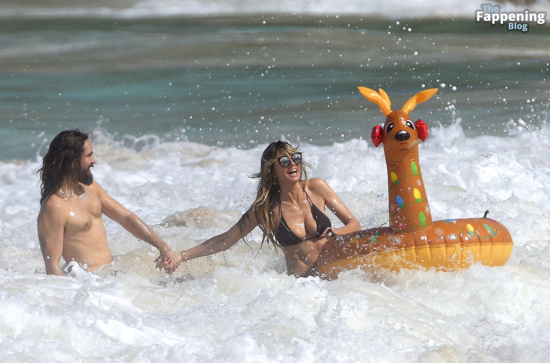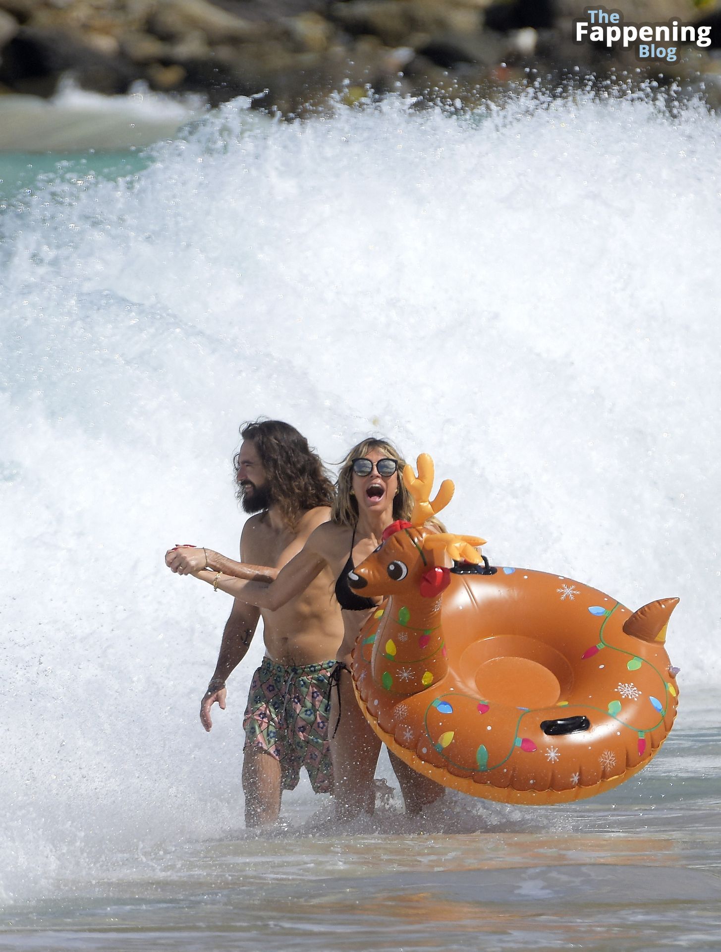 La presentadora de America’s Got Talent deslumbró con un diminuto bikini negro mientras ella y el rockero de Tokio Hotel mostraban su cariño en público, besándose y tomados de la mano, durante sus vacaciones de invierno en St Bart’s. Madre de cuatro hijos, Heidi chapoteó en las olas en un reno inflable mientras Tom, atento, la observaba.