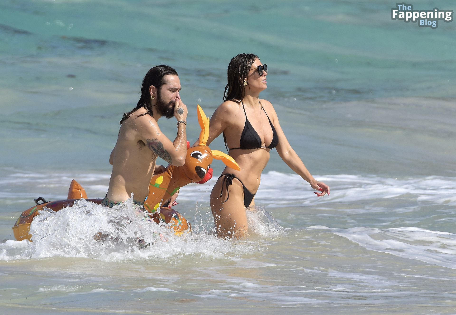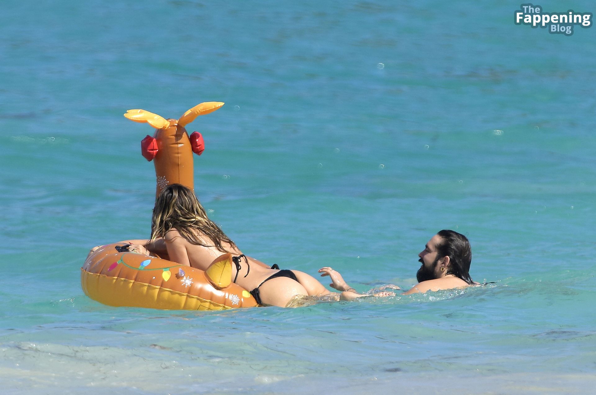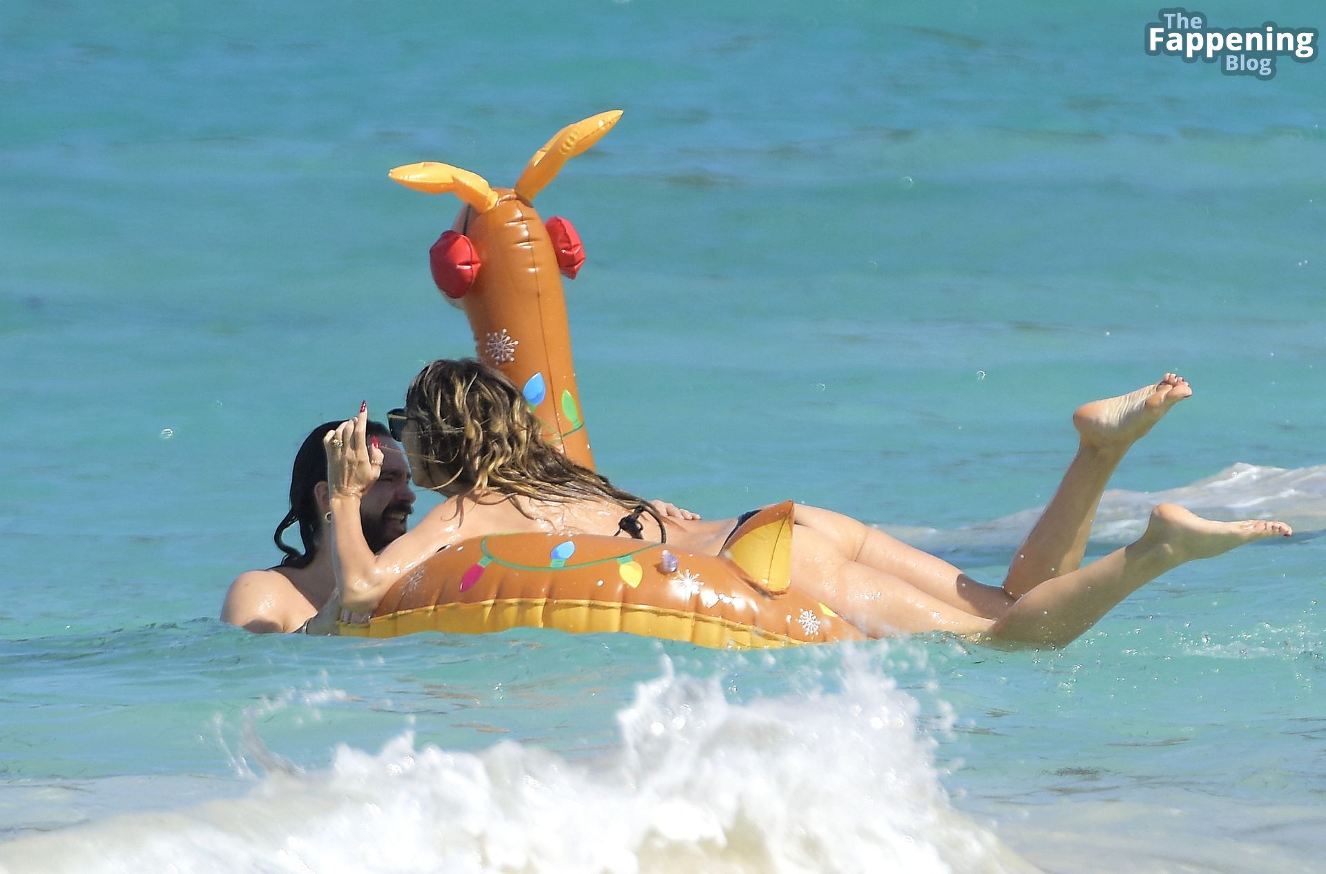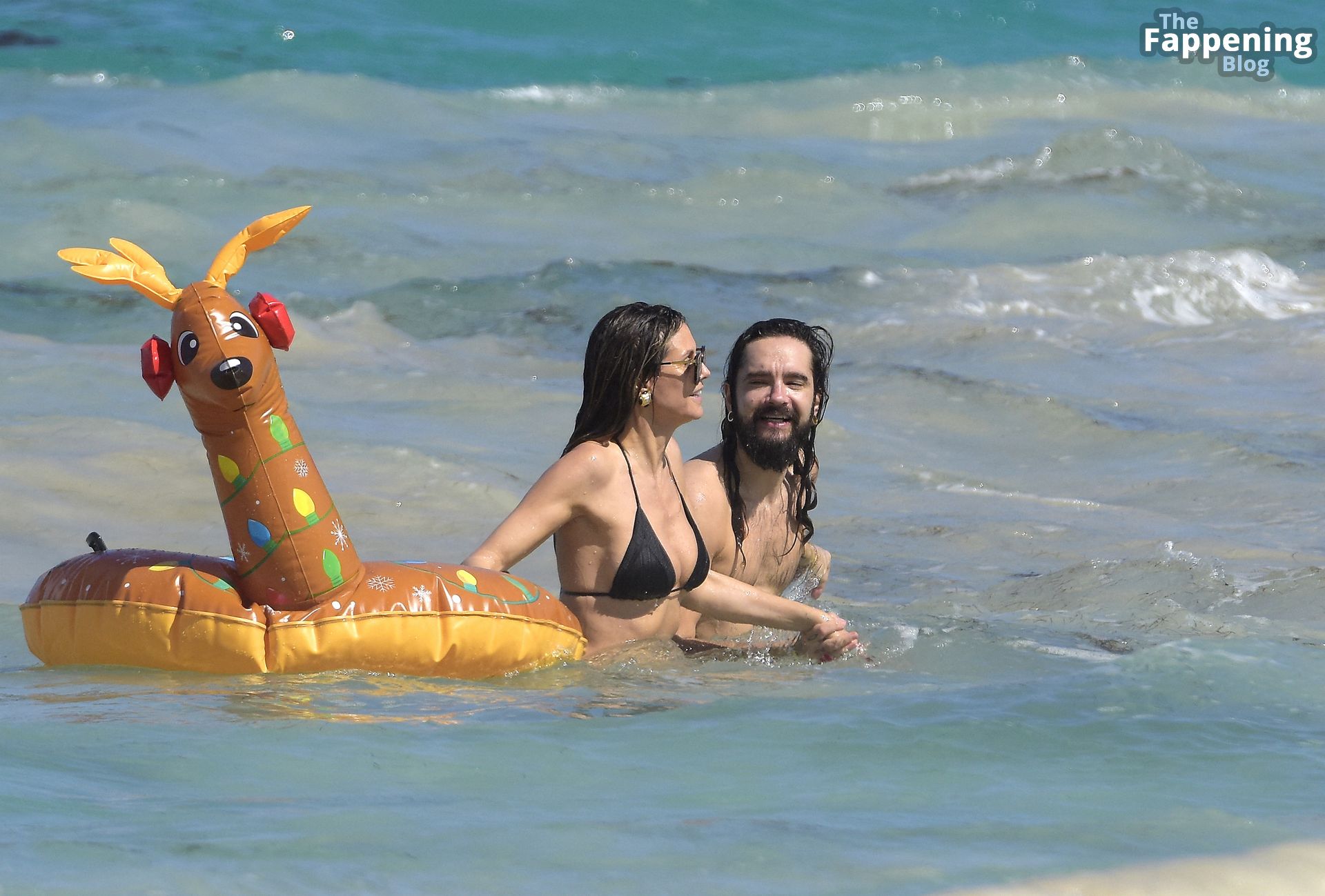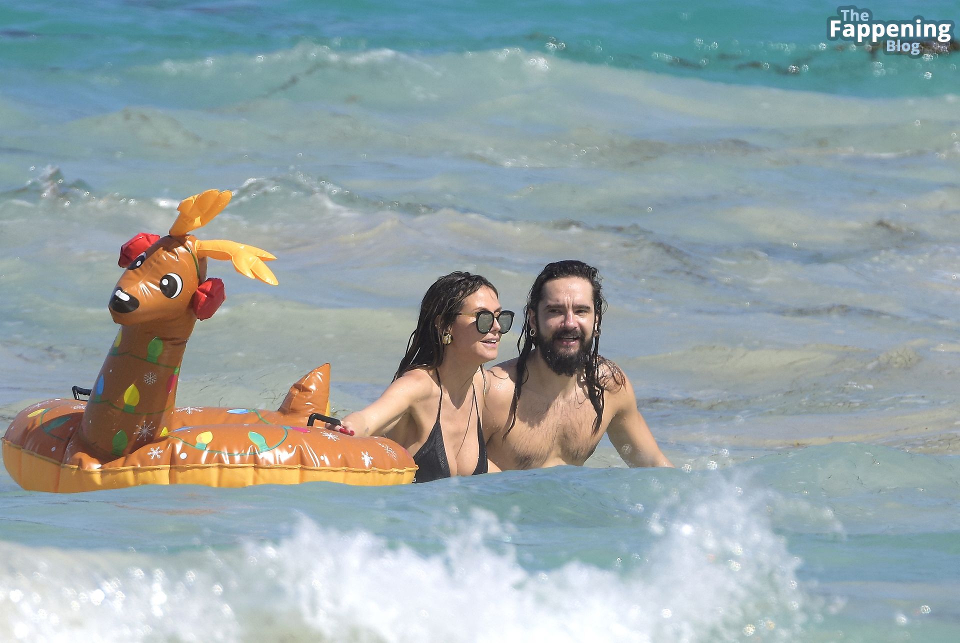 La presentadora de America’s Got Talent deslumbró con un diminuto bikini negro mientras ella y el rockero de Tokio Hotel mostraban su cariño en público, besándose y tomados de la mano, durante sus vacaciones de invierno en St Bart’s. Madre de cuatro hijos, Heidi chapoteó en las olas en un reno inflable mientras Tom, atento, la observaba.