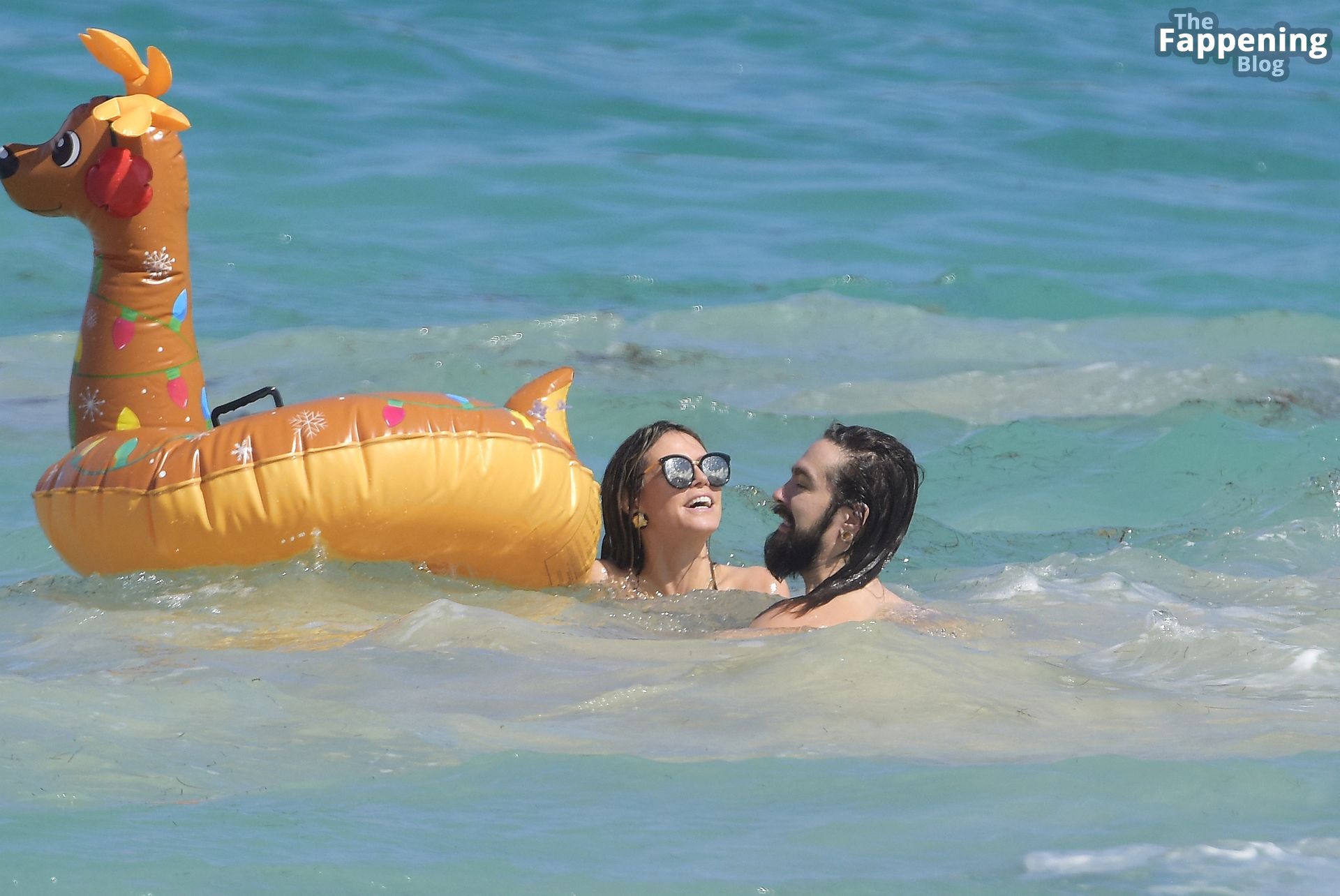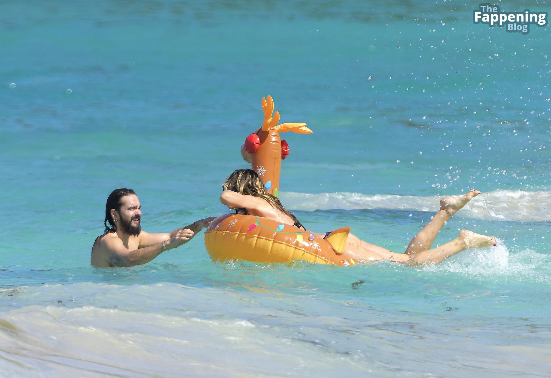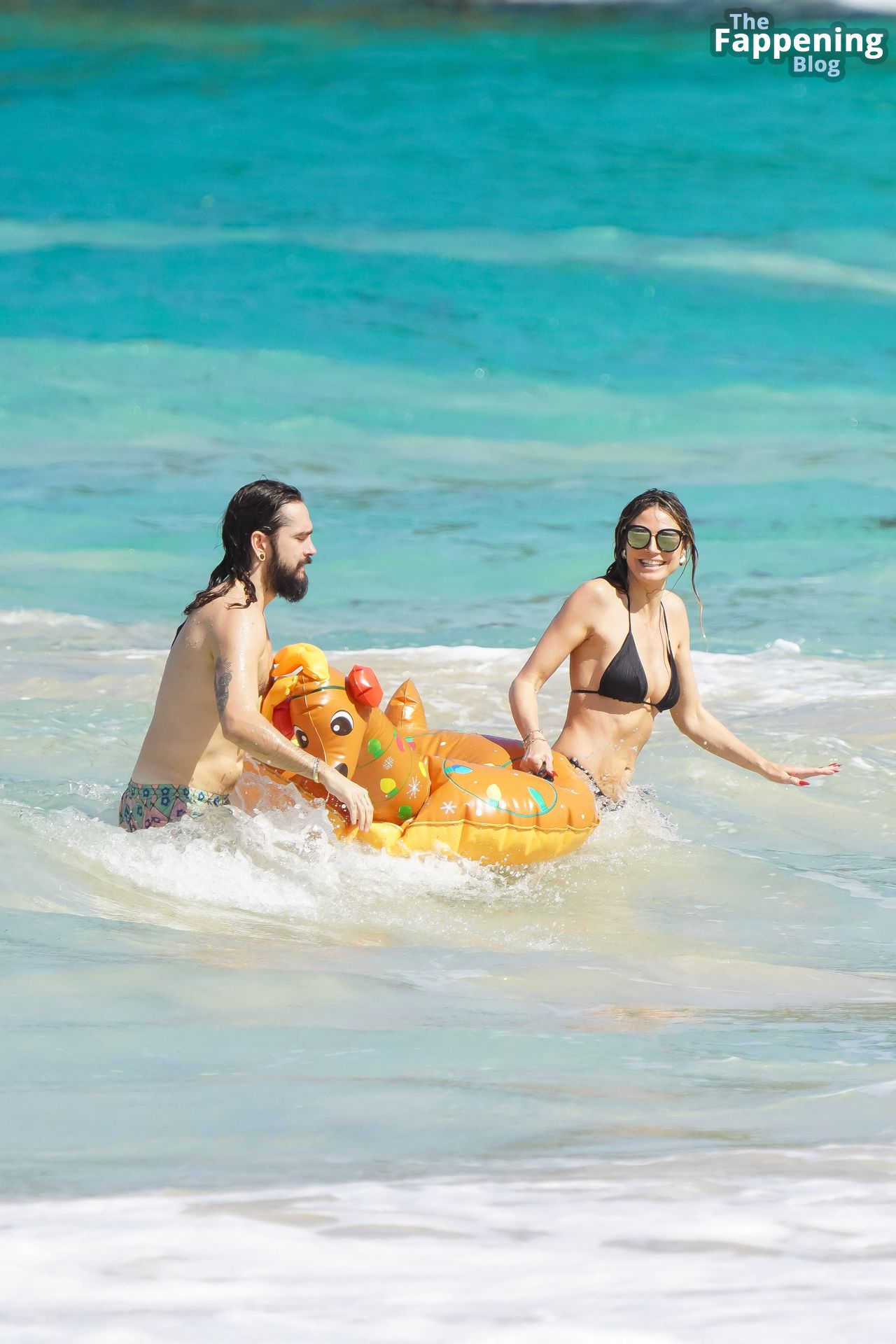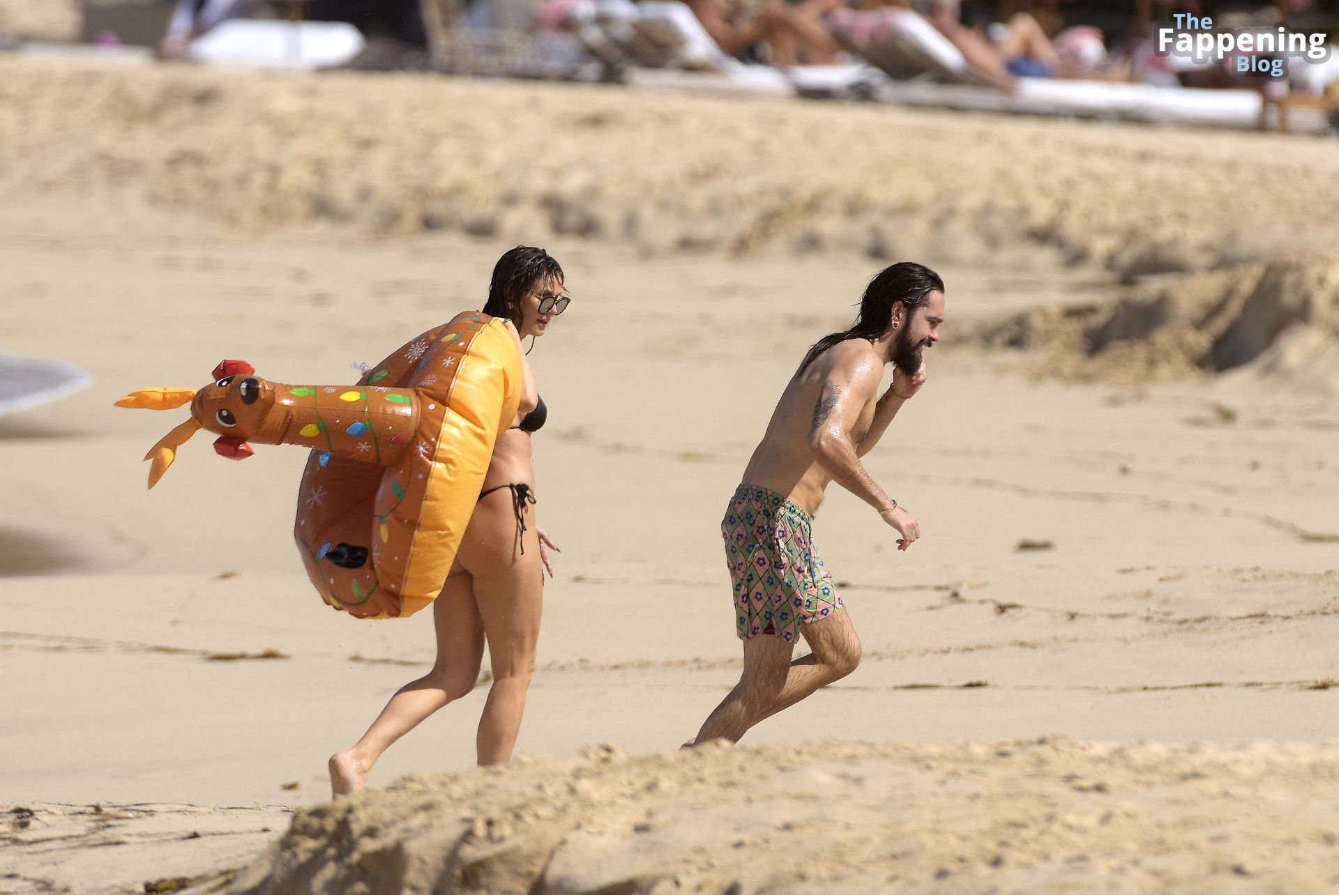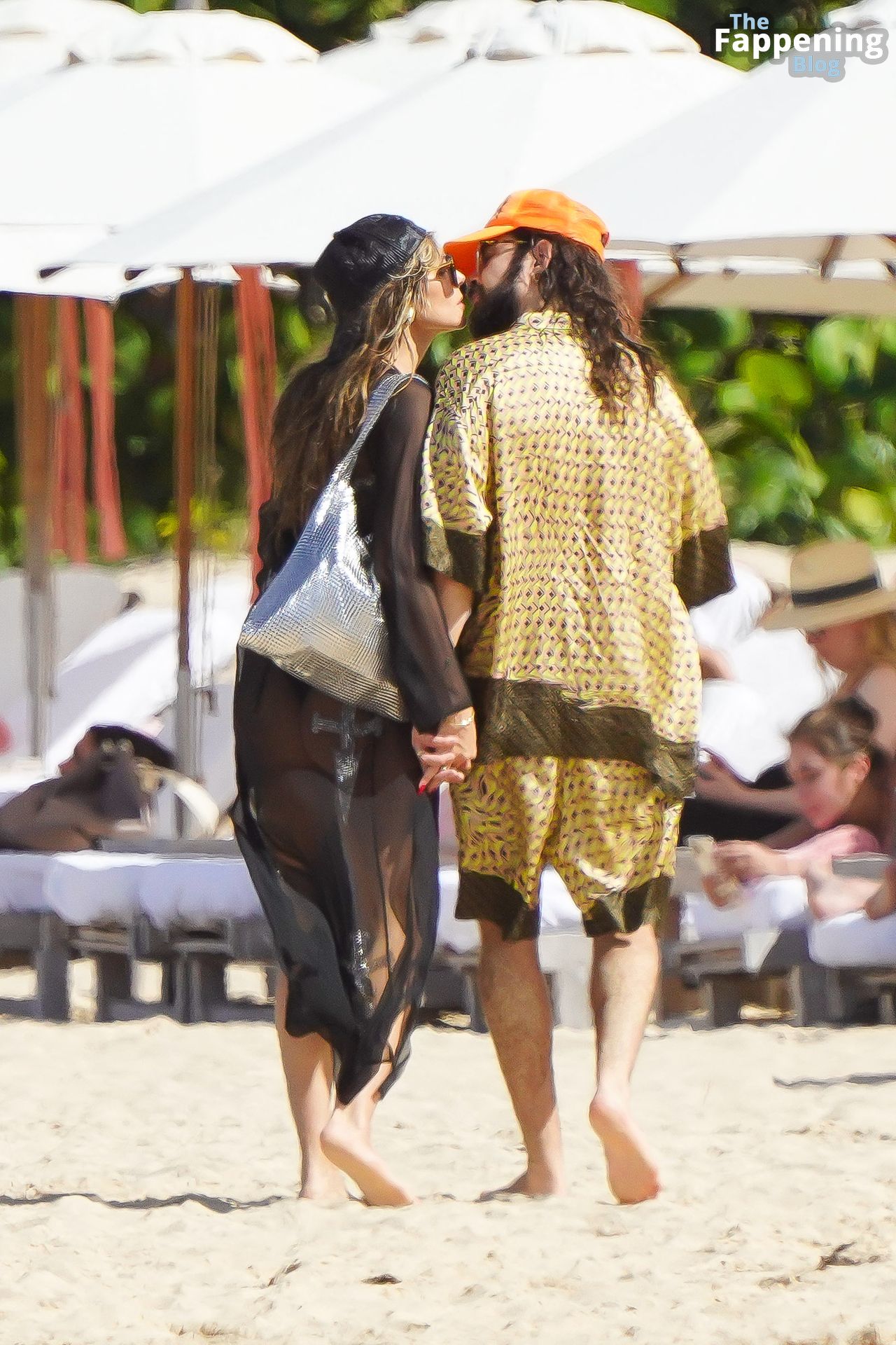 La presentadora de America’s Got Talent deslumbró con un diminuto bikini negro mientras ella y el rockero de Tokio Hotel mostraban su cariño en público, besándose y tomados de la mano, durante sus vacaciones de invierno en St Bart’s. Madre de cuatro hijos, Heidi chapoteó en las olas en un reno inflable mientras Tom, atento, la observaba.