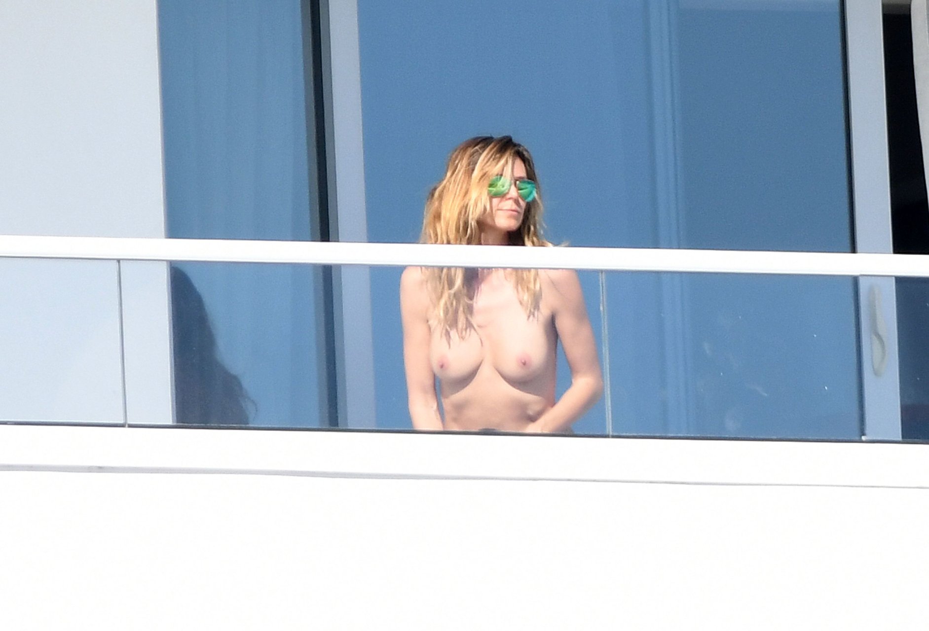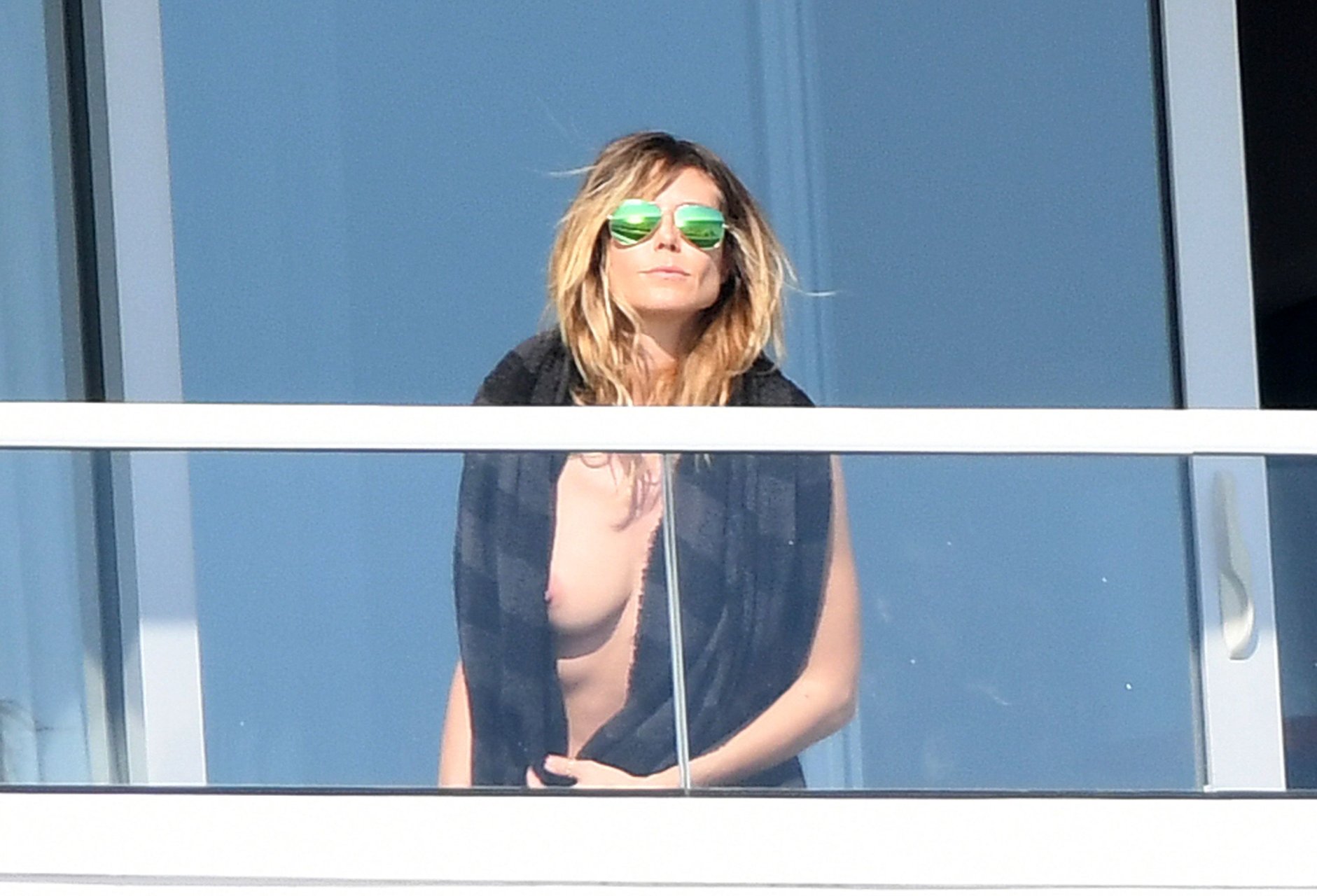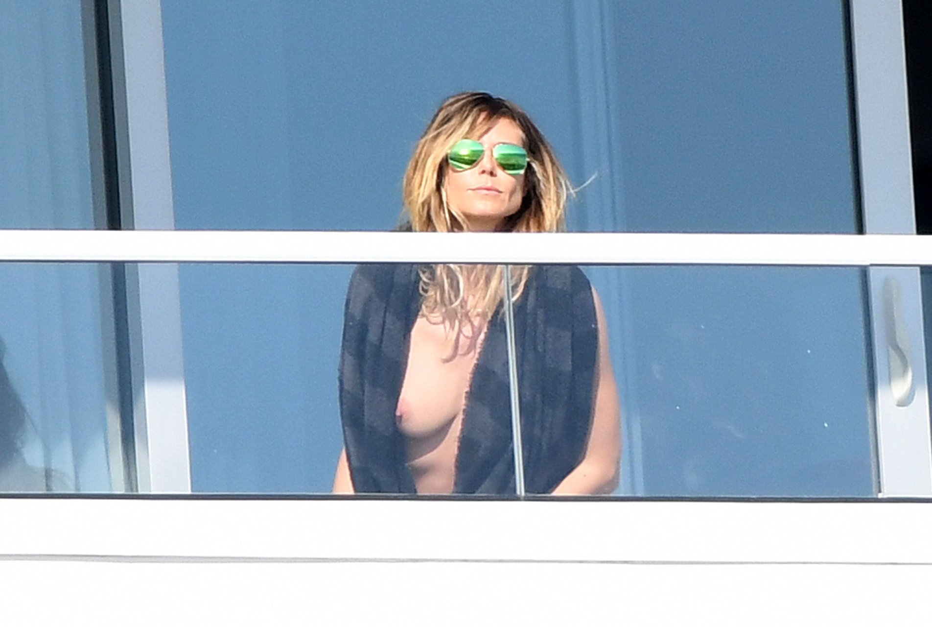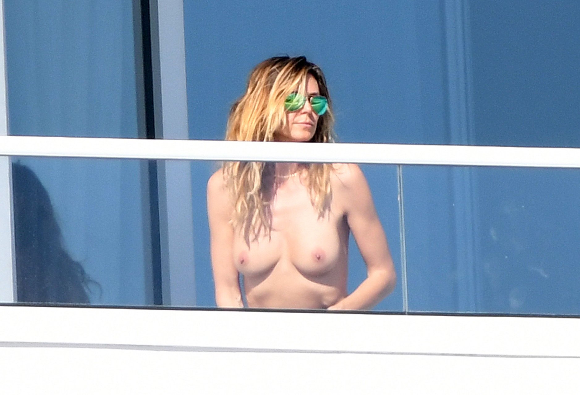 Heidi Klum toma el sol topless en un balcón en Miami, 01/07/2017. Heidi Klum es una modelo germano-estadounidense, personalidad de televisión, empresaria, diseñadora de moda, productora de TV y actriz ocasional. Edad: 43 (nacida el 1 de junio de 1973), Altura 176 cm.