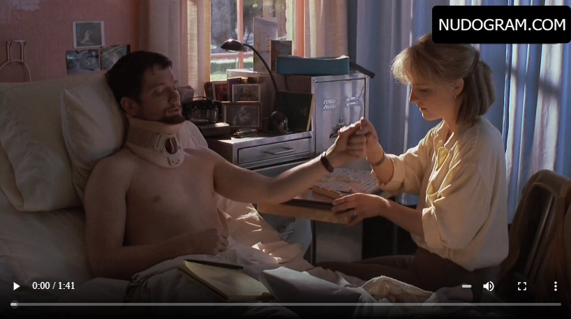 Helen Hunt con un sostén y una camisa abierta mientras besa a un hombre en una cama de hospital, y él le abre la falda para revelar sus bragas y luego la estimula con sus dedos.