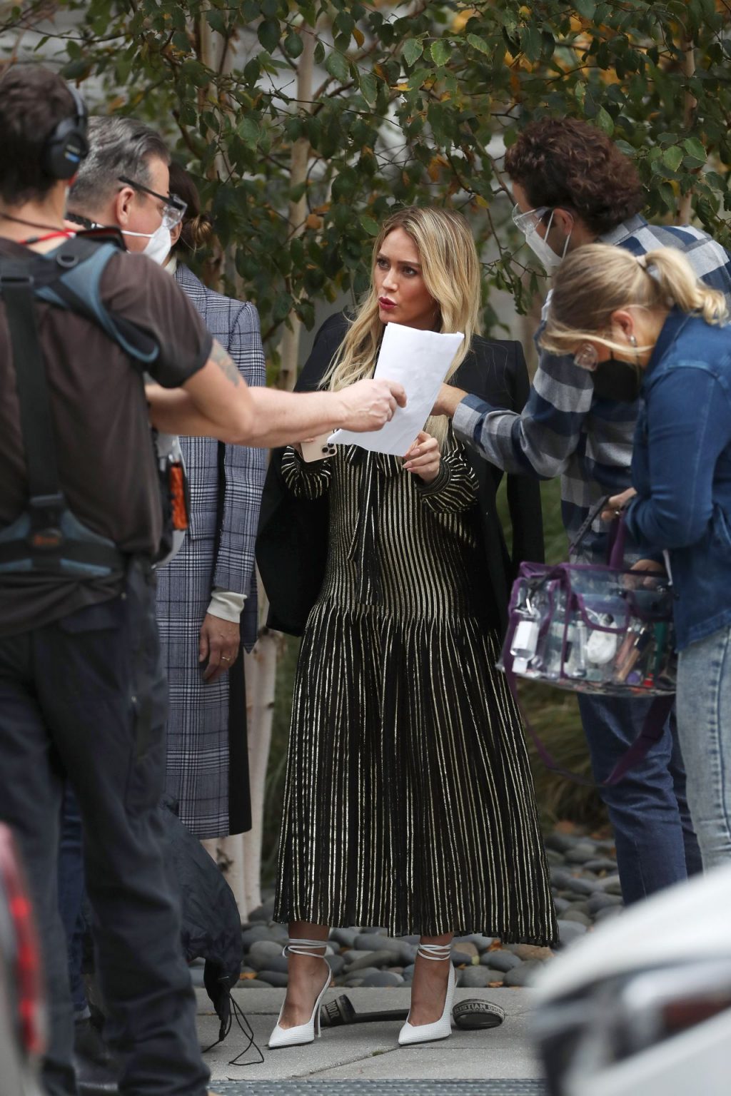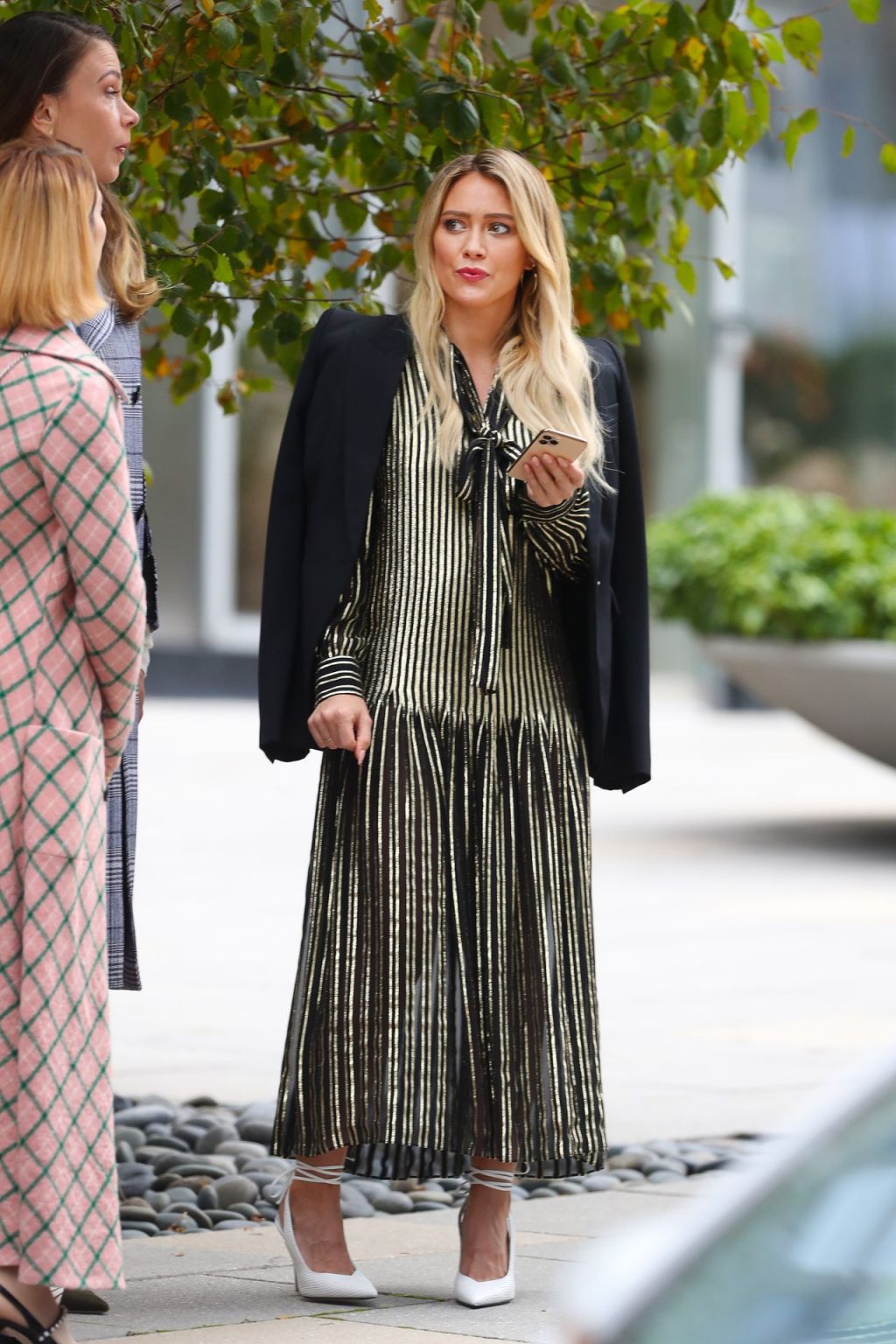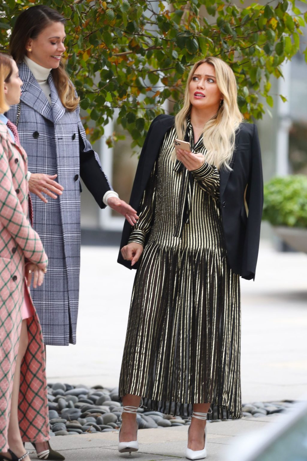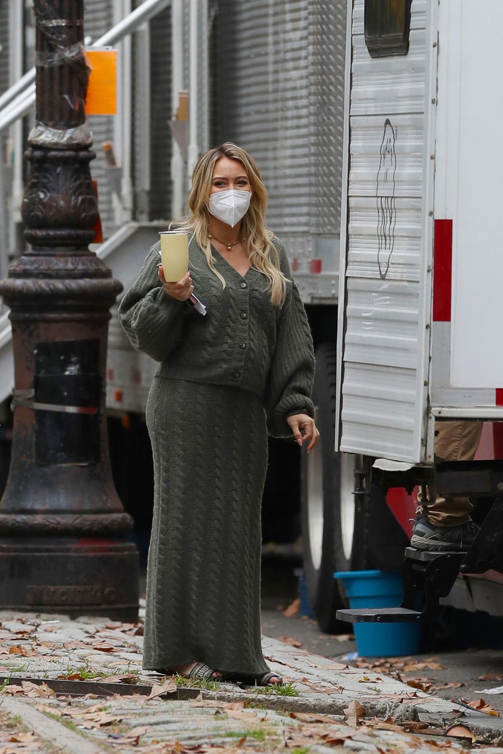 Hilary Duff es fotografiada en el set de filmación de ‘Younger’ en la ciudad de Nueva York, 11/11/2020. La actriz de 33 años, que está actualmente embarazada, usó varios atuendos mientras filmaba escenas en Central Park.