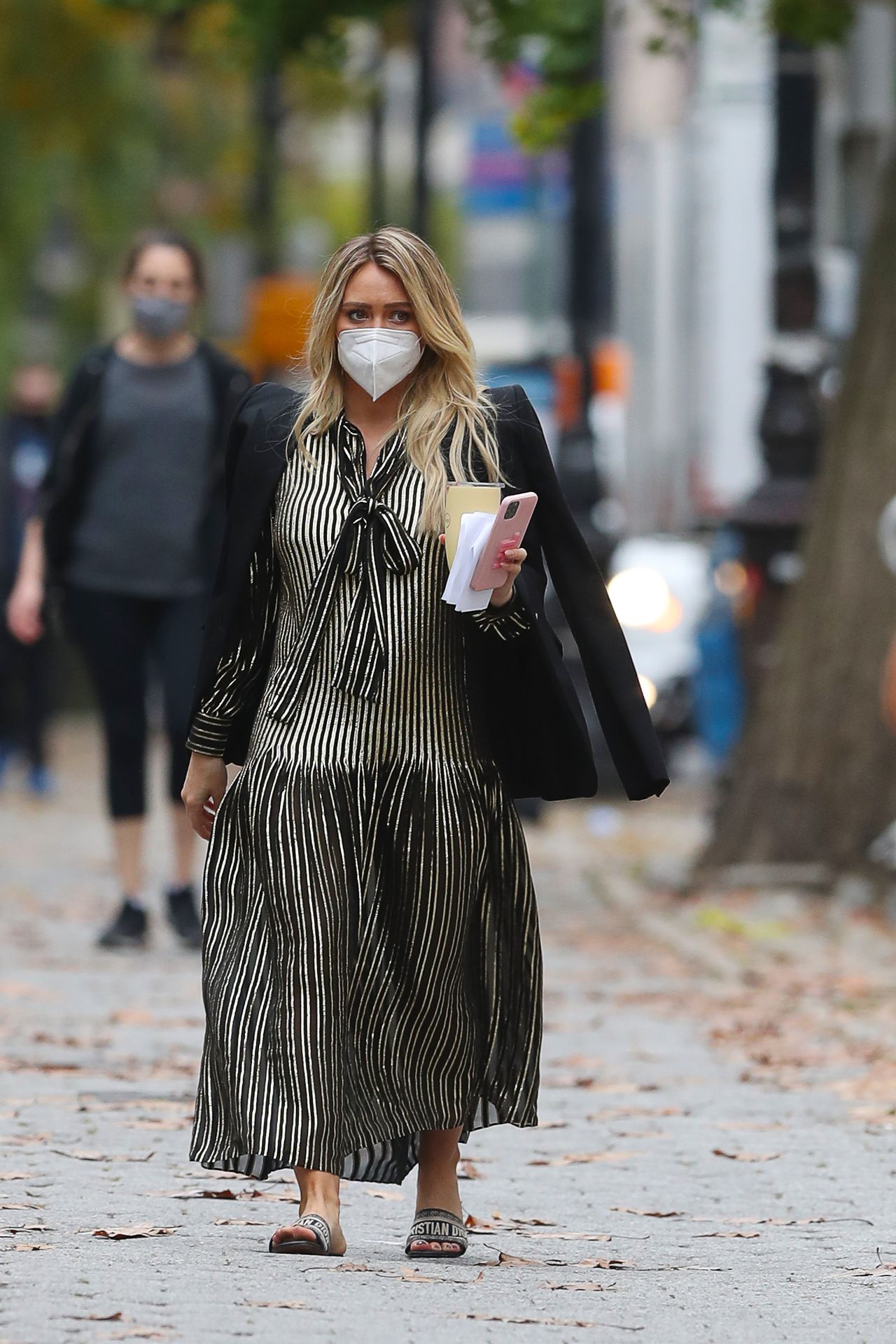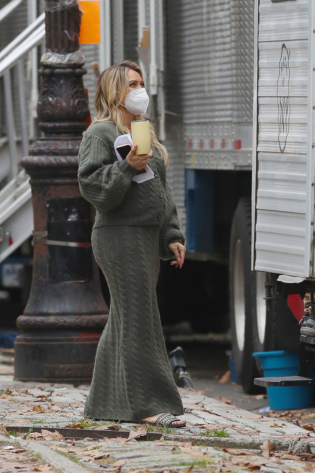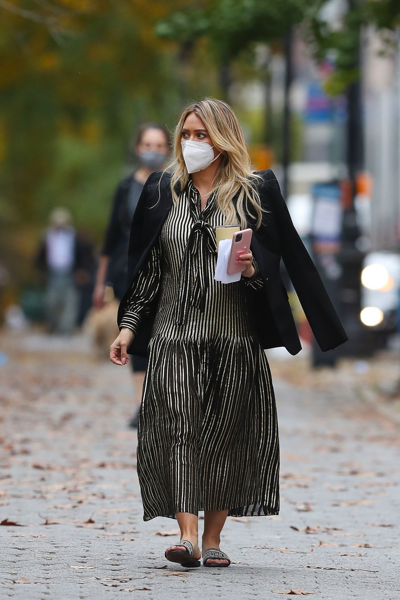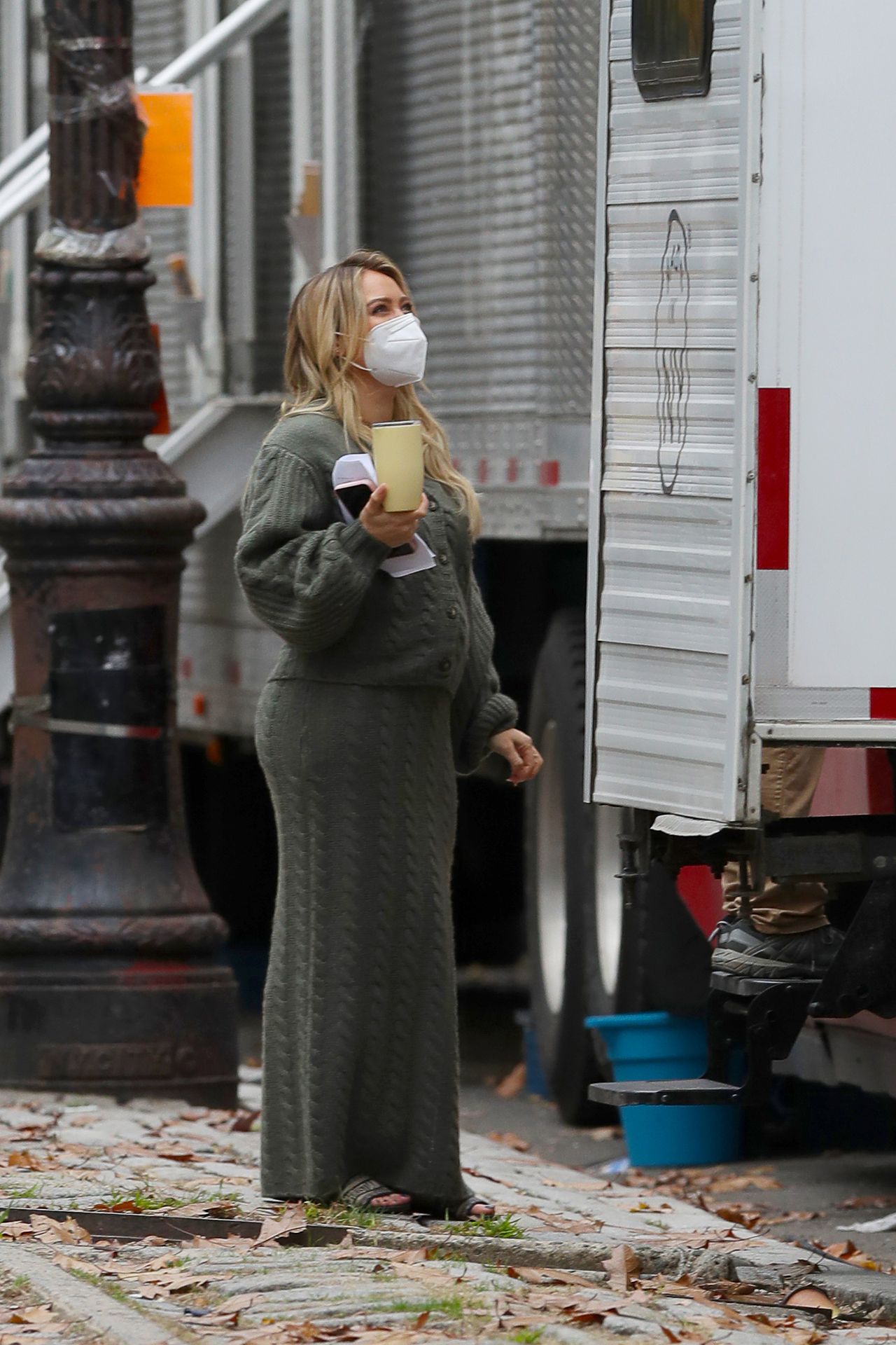 Hilary Duff es fotografiada en el set de filmación de ‘Younger’ en la ciudad de Nueva York, 11/11/2020. La actriz de 33 años, que está actualmente embarazada, usó varios atuendos mientras filmaba escenas en Central Park.