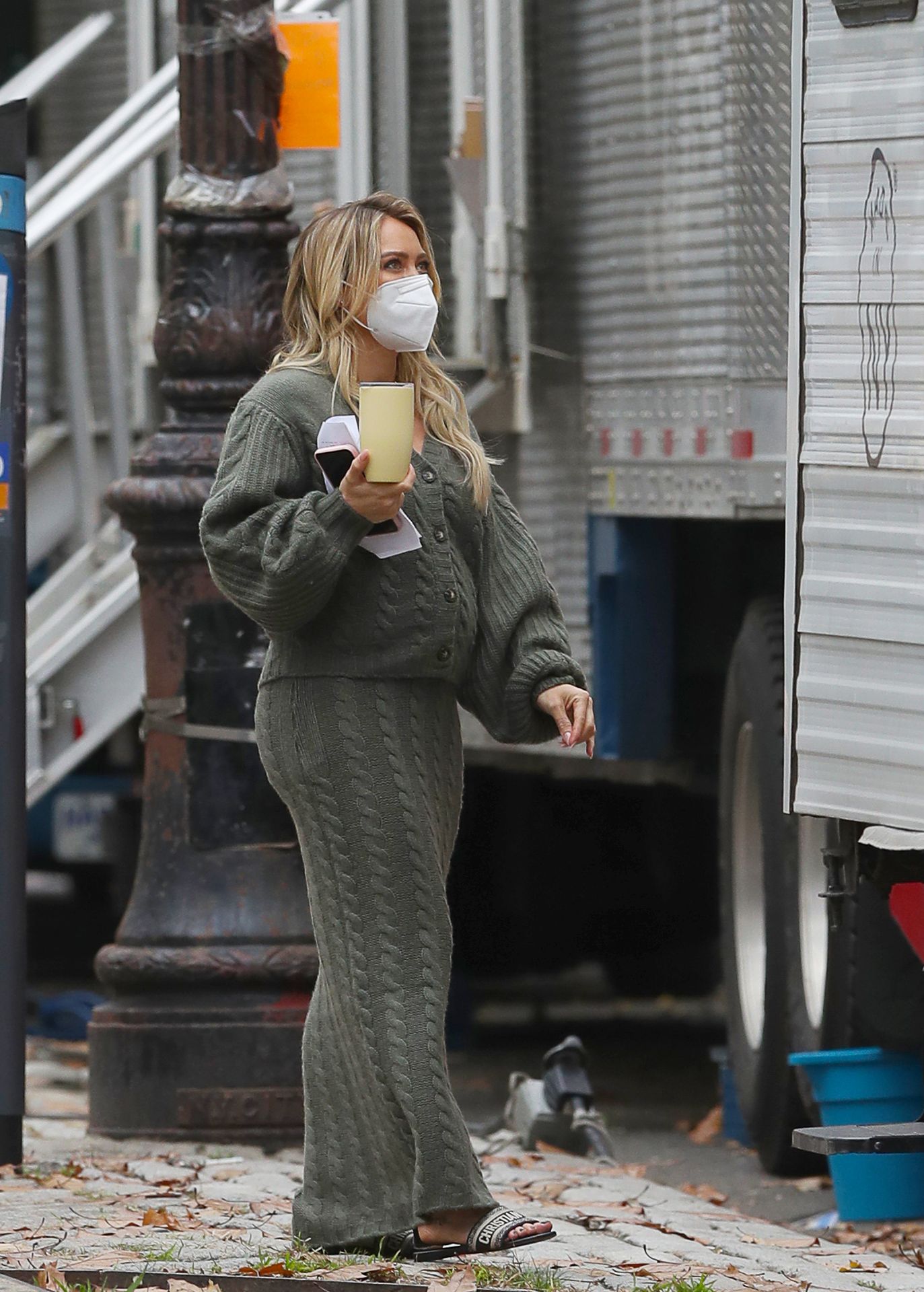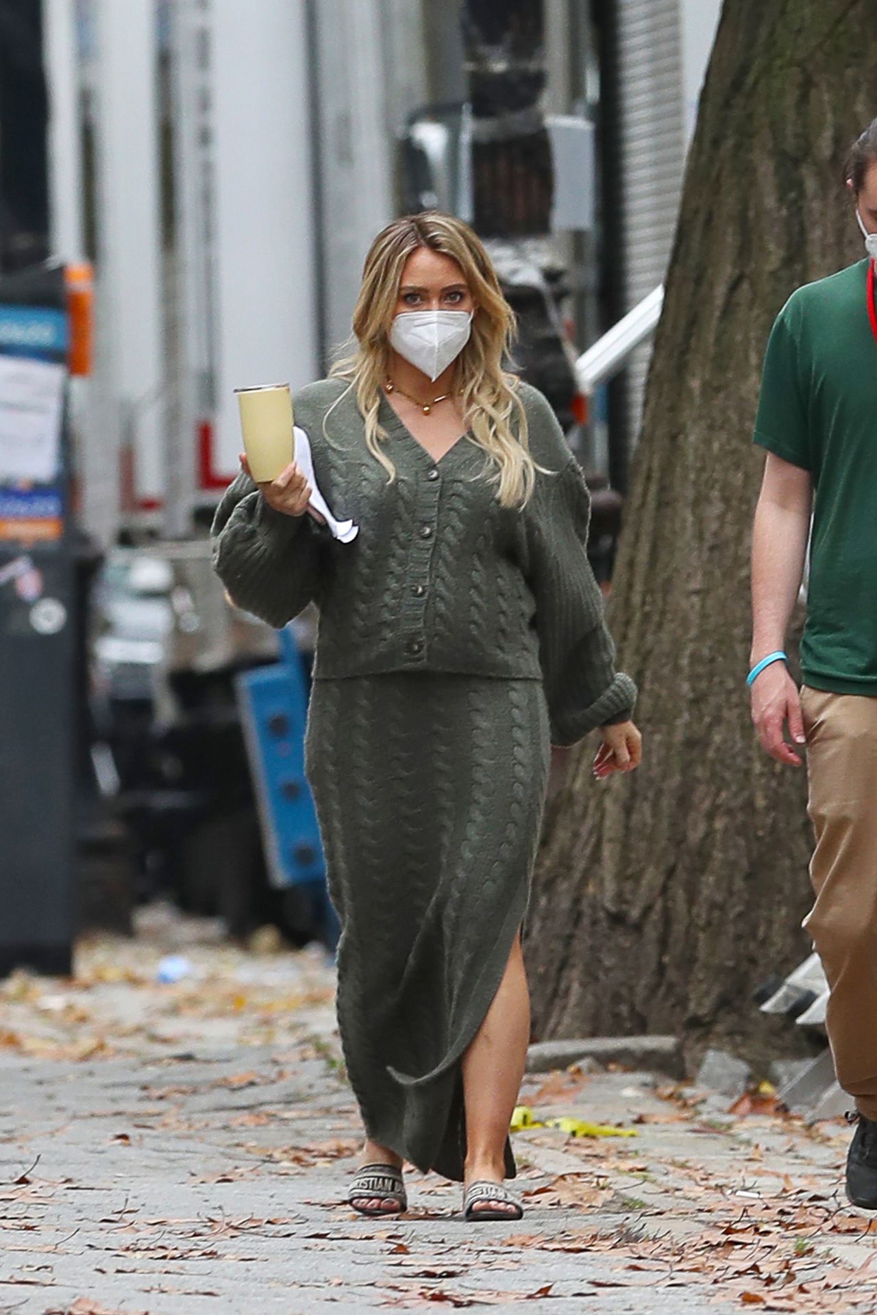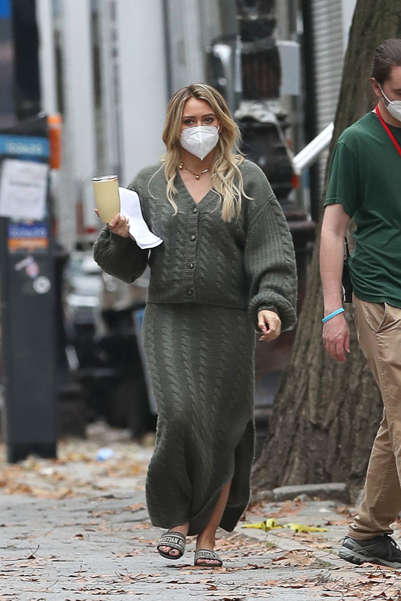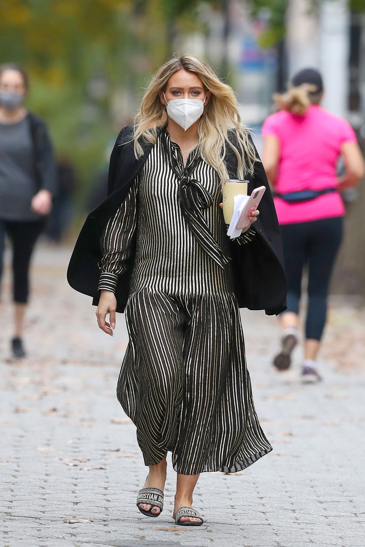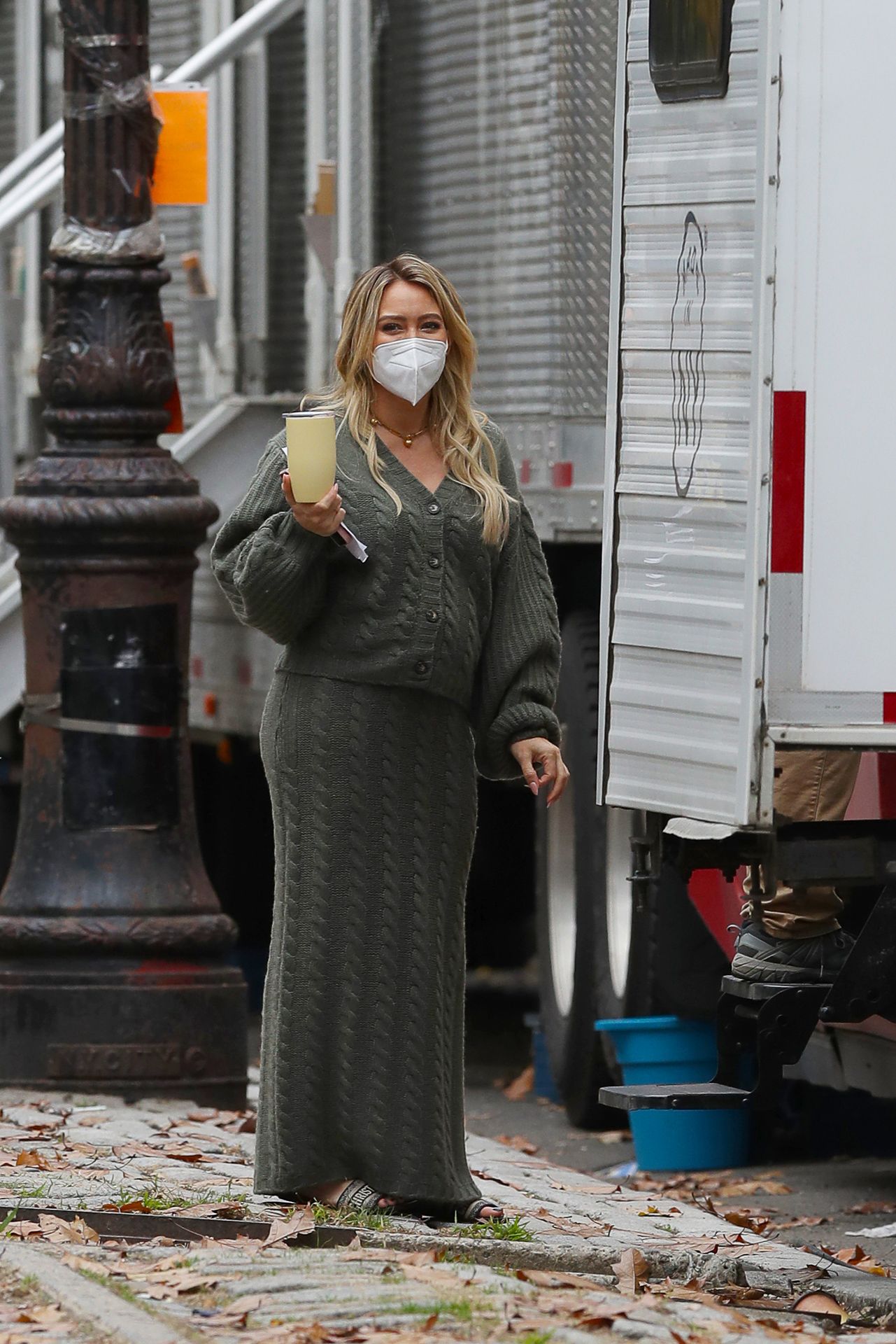 Hilary Duff es fotografiada en el set de filmación de ‘Younger’ en la ciudad de Nueva York, 11/11/2020. La actriz de 33 años, que está actualmente embarazada, usó varios atuendos mientras filmaba escenas en Central Park.