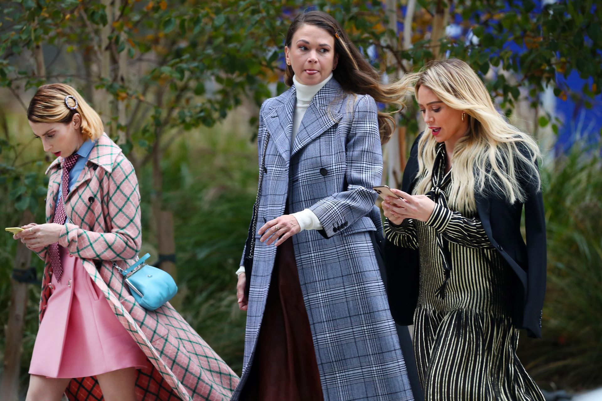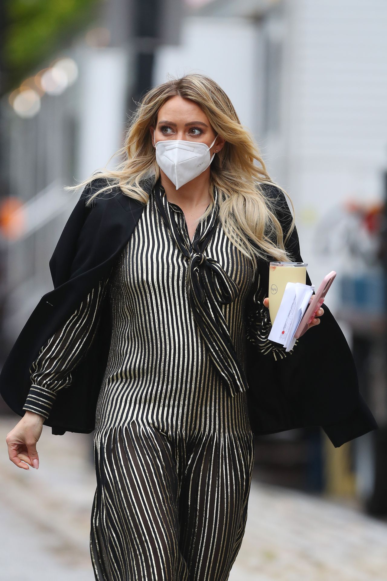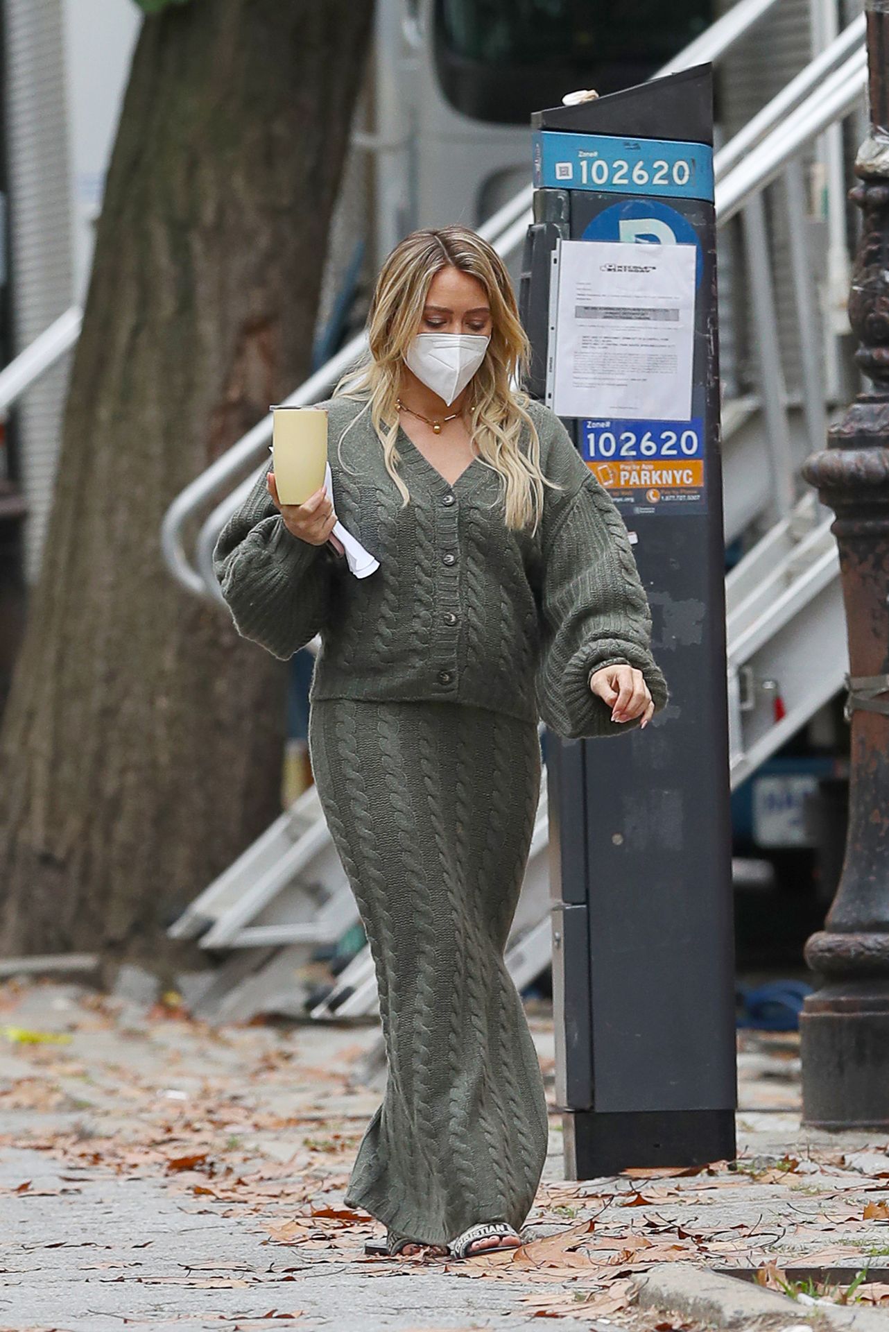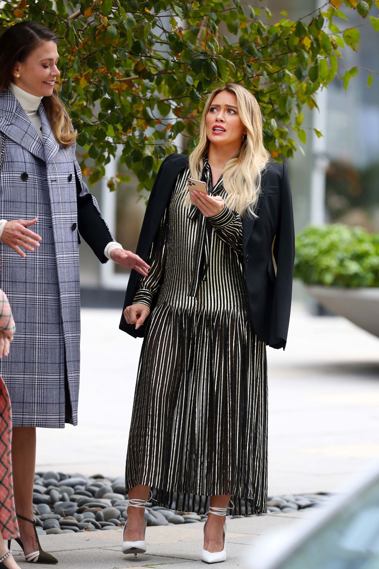 Hilary Duff es fotografiada en el set de filmación de ‘Younger’ en la ciudad de Nueva York, 11/11/2020. La actriz de 33 años, que está actualmente embarazada, usó varios atuendos mientras filmaba escenas en Central Park.