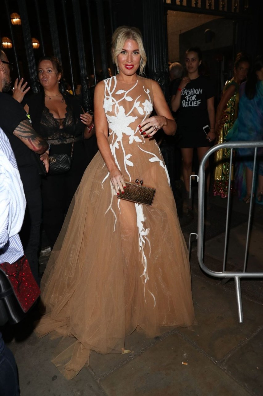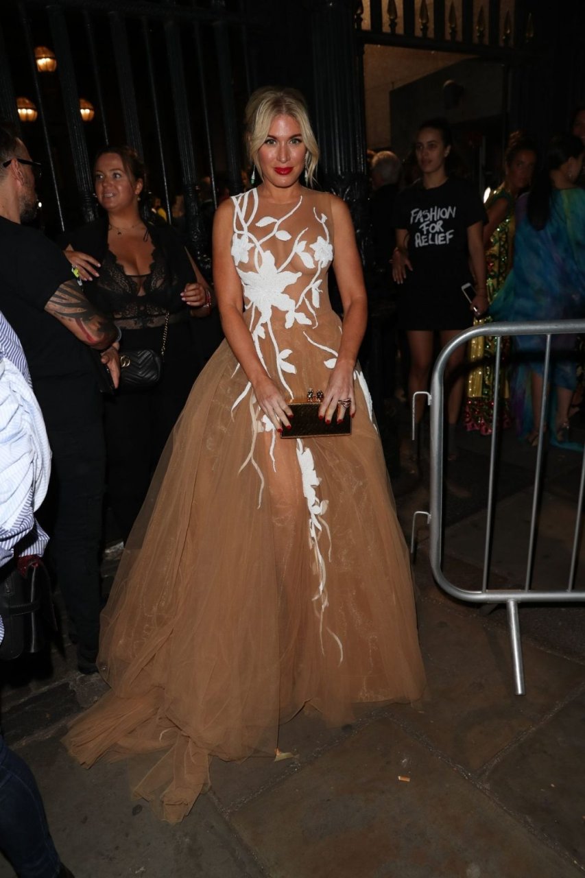 Hofit Golan asiste al desfile Fashion For Relief en el Museo Británico de Londres, 14/09/2019. La estrella de televisión, actriz y modelo de 34 años mostró sus pechos, vistiendo un vestido transparente estilo nude.