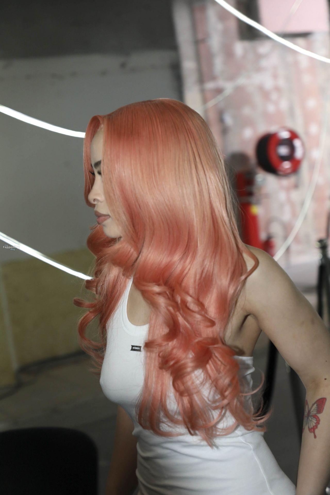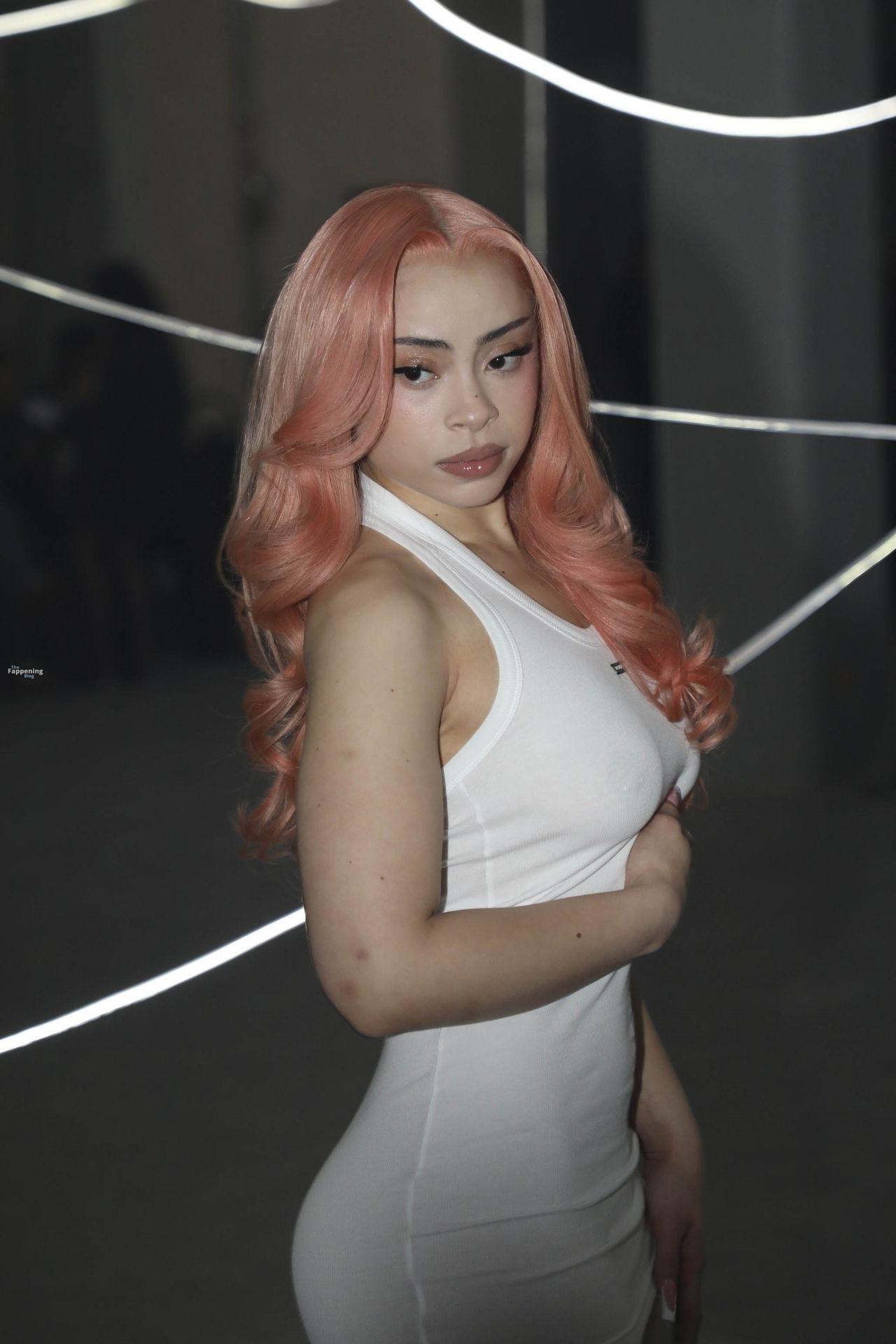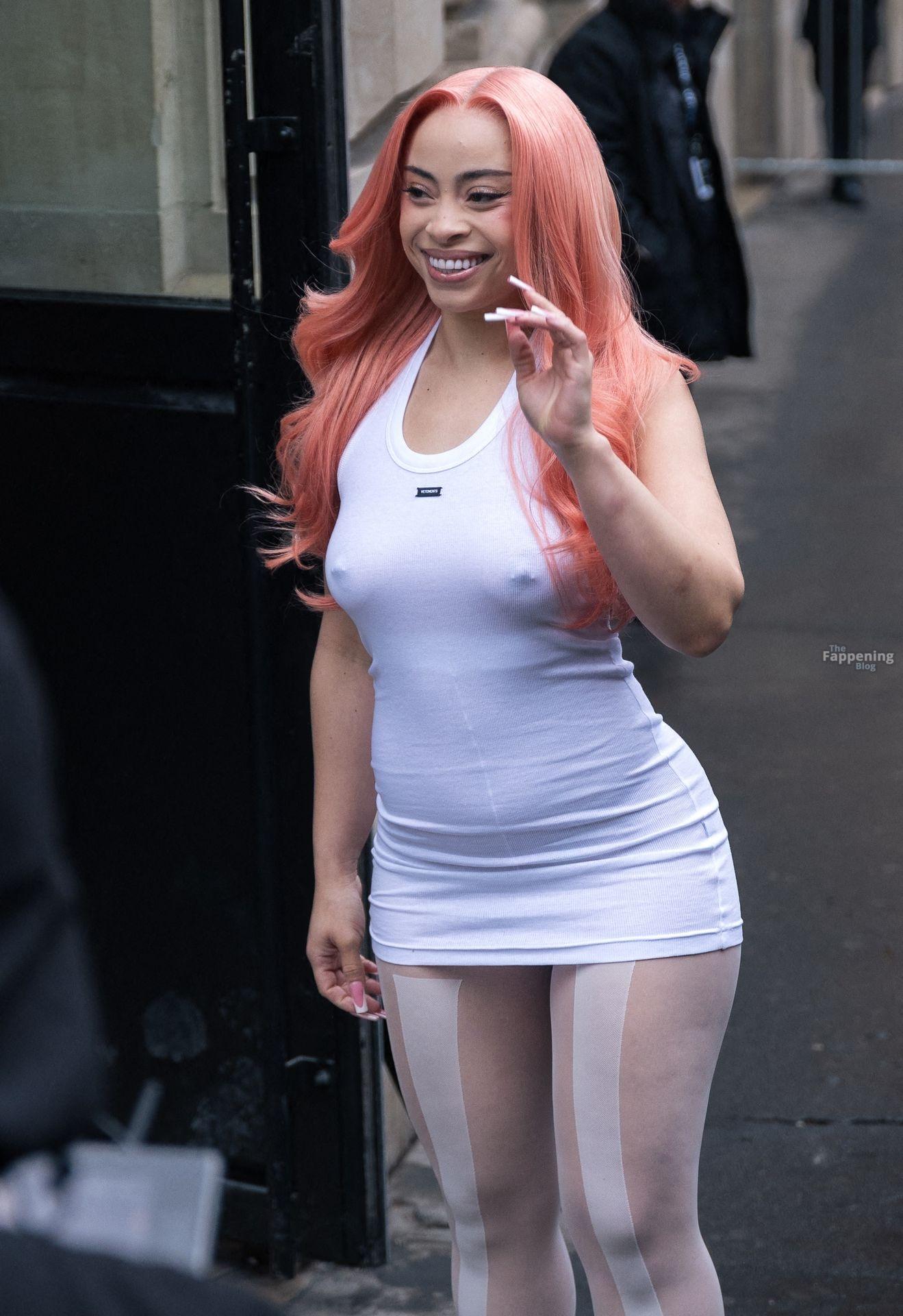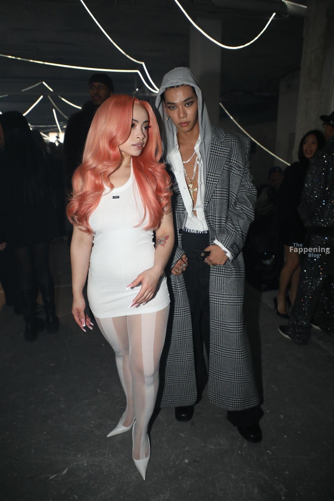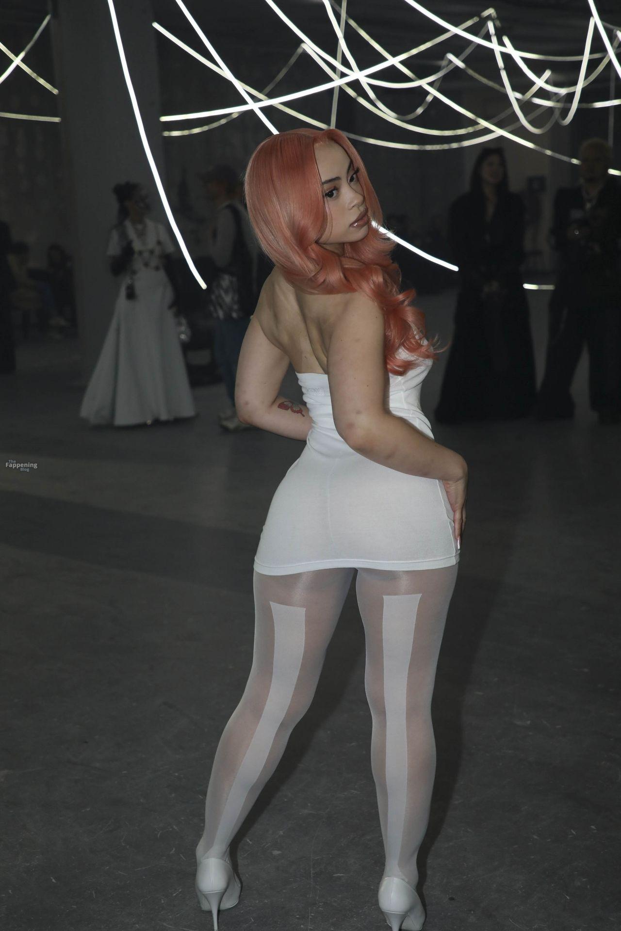 Ice Spice presume de sus atributos con un mini ajustado y medias transparentes en la Semana de la Moda de París de VETEMENTS.