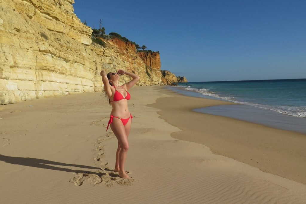 Imogen Thomas cosecha los frutos de su esfuerzo mientras muestra su increíble cuerpo en bikini con un bikini rojo Chasing Summer después de participar en una agotadora semana de fitness y dieta en Prestige Bootcamp en Portugal, 25/01/2019.