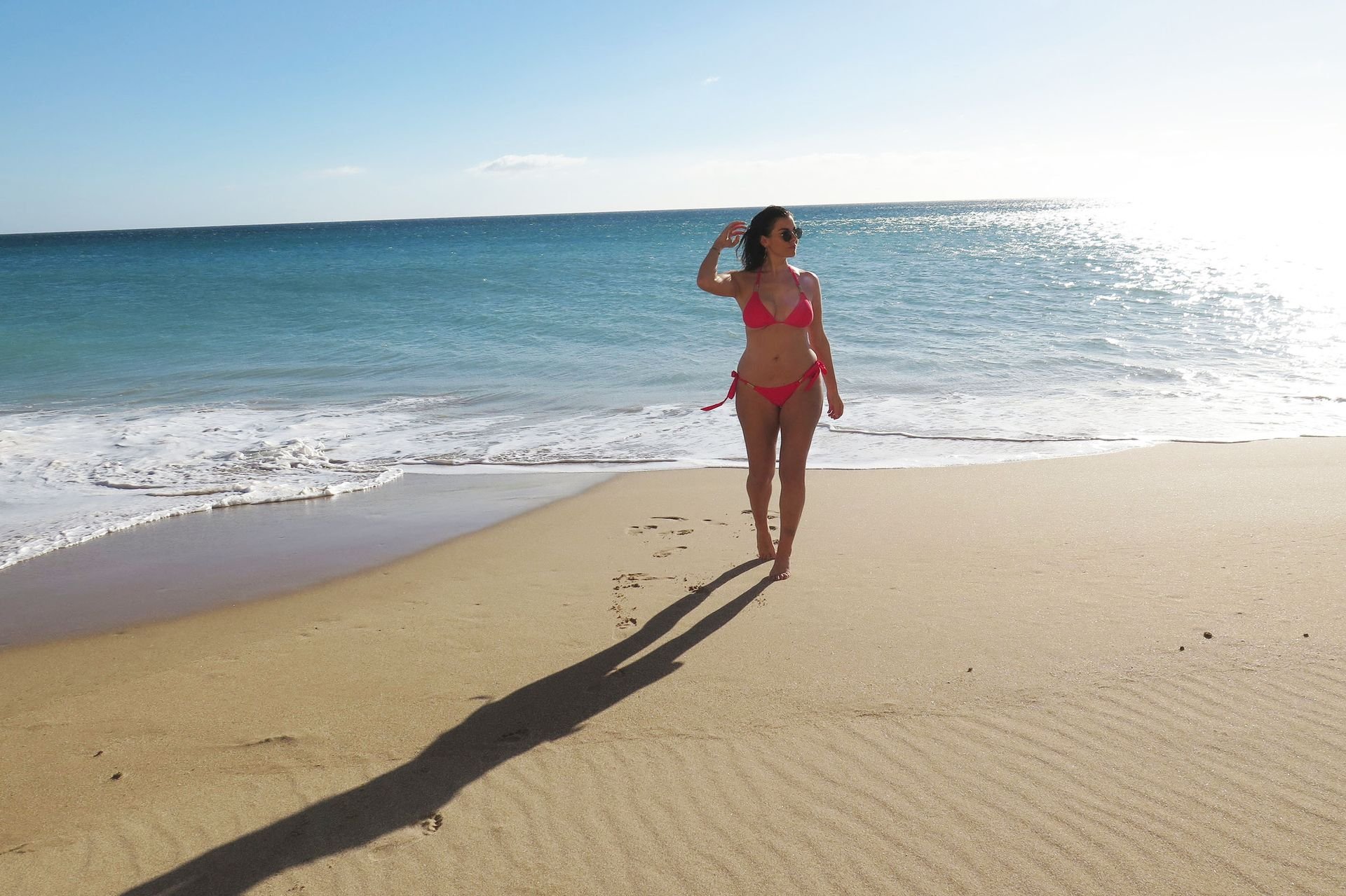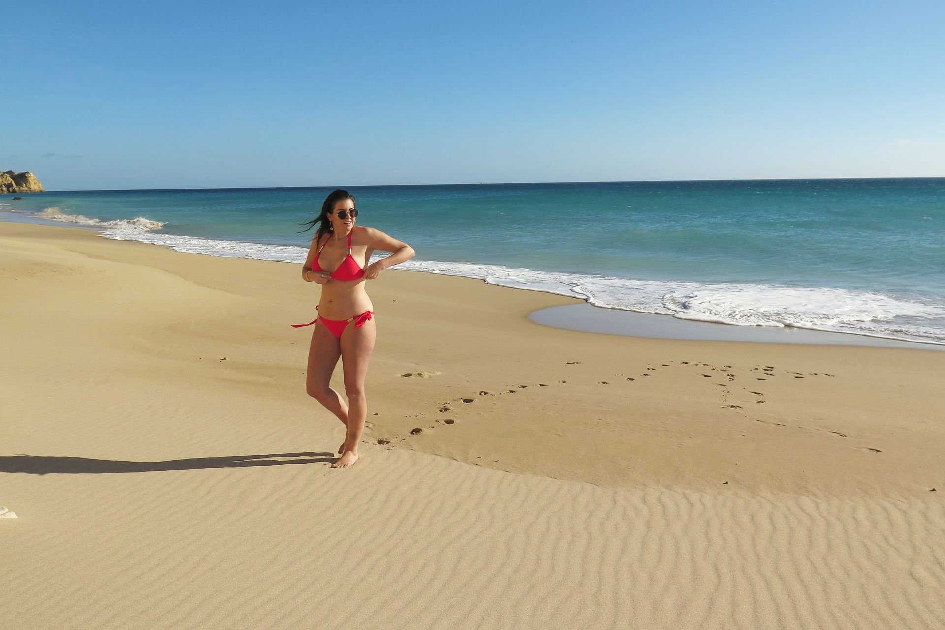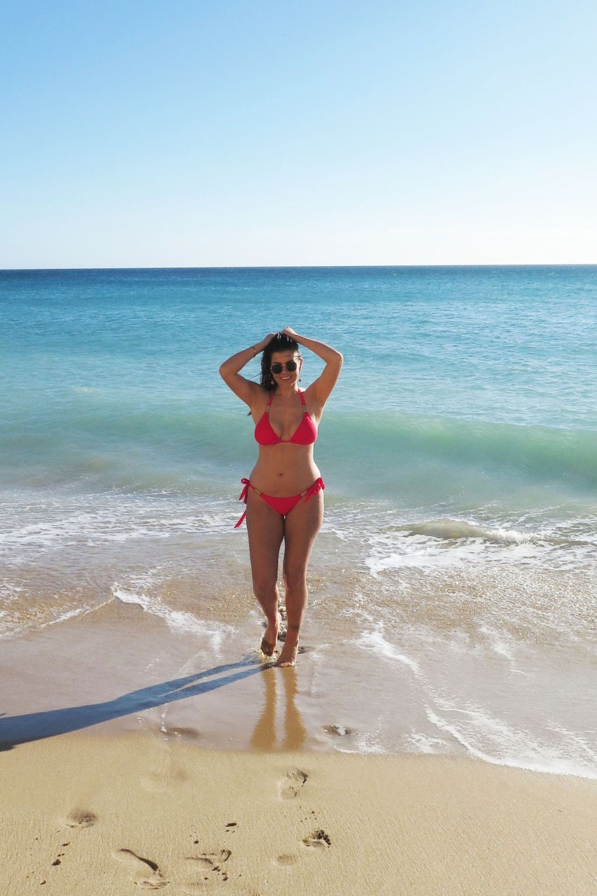 Imogen Thomas cosecha los frutos de su esfuerzo mientras muestra su increíble cuerpo en bikini con un bikini rojo Chasing Summer después de participar en una agotadora semana de fitness y dieta en Prestige Bootcamp en Portugal, 25/01/2019.