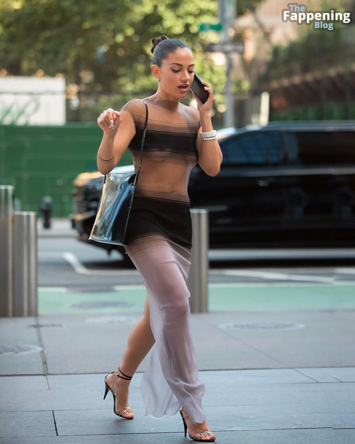 Inanna Sarkis se ve impresionante luciendo un bonito underboob con un vestido transparente.