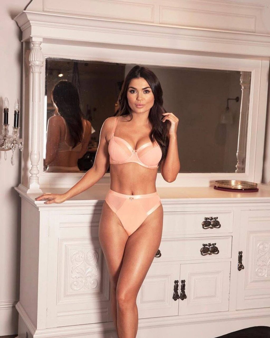 La glamorosa modelo morena India Reynolds promociona la colección de lencería Pour Moi mostrando su impresionante figura (2020).