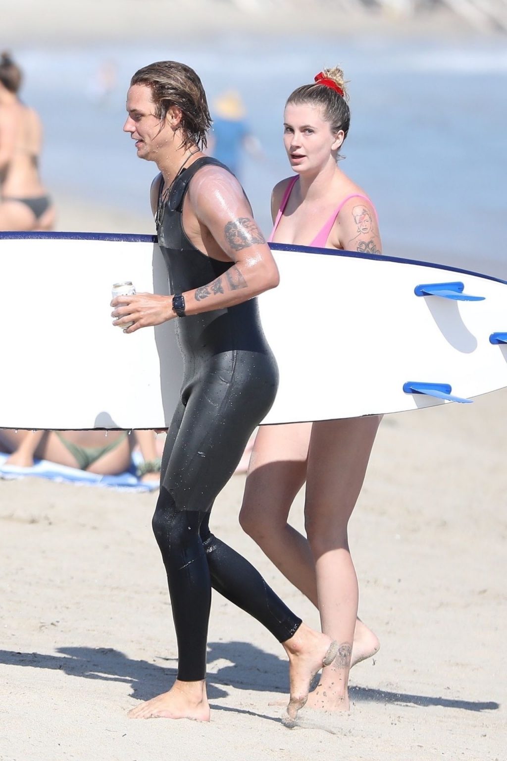 Socialité, modelo y hija de Alec Baldwin, Ireland Baldwin es vista observando a su novio Corey Harper surfear en Malibu, 30/08/2020.