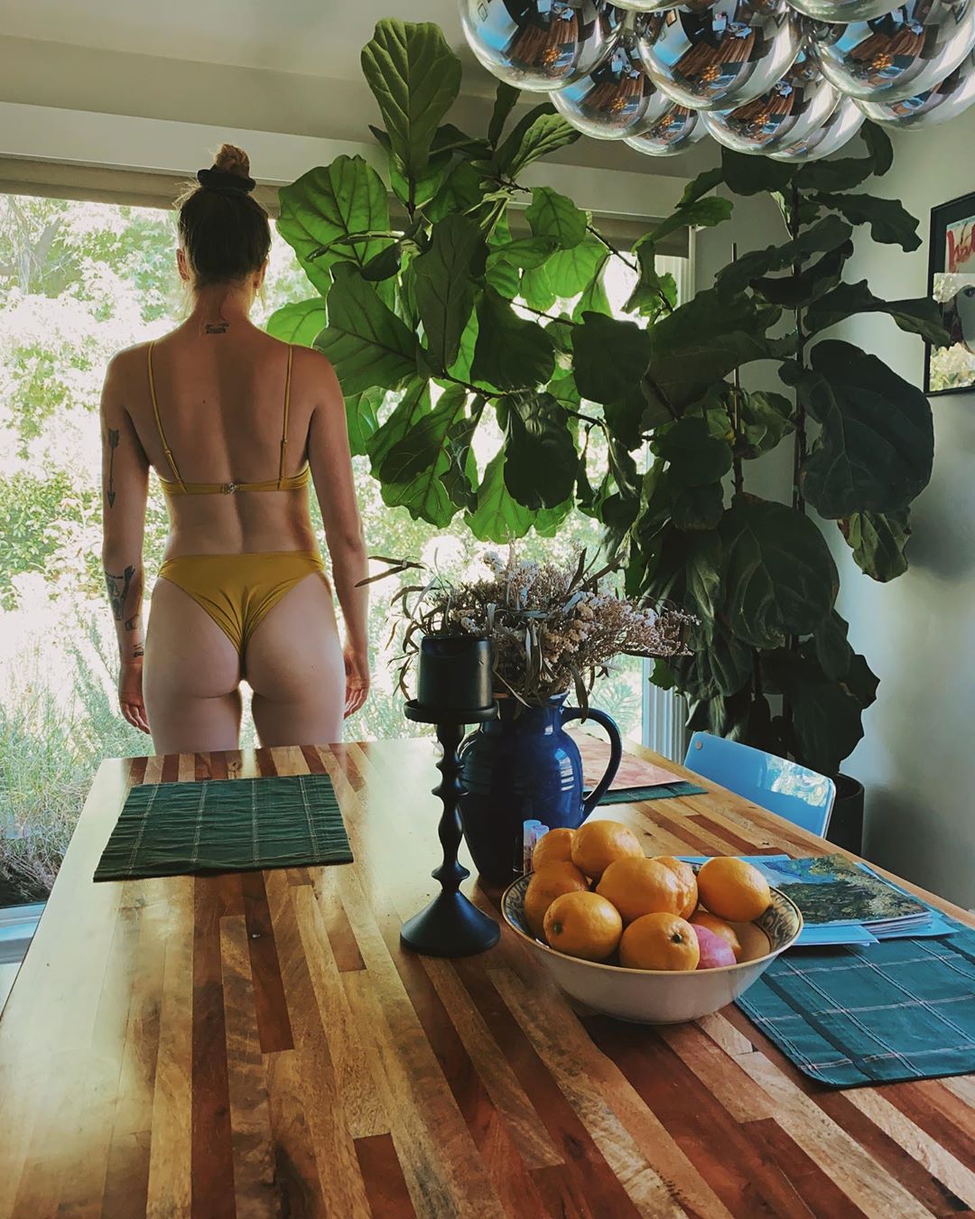 Model Ireland Baldwin muestra su trasero y pechos mientras posa con un bikini amarillo de MonicaHansenBeachwear – Instagram, 05/06/2020.