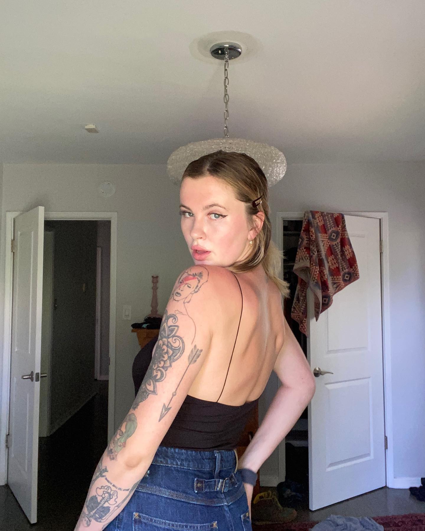 Buenos pechos, pero tatuajes de mierda y tiene la cara de su papá.
