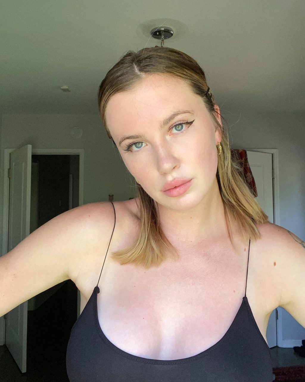La modelo con busto Ireland Baldwin posa con una camiseta sin mangas negra, ofreciendo a los admiradores una vista impresionante de su escote – Instagram (mayo 2020).