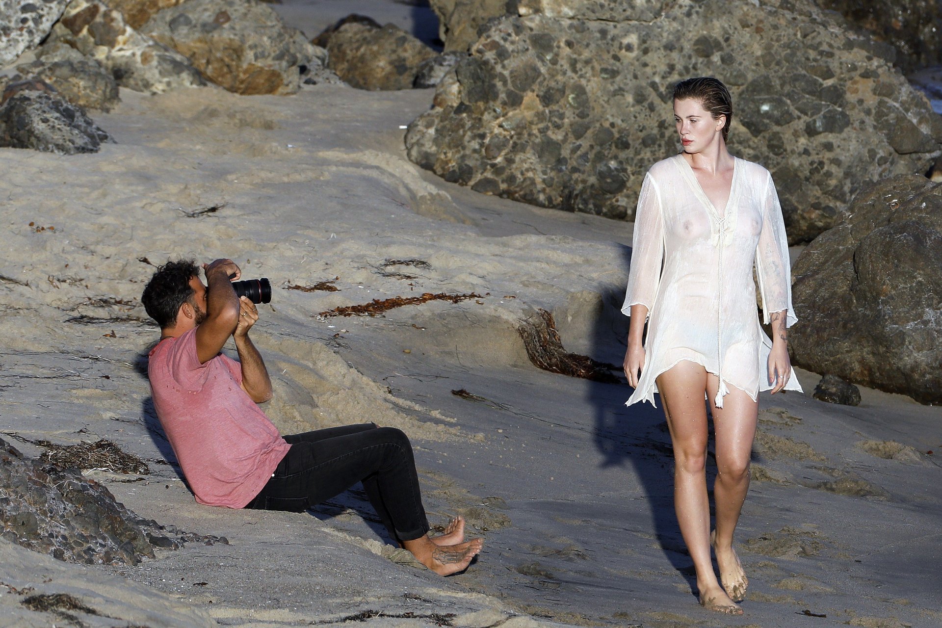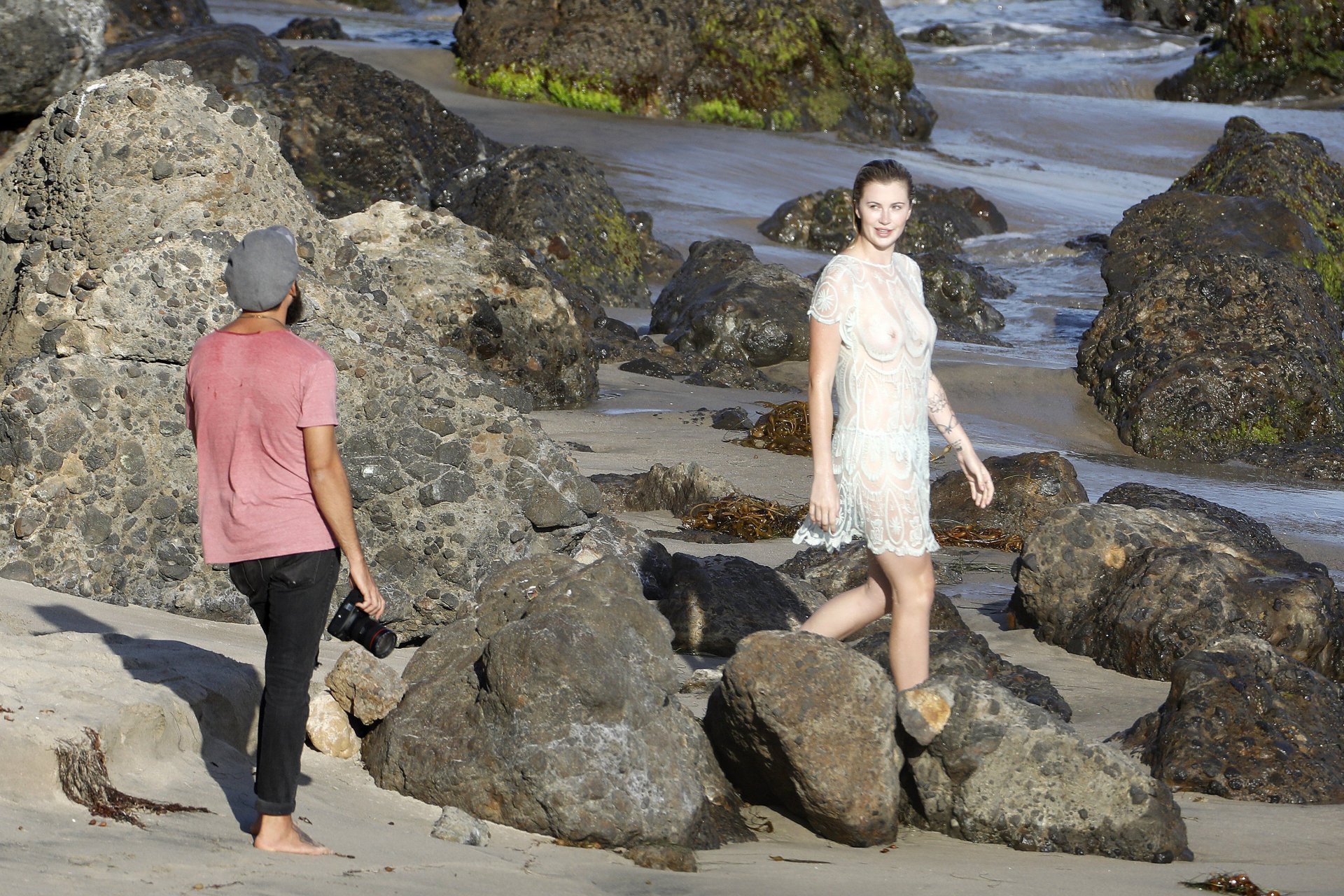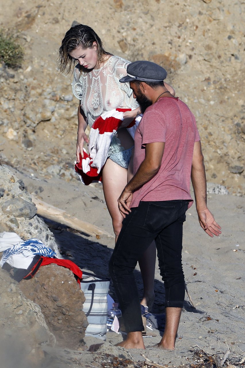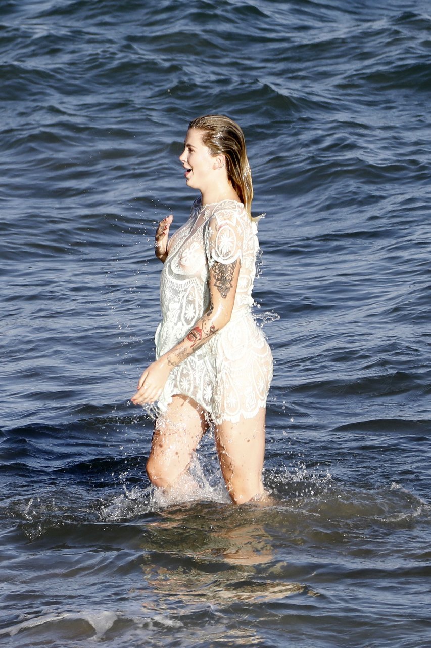 Ireland Baldwin posa para una sesión de fotos en la playa de Malibu, 05/10/2017. Ireland Baldwin-Basinger es una modelo de moda estadounidense, actriz (Campus Caller). Edad – 21 años (nacida el 23 de octubre de 1995).