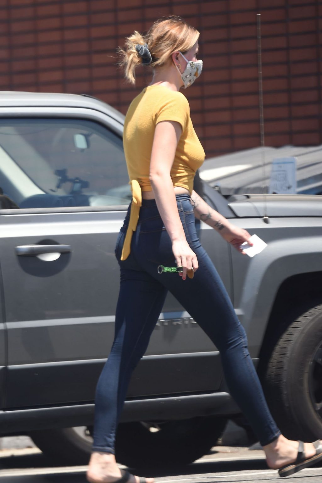 Ireland Baldwin muestra su escote con un top amarillo escotado mientras se dirige a adoptar un nuevo perro en Los Ángeles el jueves (2020).