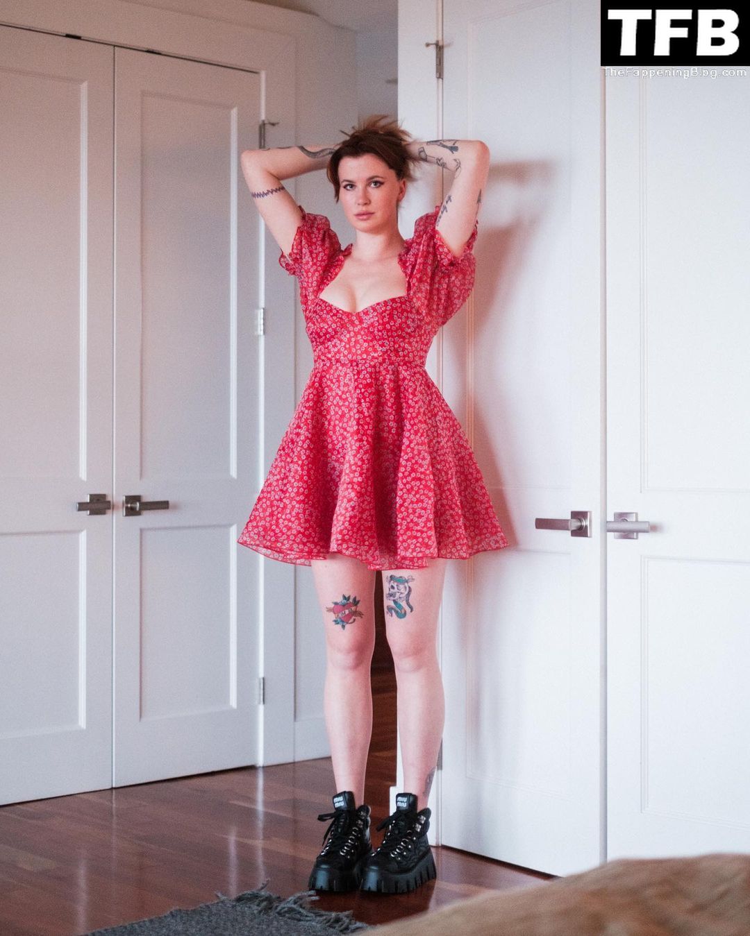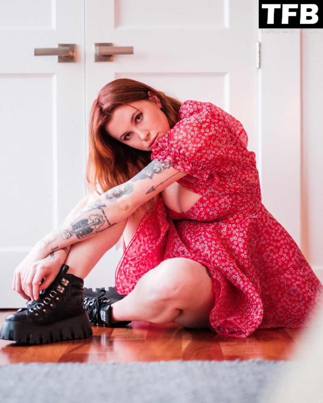 Modelo Ireland Baldwin muestra su bonito escote mientras posa en una sesión de fotos para la marca Selkie (2022).