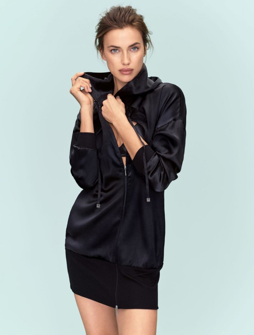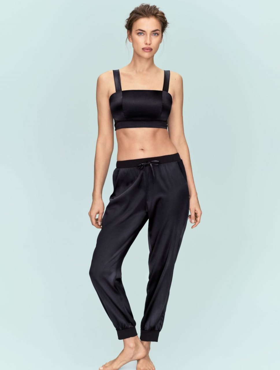 Embajadora de Intimissimi, la rusa Irina Shayk protagoniza la última campaña publicitaria de la marca italiana de lencería, mostrando una gama de ropa de dormir y ropa de ocio de seda que incluye conjuntos de pijama y camisones.