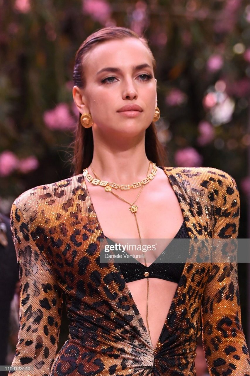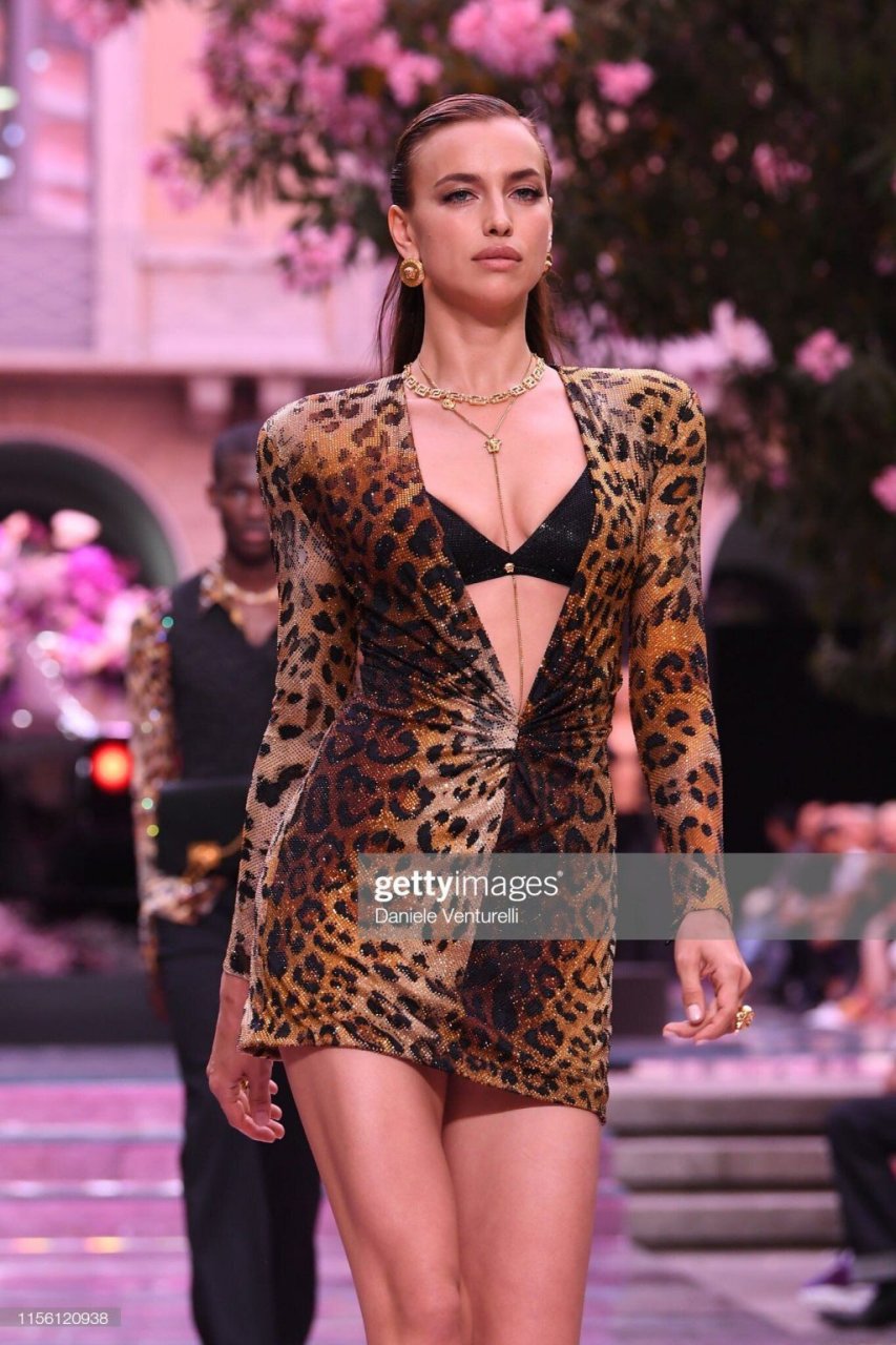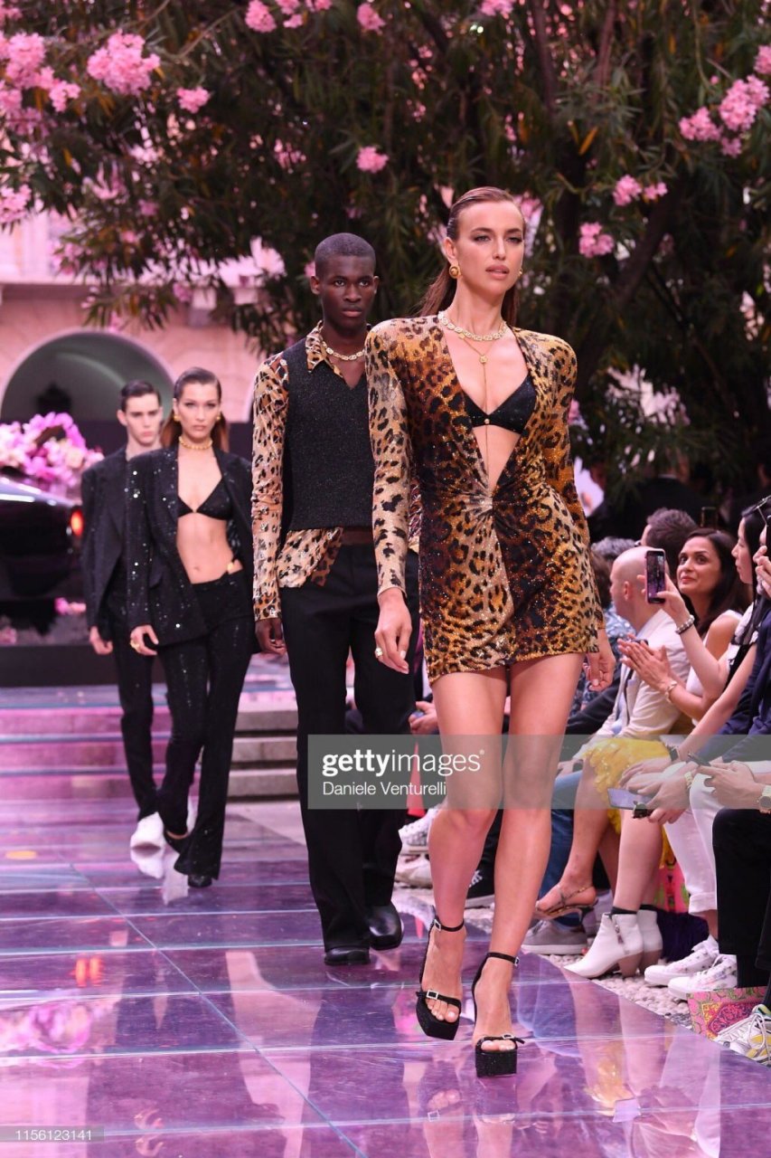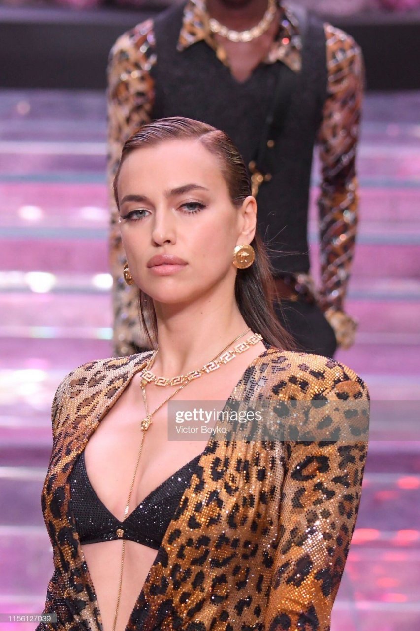 La modelo rusa Irina Shayk fue fotografiada en la pasarela de Versace en la Semana de la Moda de Milán Primavera 2020 en Milán, 15/06/2019. Además de la ropa masculina, los modelos presentaron una nueva colección para mujeres.