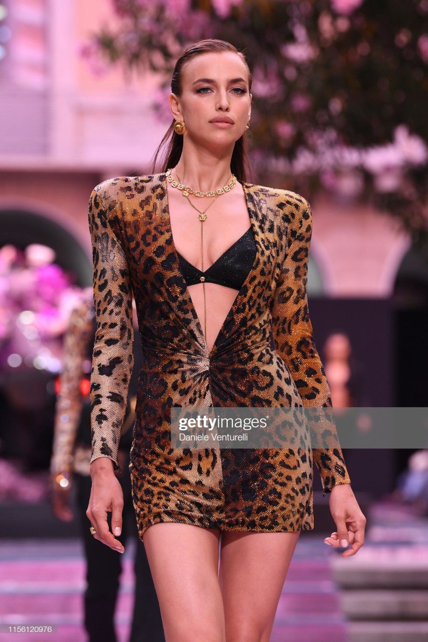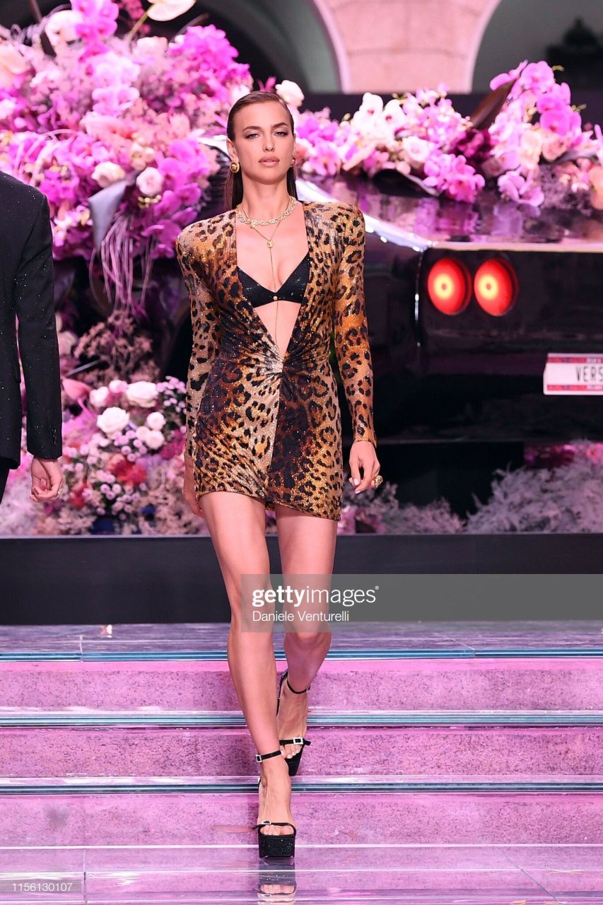 La modelo rusa Irina Shayk fue fotografiada en la pasarela de Versace en la Semana de la Moda de Milán Primavera 2020 en Milán, 15/06/2019. Además de la ropa masculina, los modelos presentaron una nueva colección para mujeres.
