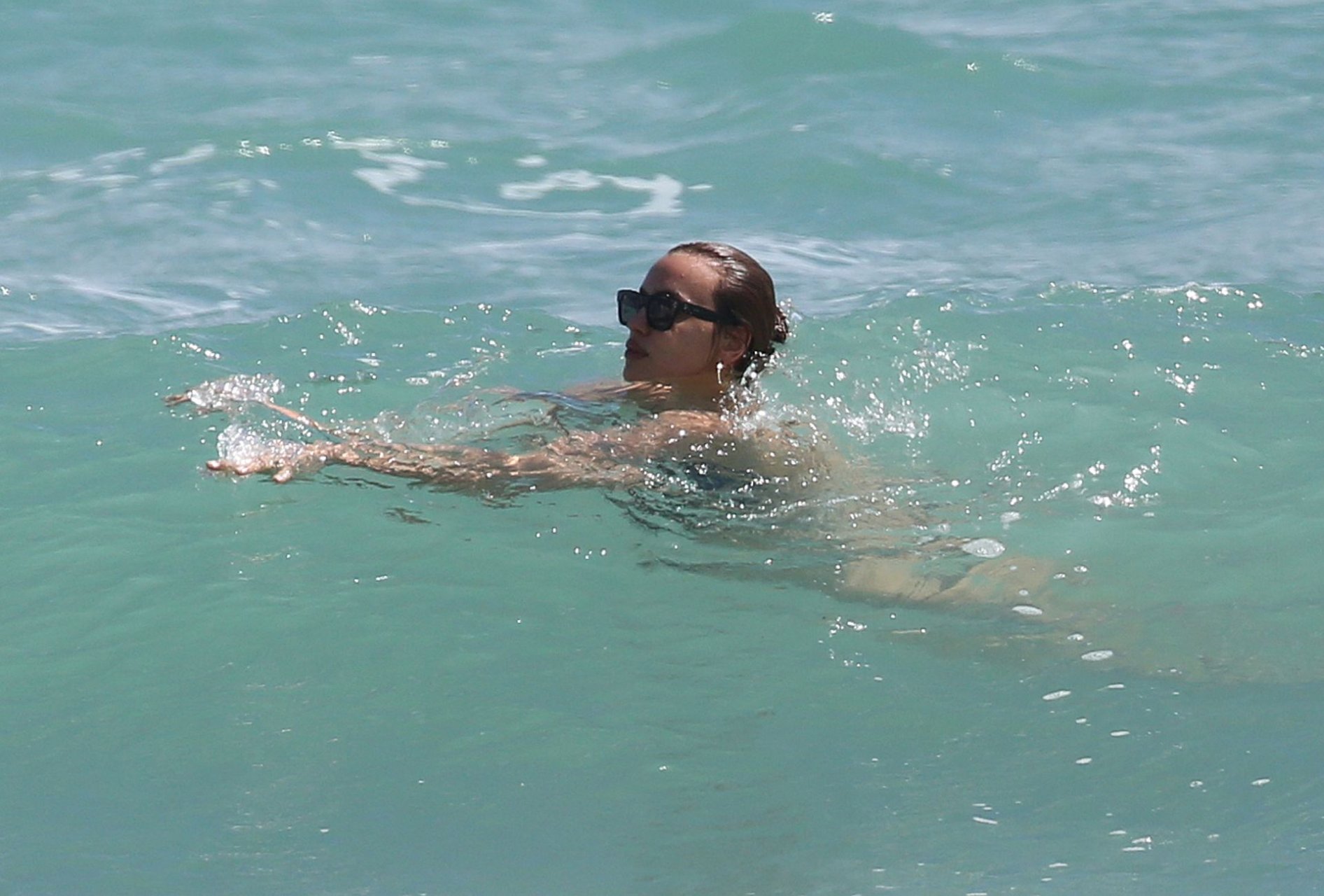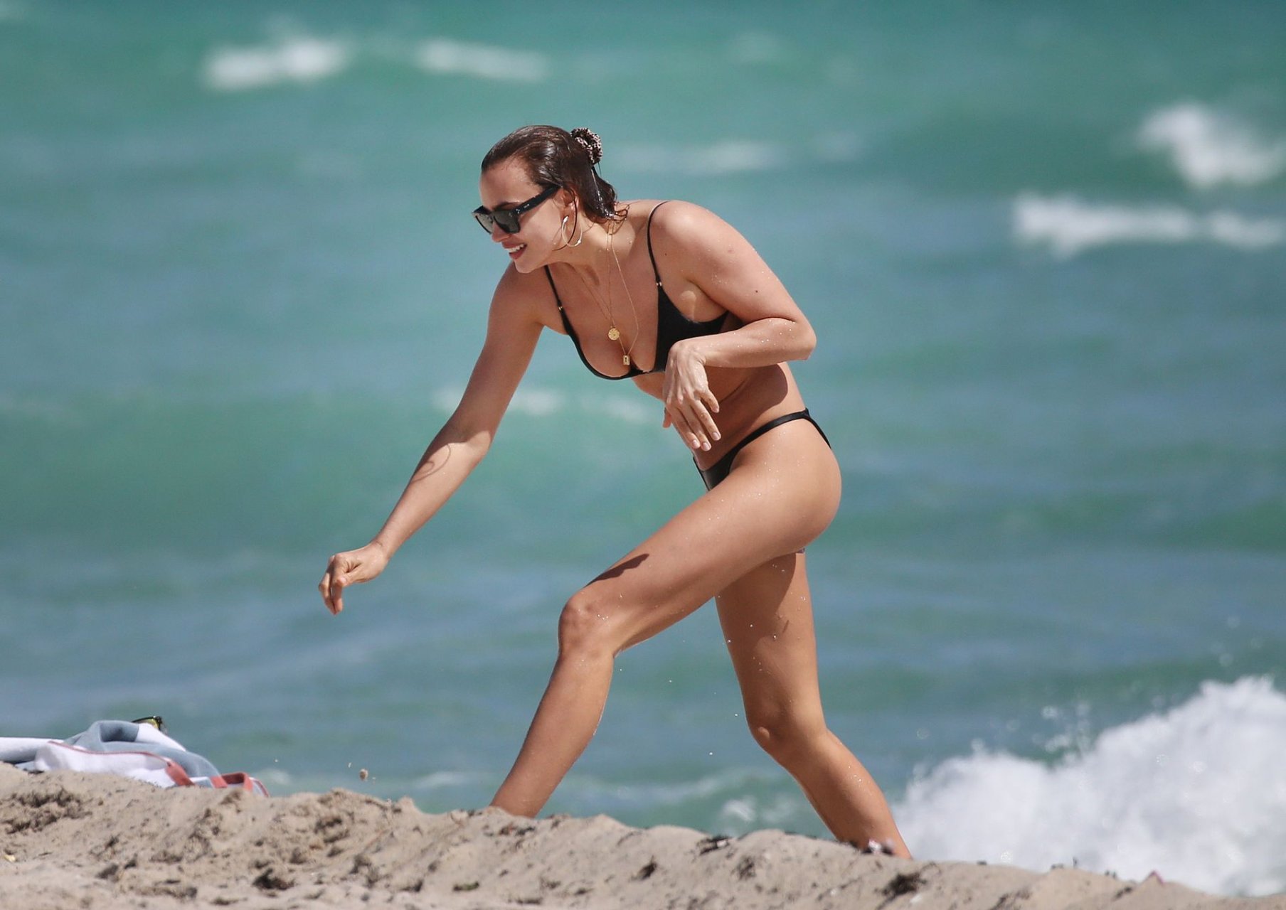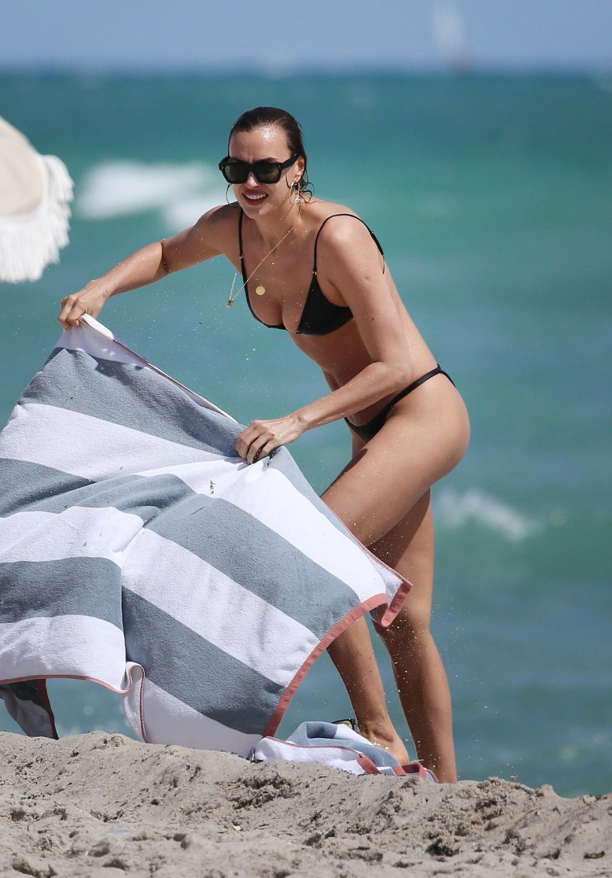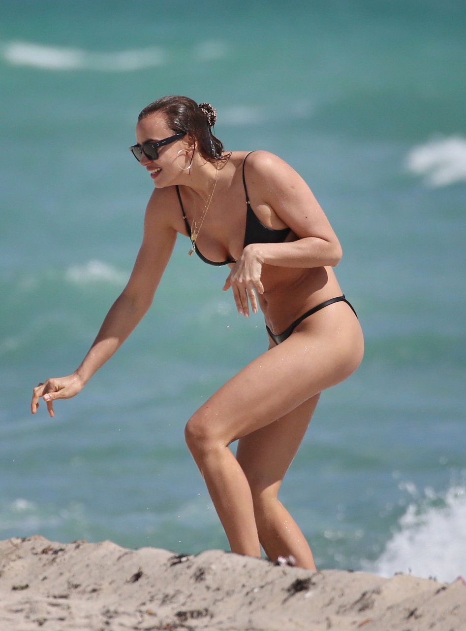 La supermodelo Irina Shayk evita por poco un fallo de vestuario con un diminuto bikini negro mientras disfruta de la playa en Miami, 03/08/2019.