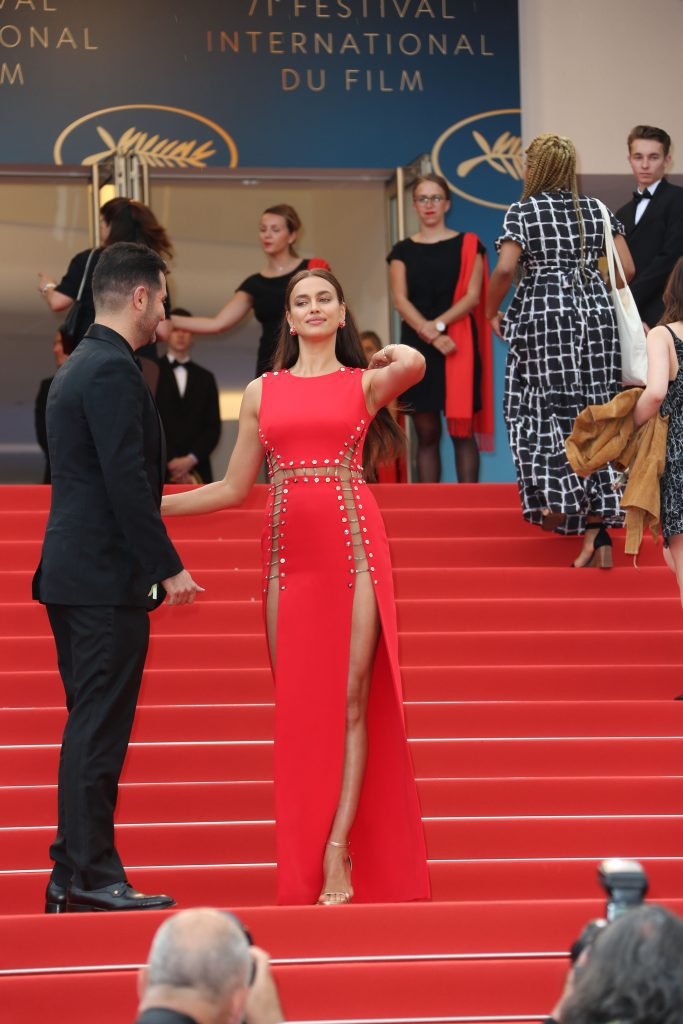Irina Shayk sin ropa interior asiste al estreno de la película ‘Sorry Angel’ con un vestido Versace rojo y espontáneo en el 71º Festival de Cine de Cannes en Francia, 10/05/2018. Irina Shayk es una modelo y actriz nacida en Rusia, Edad: 32.