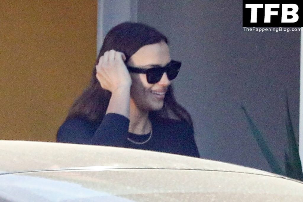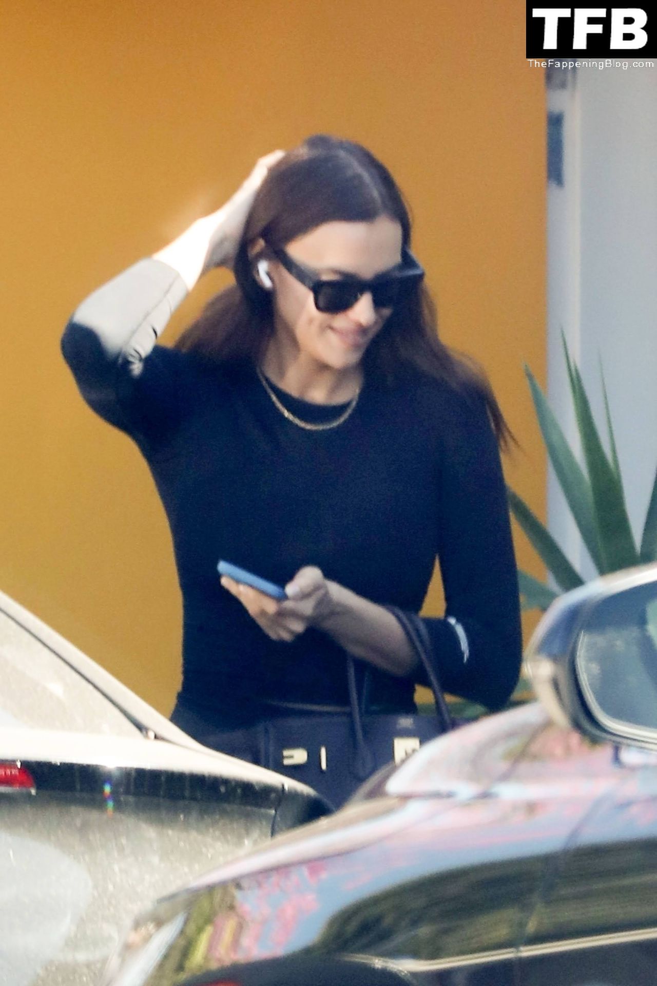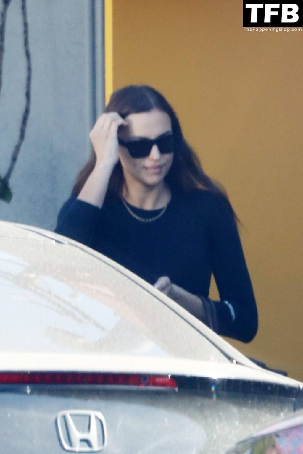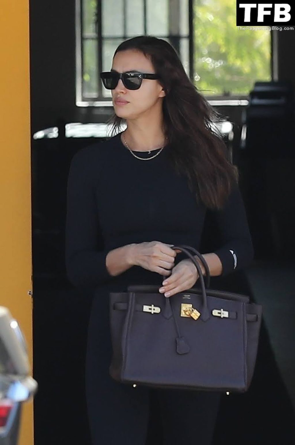 La modelo rusa Irina Shayk lleva ropa deportiva completamente negra y zapatos Yeezy para su sesión de gimnasio en Santa Mónica, 02/03/2022.