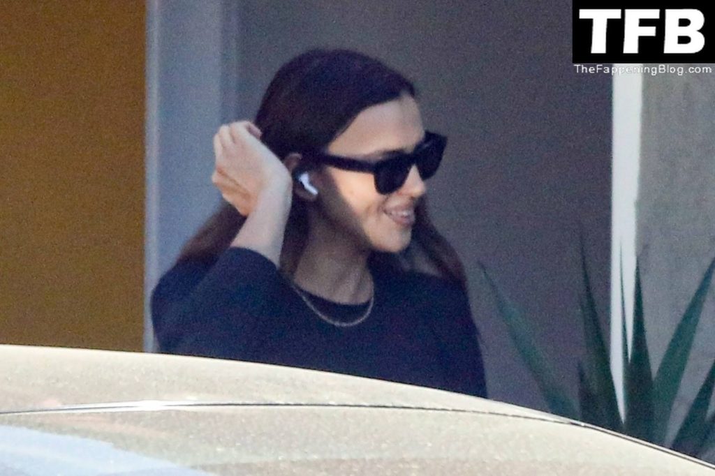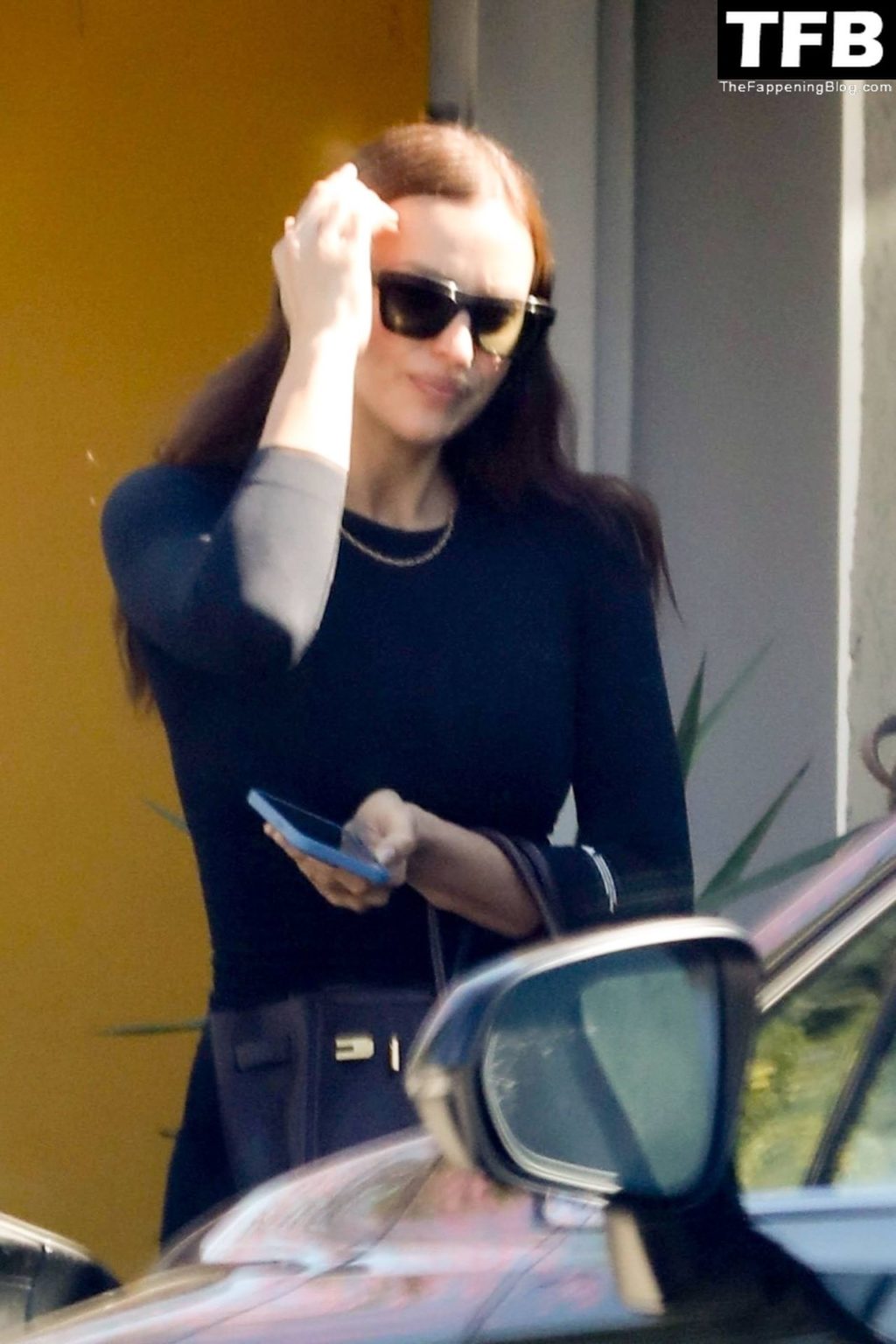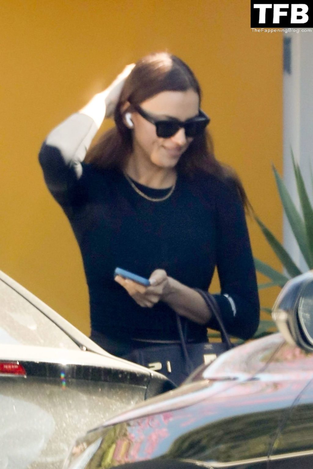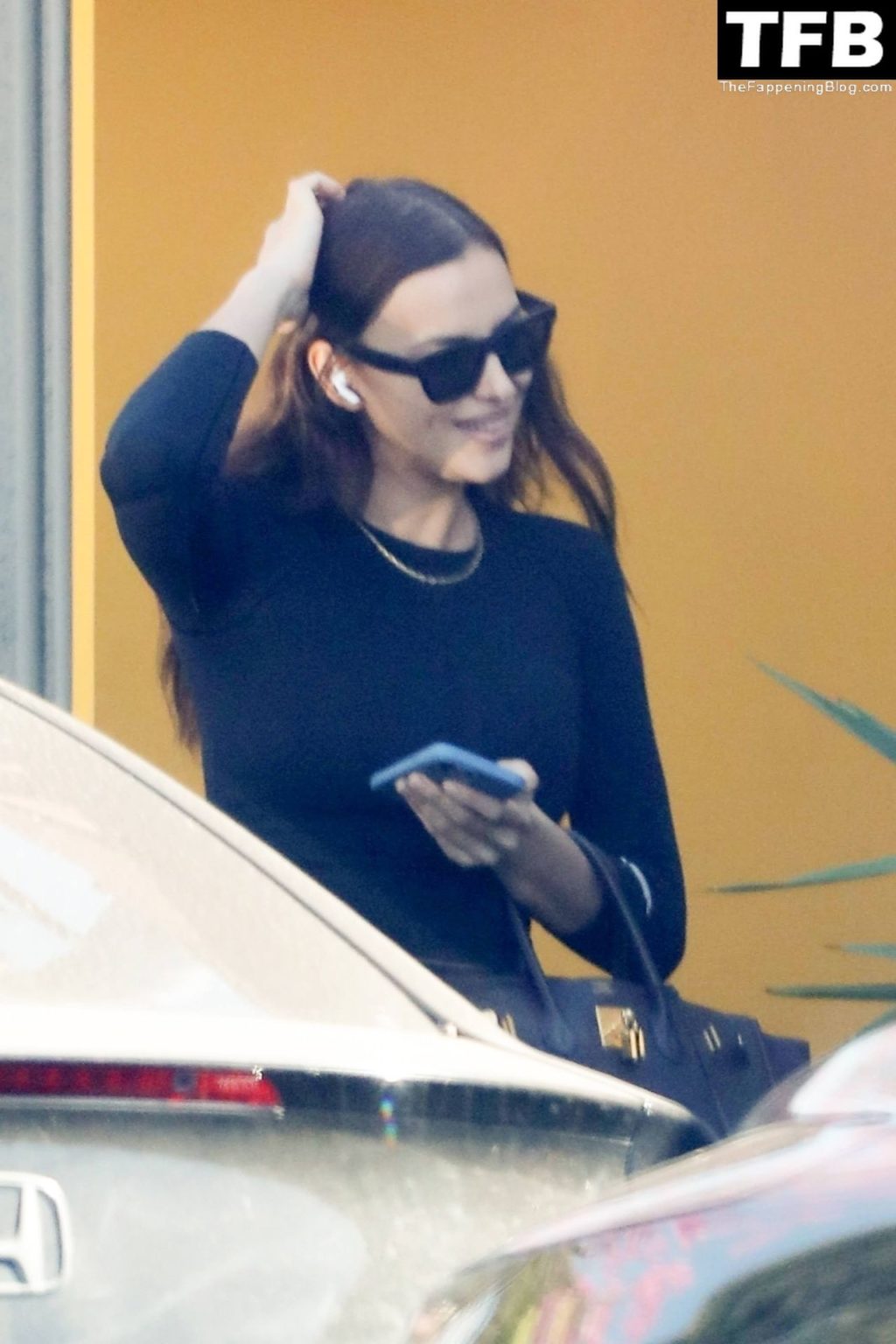 La modelo rusa Irina Shayk lleva ropa deportiva completamente negra y zapatos Yeezy para su sesión de gimnasio en Santa Mónica, 02/03/2022.