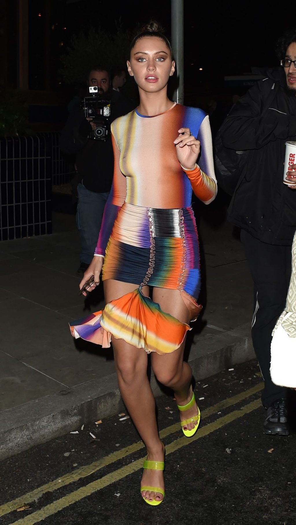 Consulta las nuevas fotos de Iris Law desde Londres, 17/02/2020. La modelo fue fotografiada sin sostén al llegar y salir de la fiesta de Love Magazine en The Standard Hotel.
