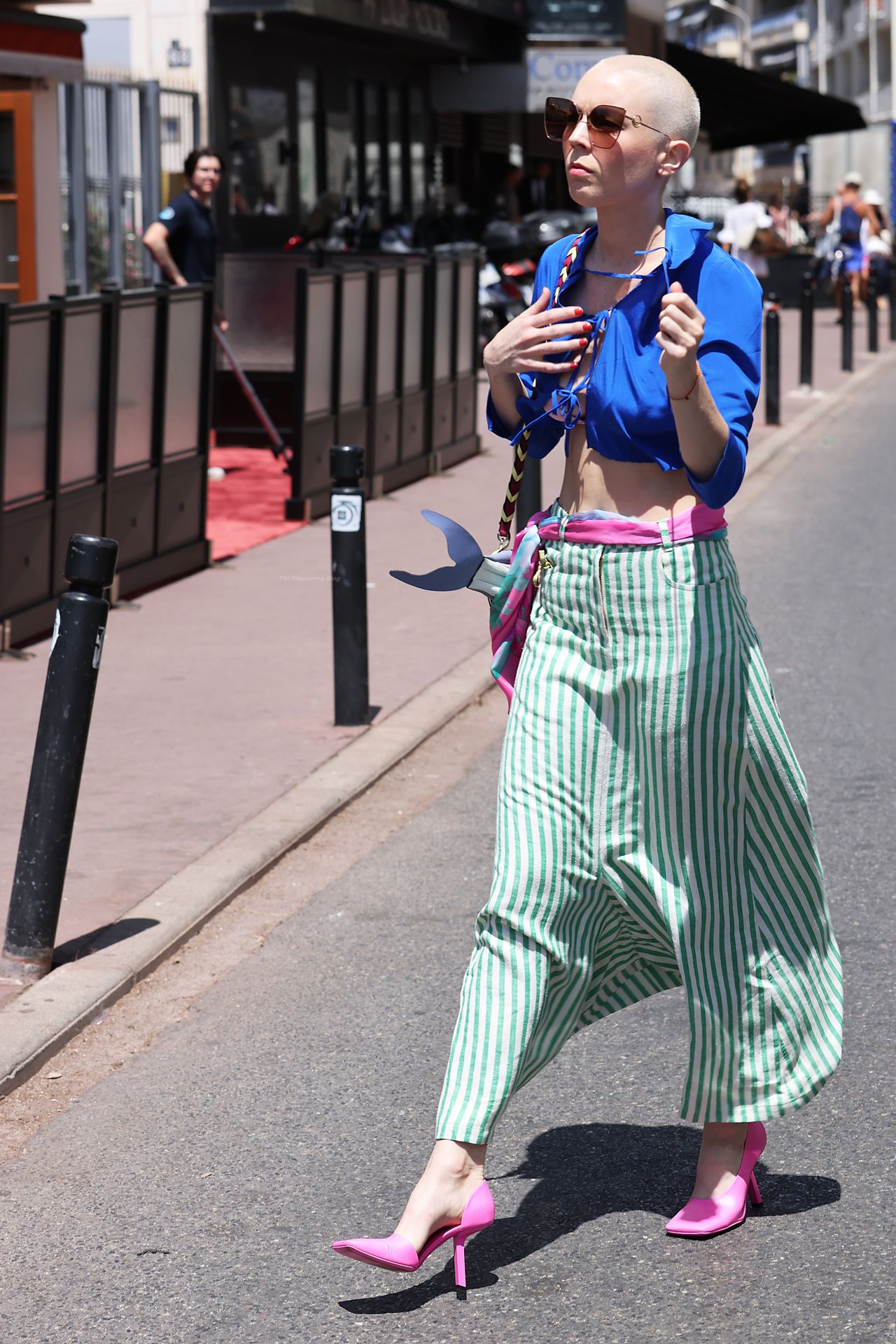 Iris Law es vista saliendo del Hotel Martinez durante el Festival de Cine de Cannes 2021 llevando un bolso con forma de pez y despojada hasta el bikini en el camino por la Croisette porque hacía demasiado calor para ella, 15/07/2021.