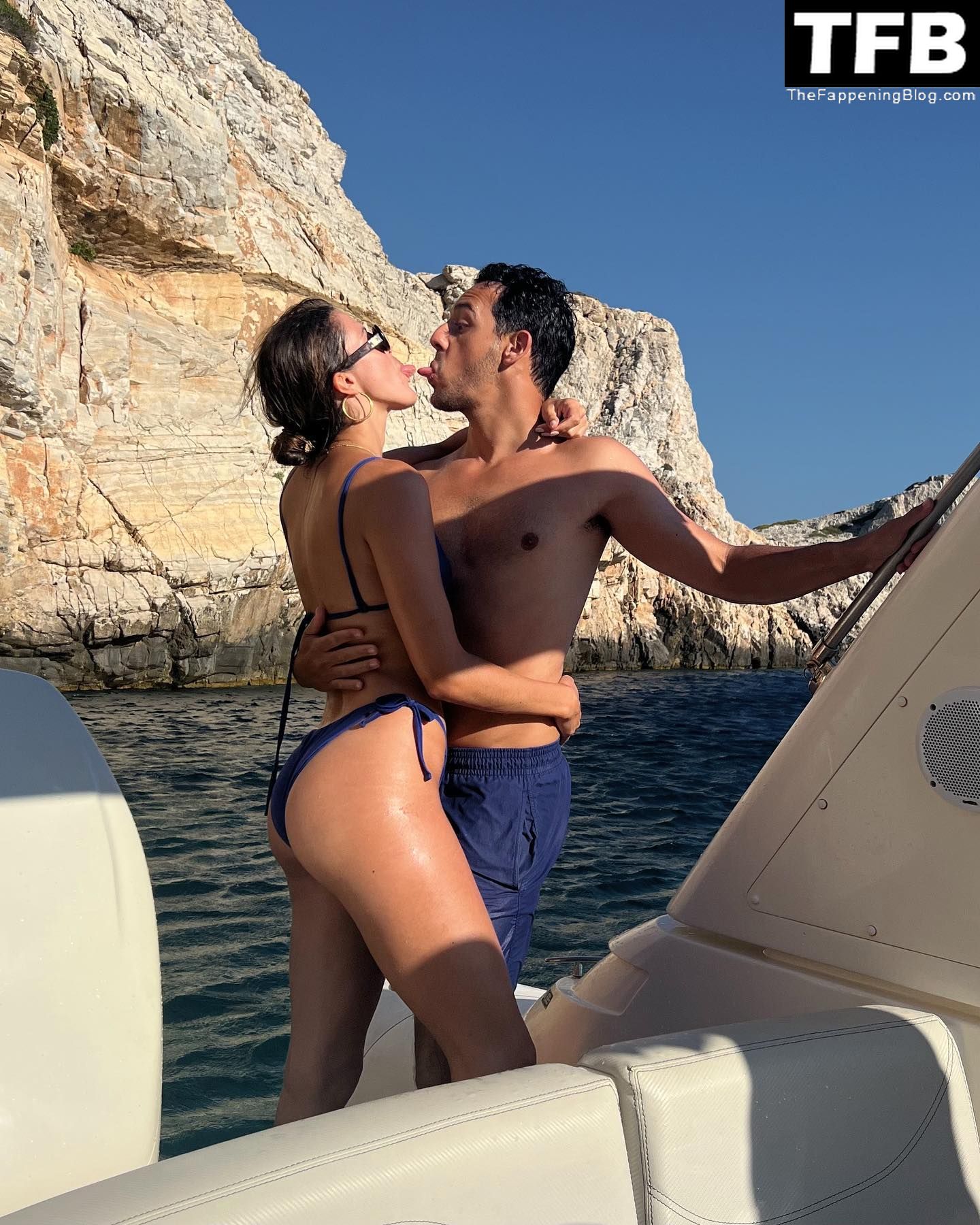La modelo francesa Iris Mittenaere muestra su figura sexy con un bikini azul mientras está de vacaciones en Grecia (agosto de 2022).