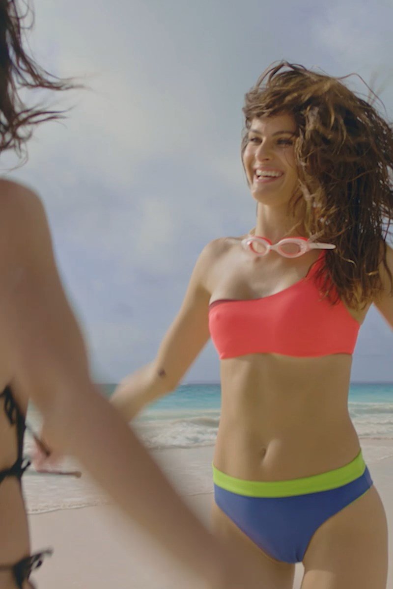 Isabeli Fontana posa en la playa para la sesión de fotos de Solid & Striped (2018). Isabeli Fontana es una modelo de moda top de Curitiba (Brasil). Nacida: 4 de julio de 1983.