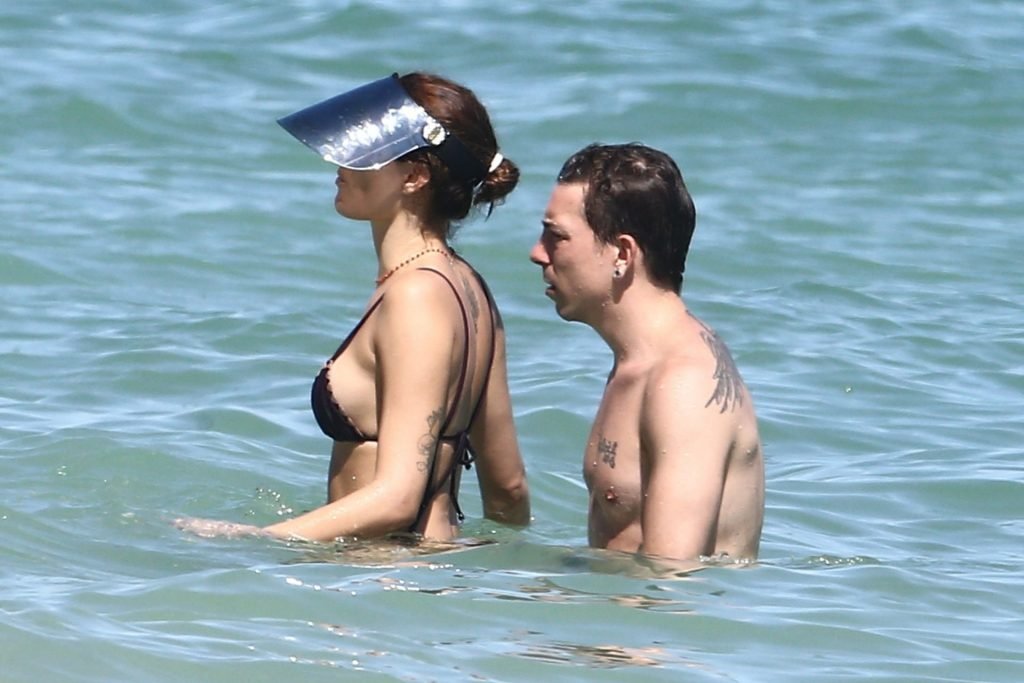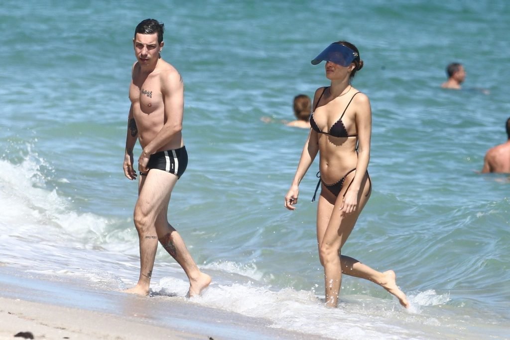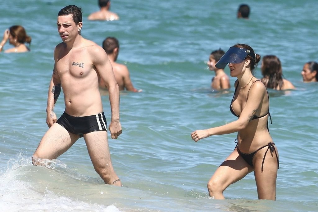 La supermodelo brasileña Isabeli Fontana y su novio, el músico Diego Ferrero, disfrutan del clima cálido mientras vacacionan en South Beach, 22/10/2019.