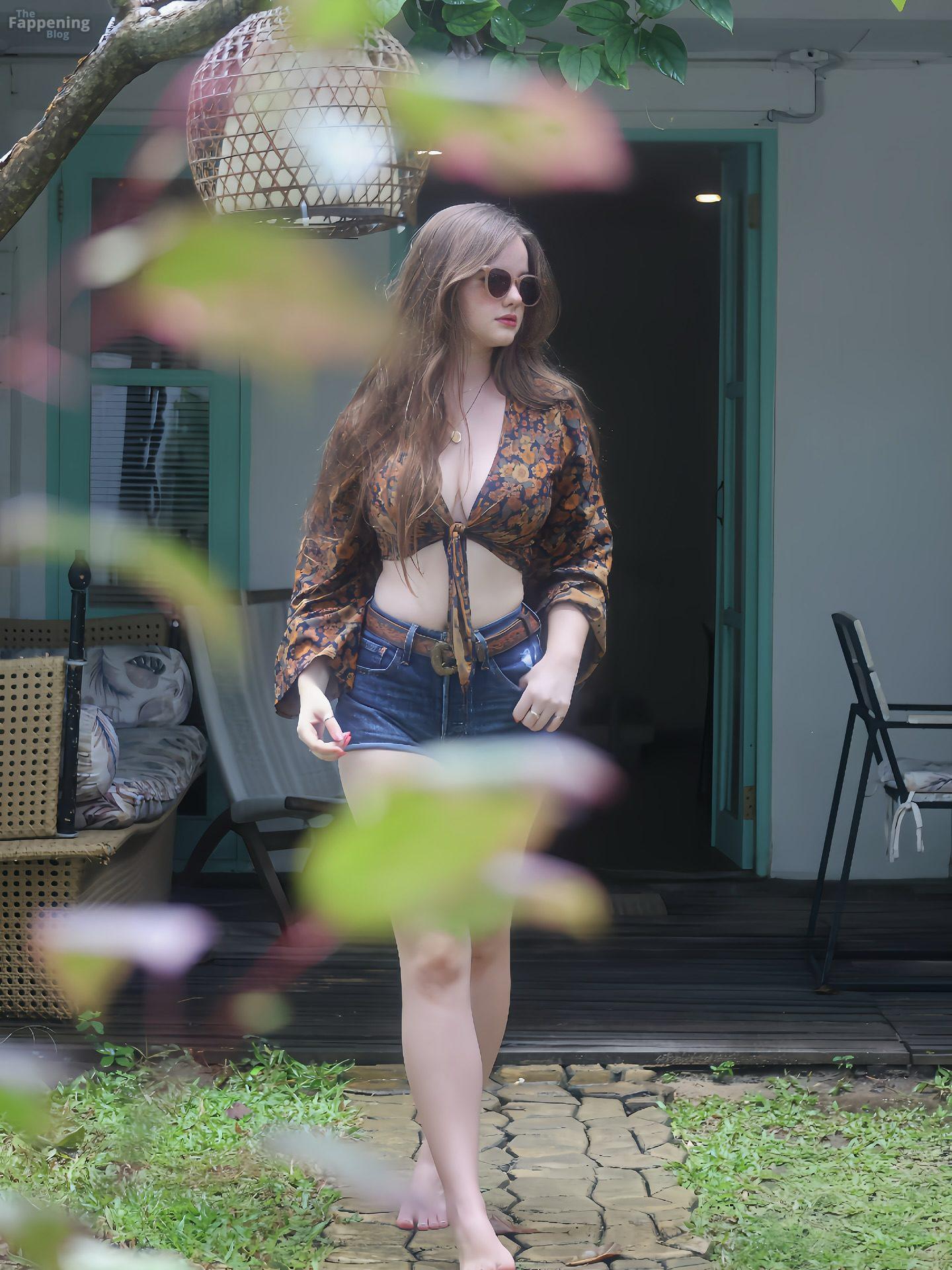 Isabella Ardley posa con shorts de mezclilla ajustados (19 fotos)