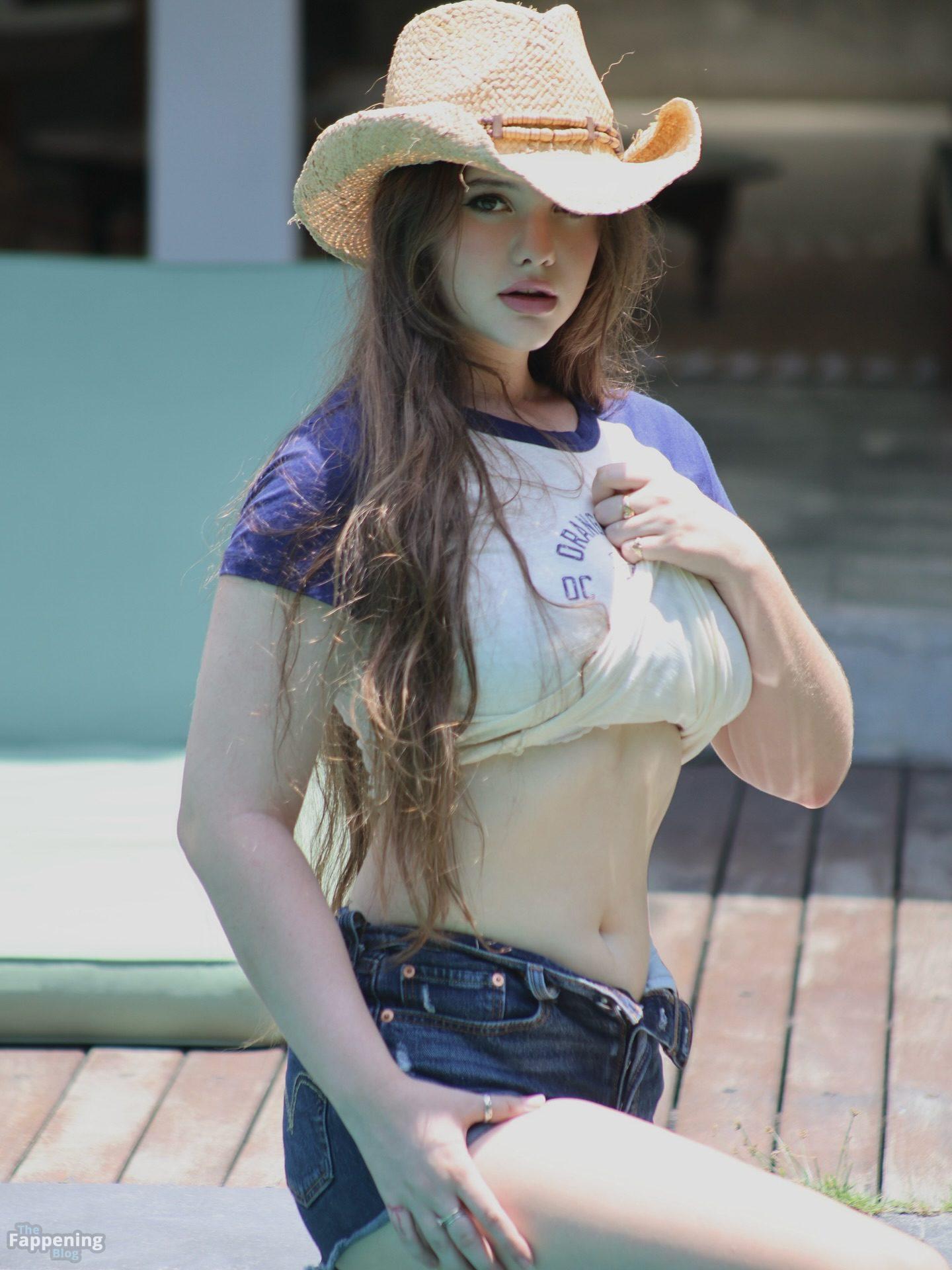 Isabella Ardley luce su cuerpo sexy con una camiseta ajustada y shorts de mezclilla, mostrando su look de vaquera junto a la piscina.