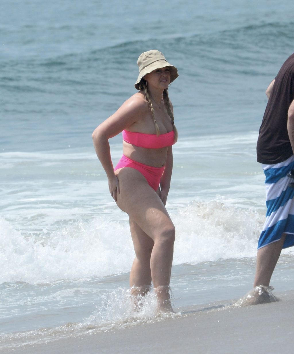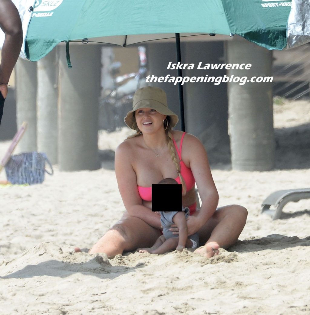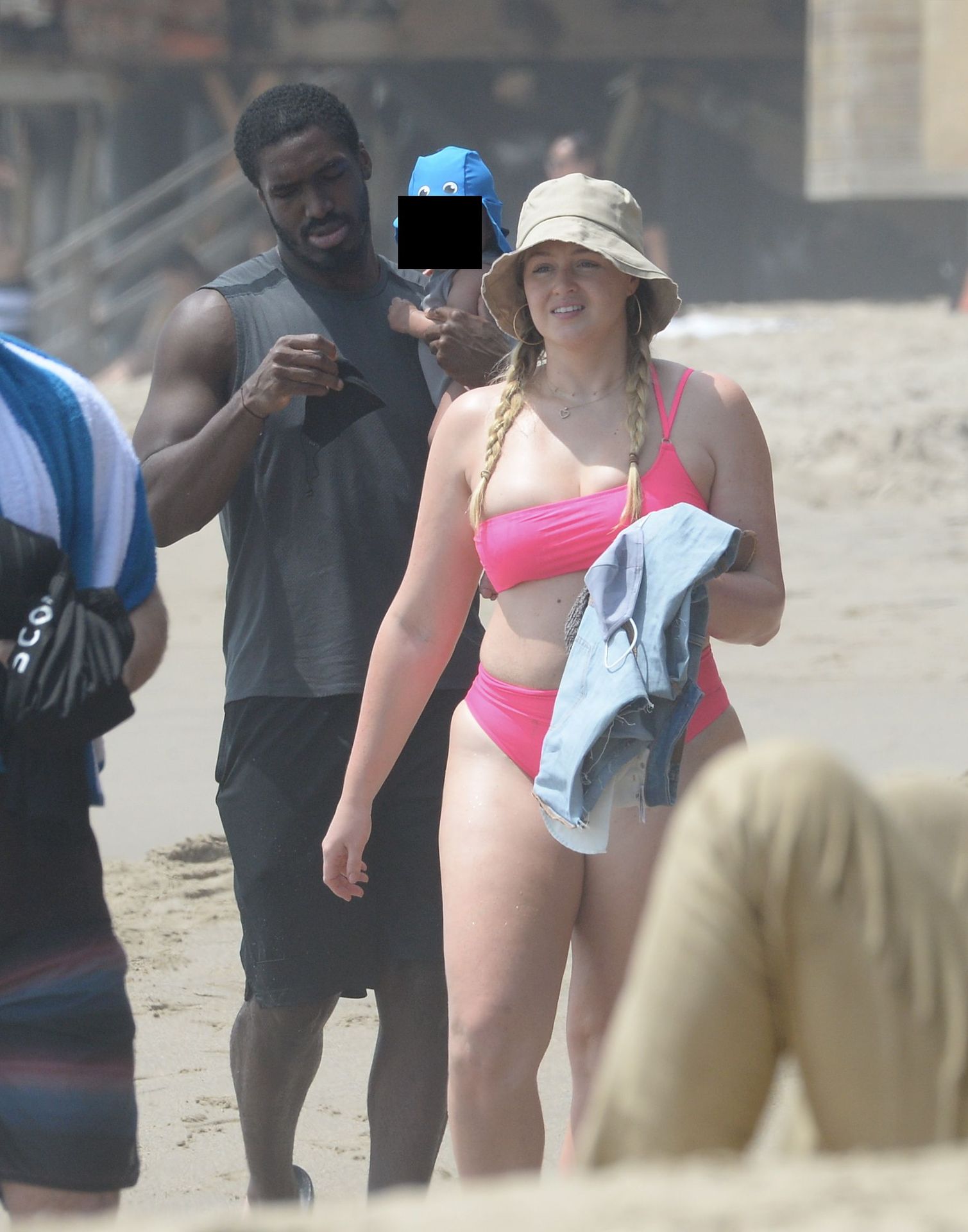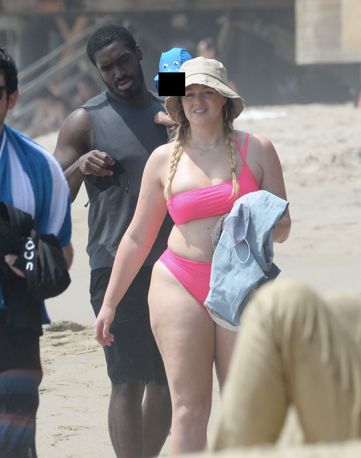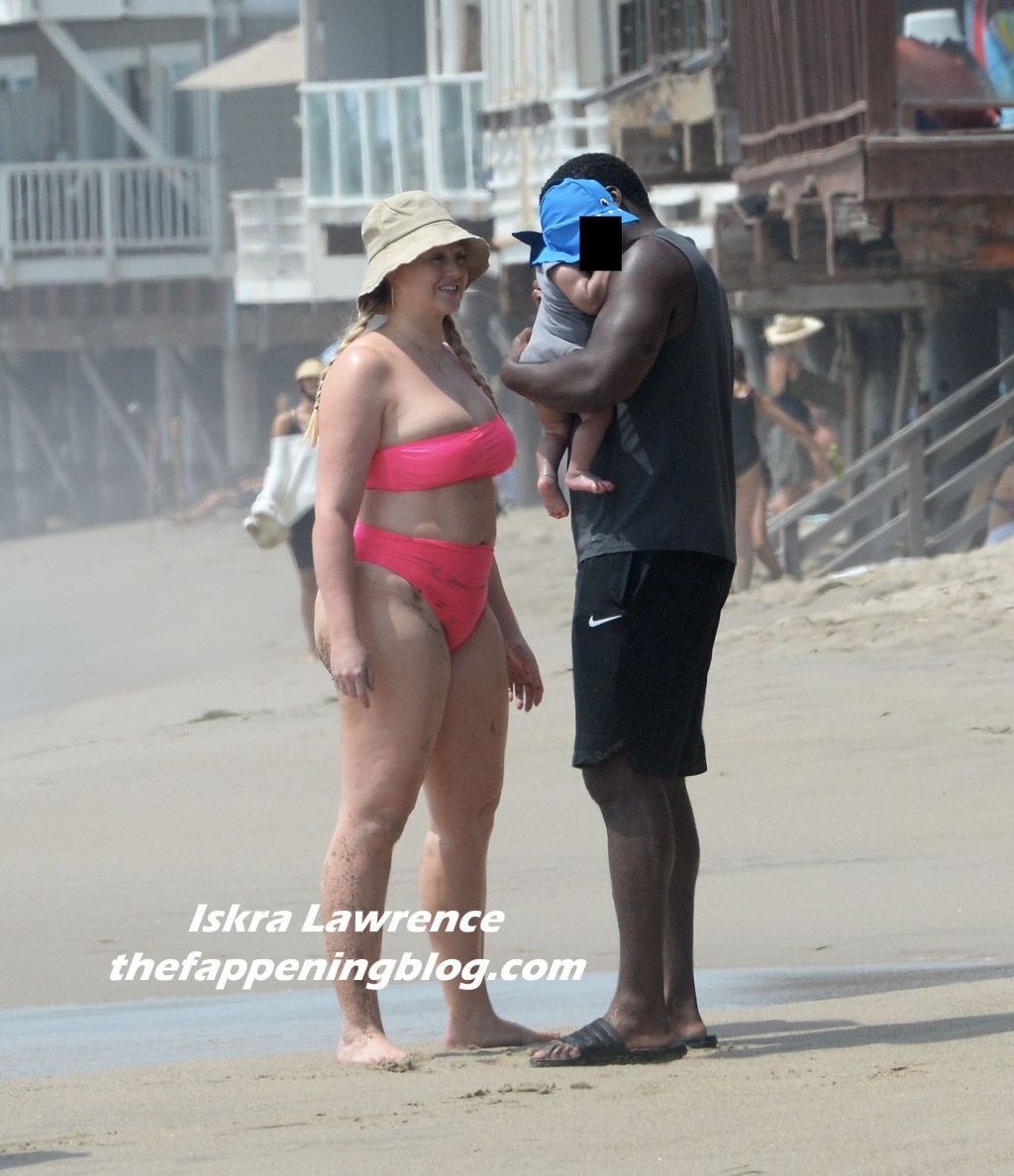 Iskra Lawrence llega a la playa con un bikini rosa intenso mientras disfruta de una salida con su novio Philip Payne en Malibu, 23/08/2020. La modelo británica y su ex deportista pasaron el día en la playa tomando fotos con su recién nacido.