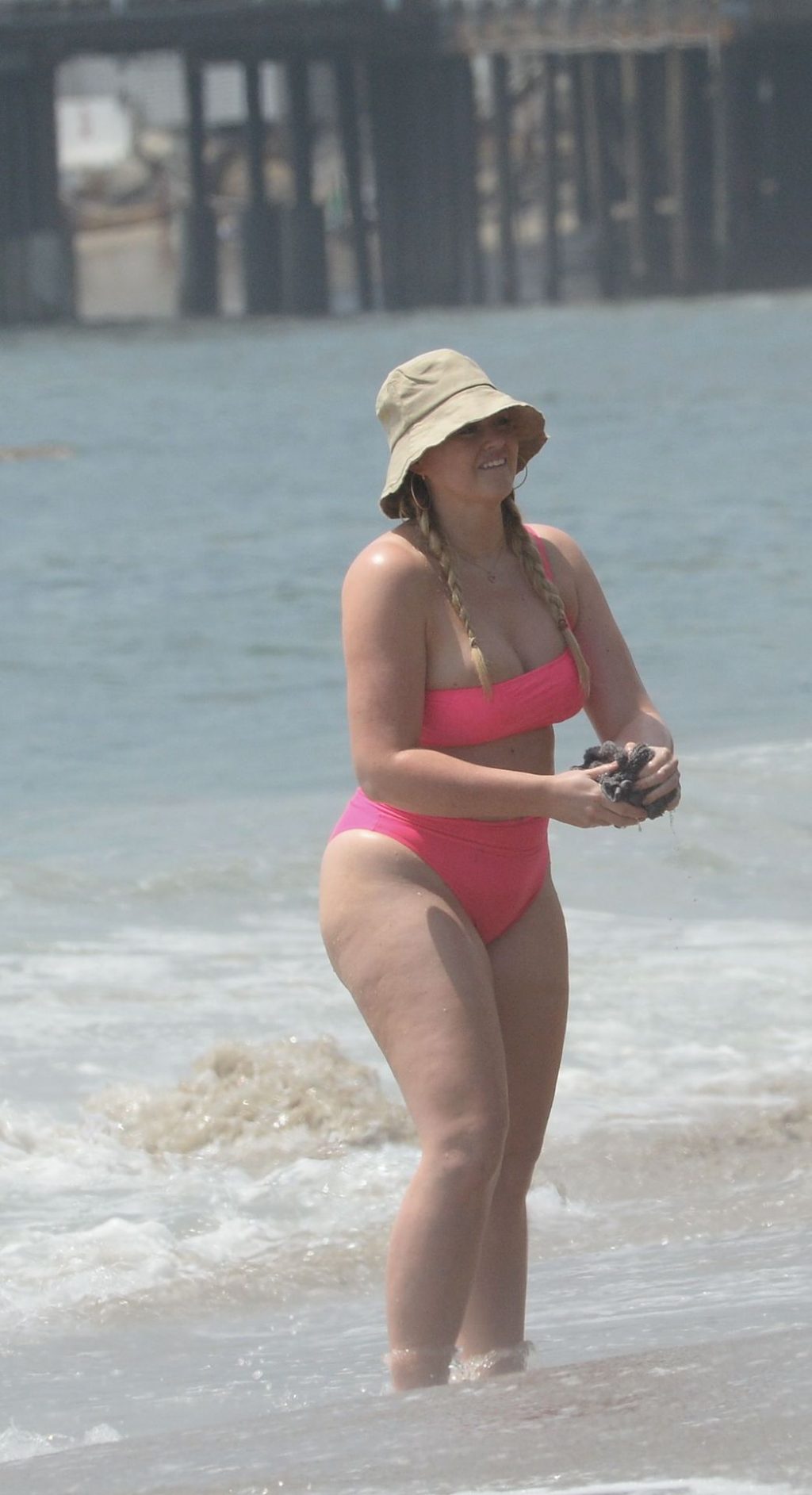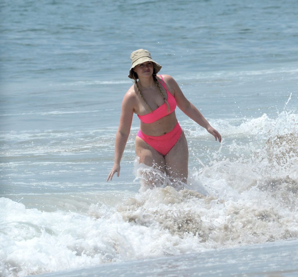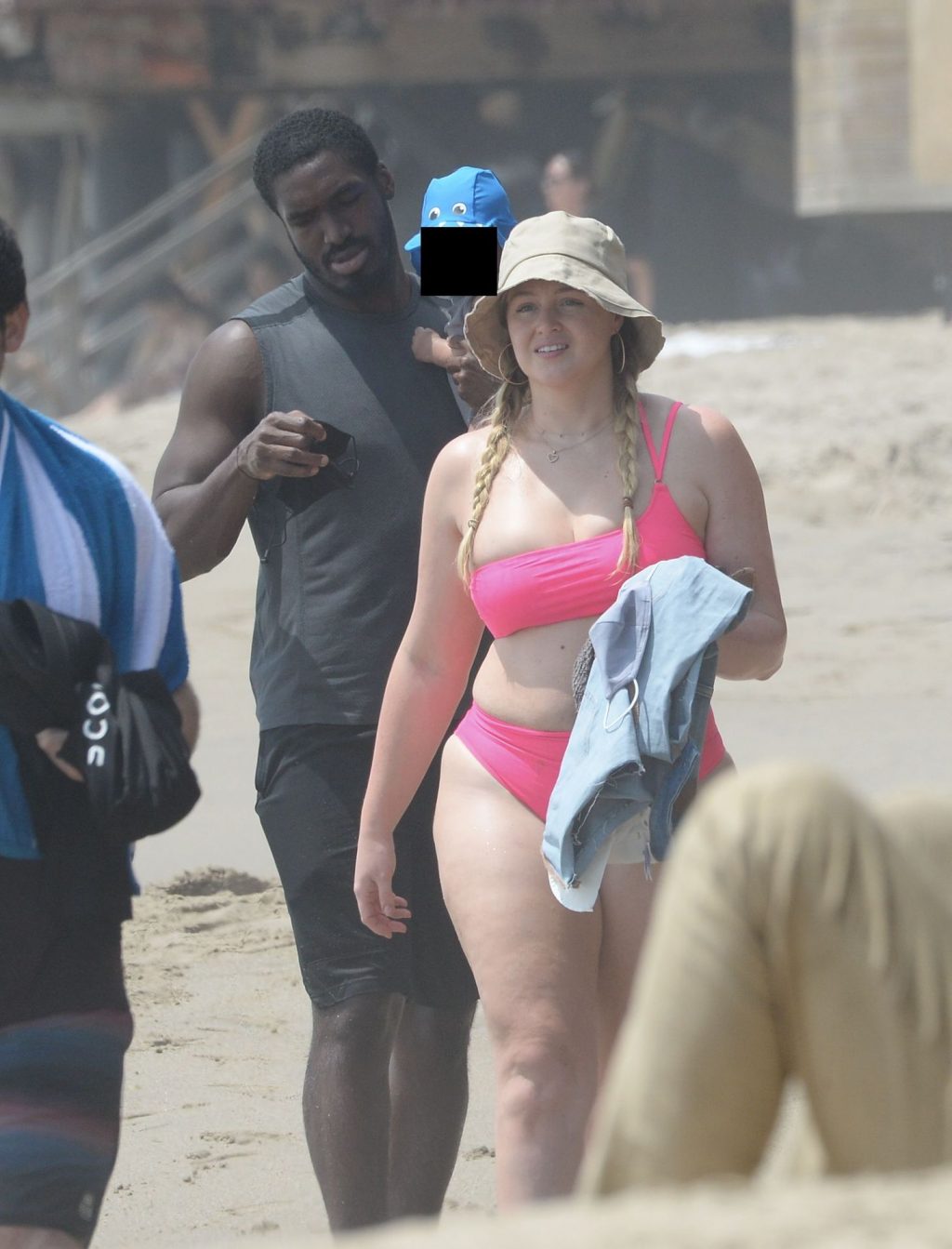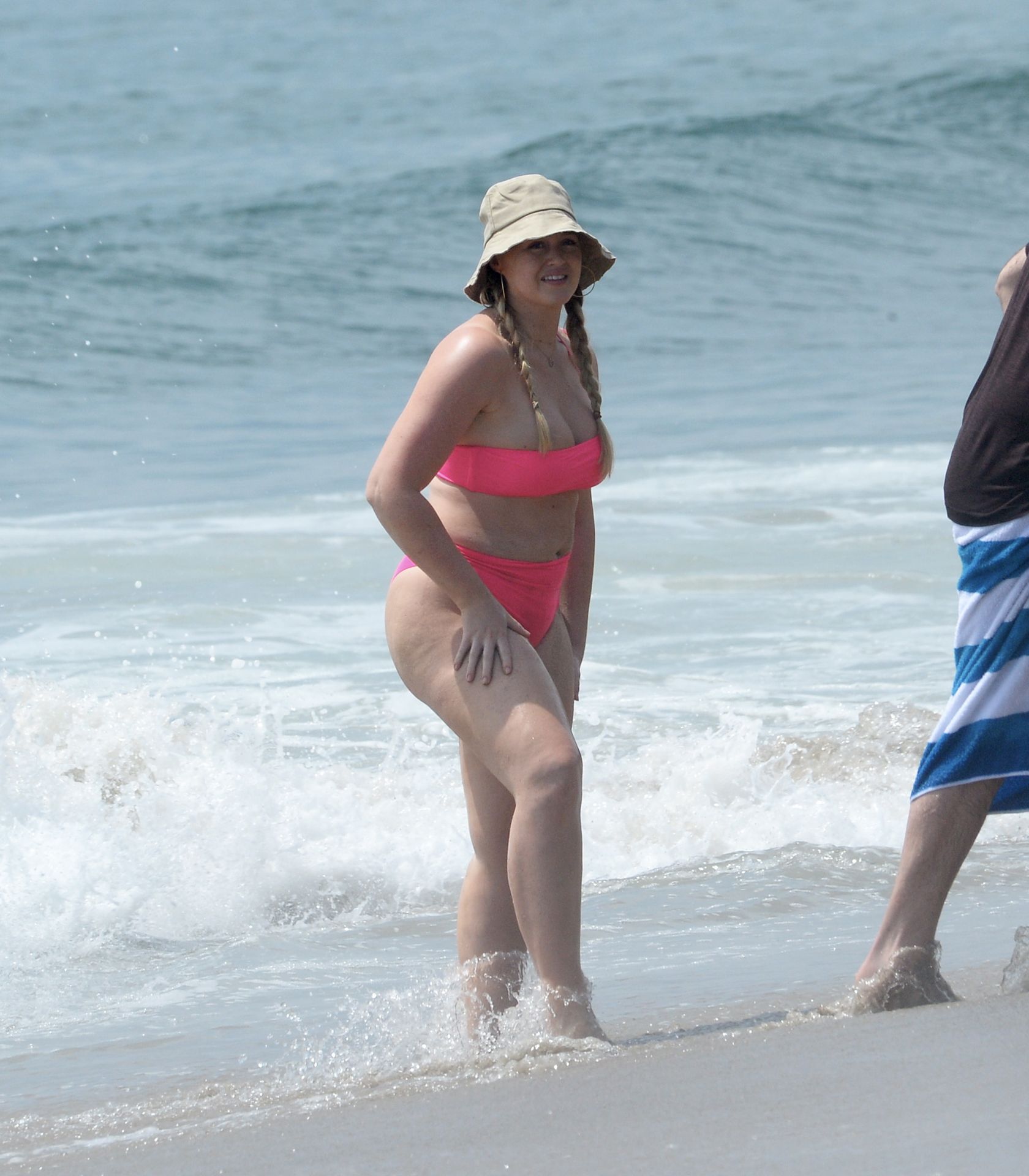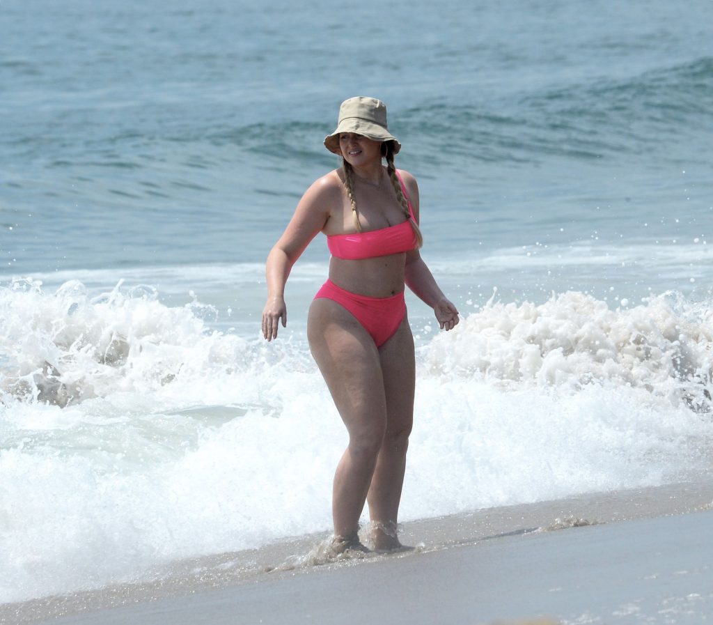 Iskra Lawrence llega a la playa con un bikini rosa intenso mientras disfruta de una salida con su novio Philip Payne en Malibu, 23/08/2020. La modelo británica y su ex deportista pasaron el día en la playa tomando fotos con su recién nacido.