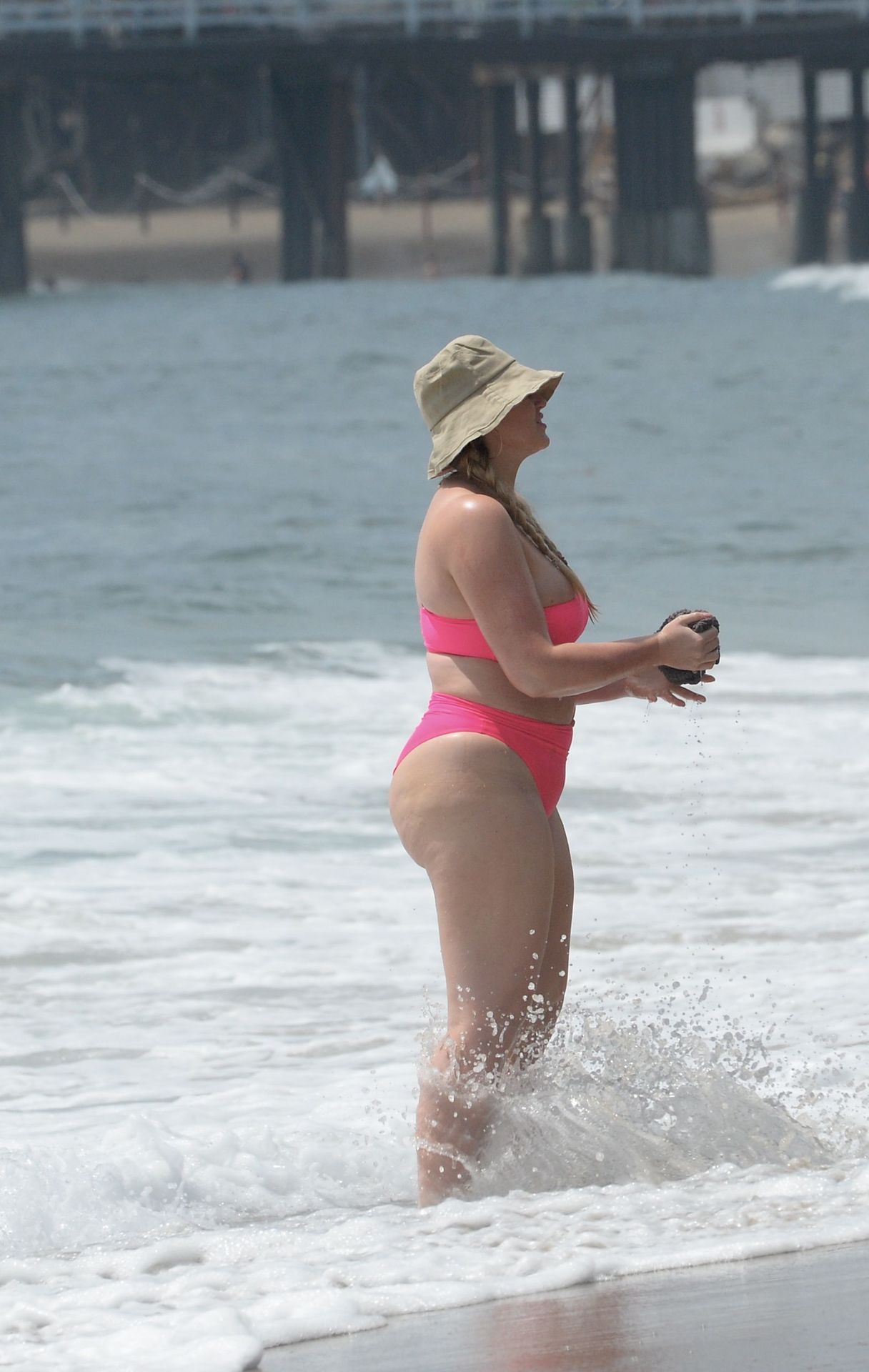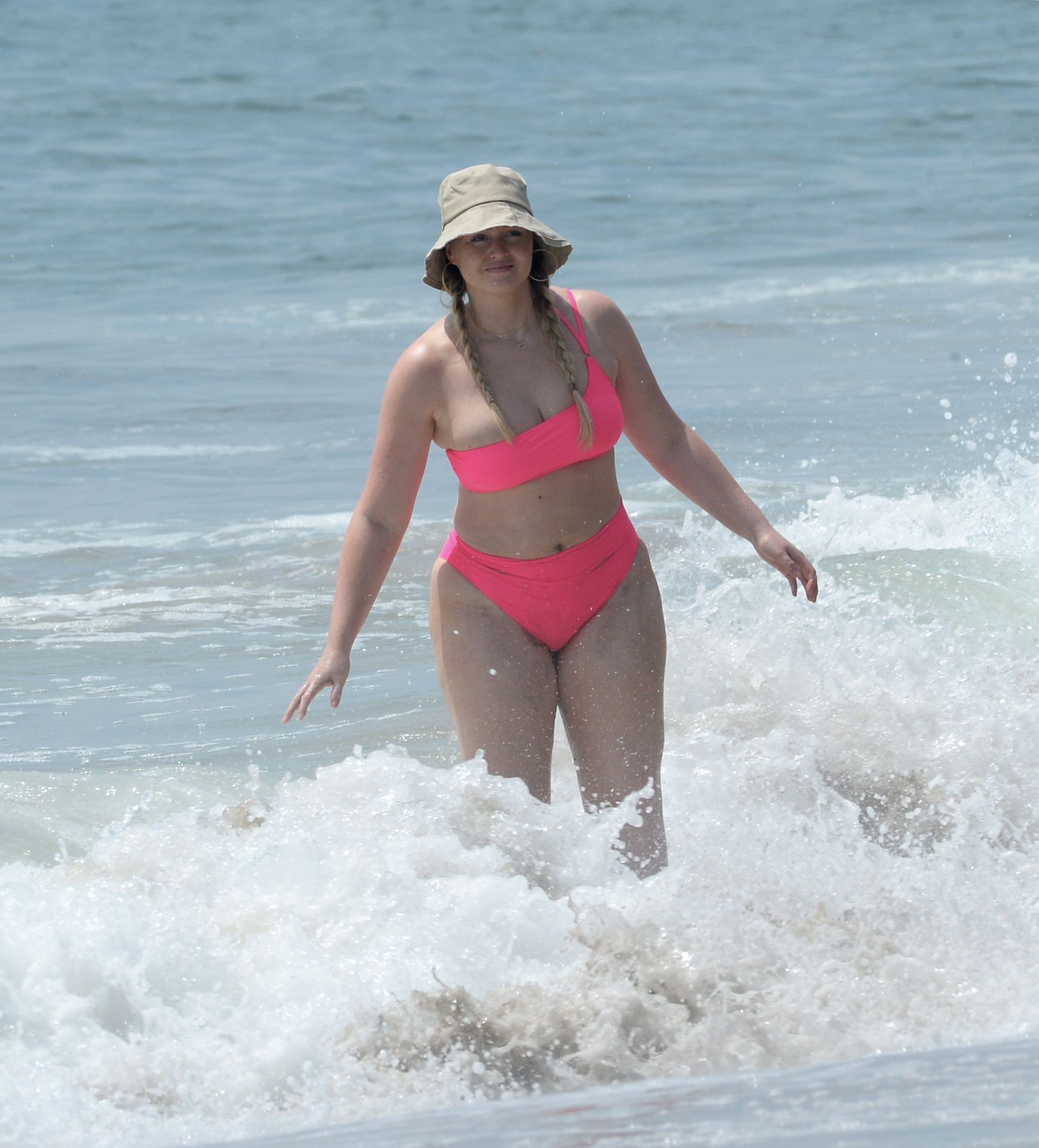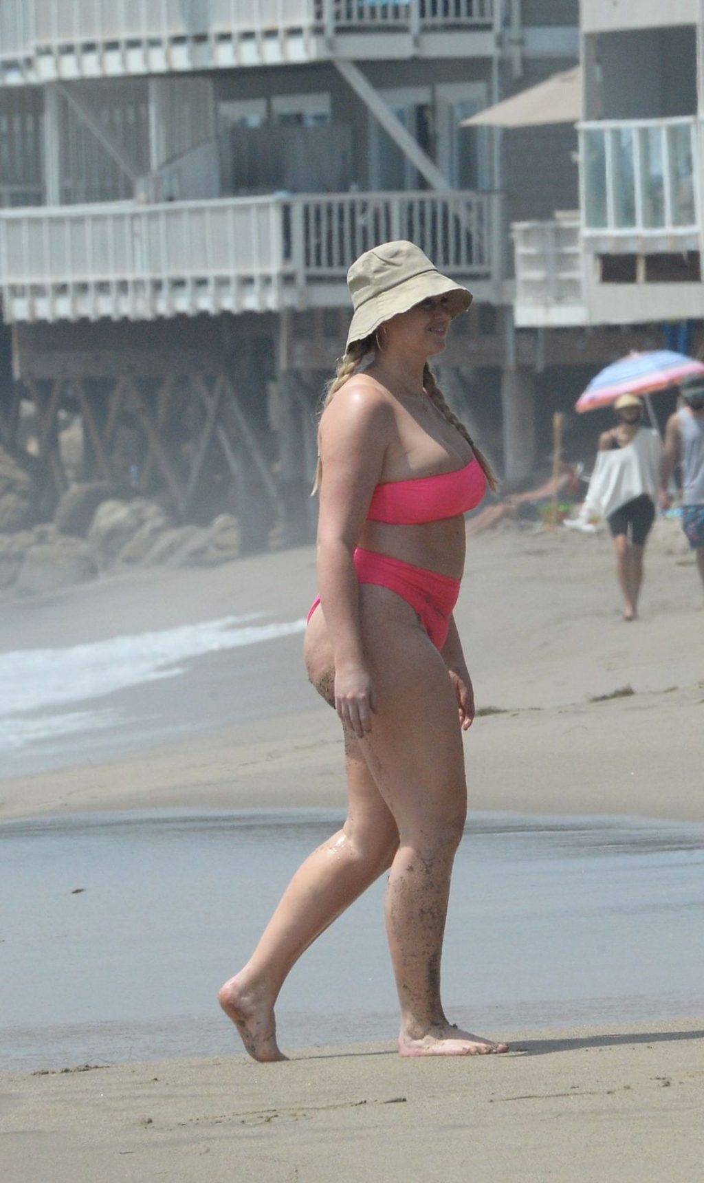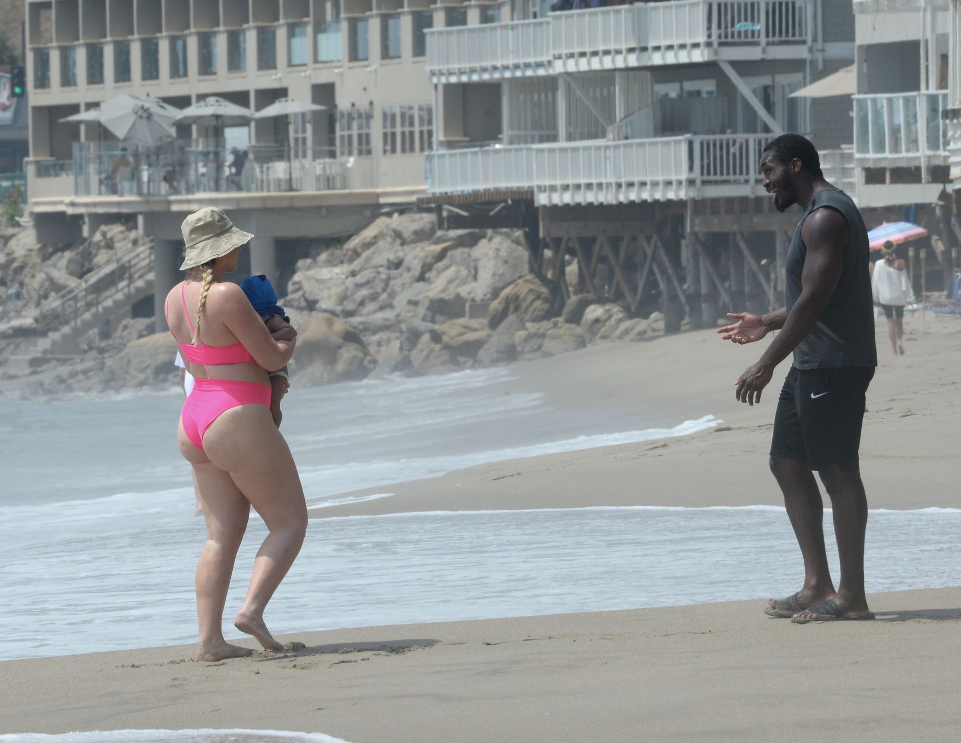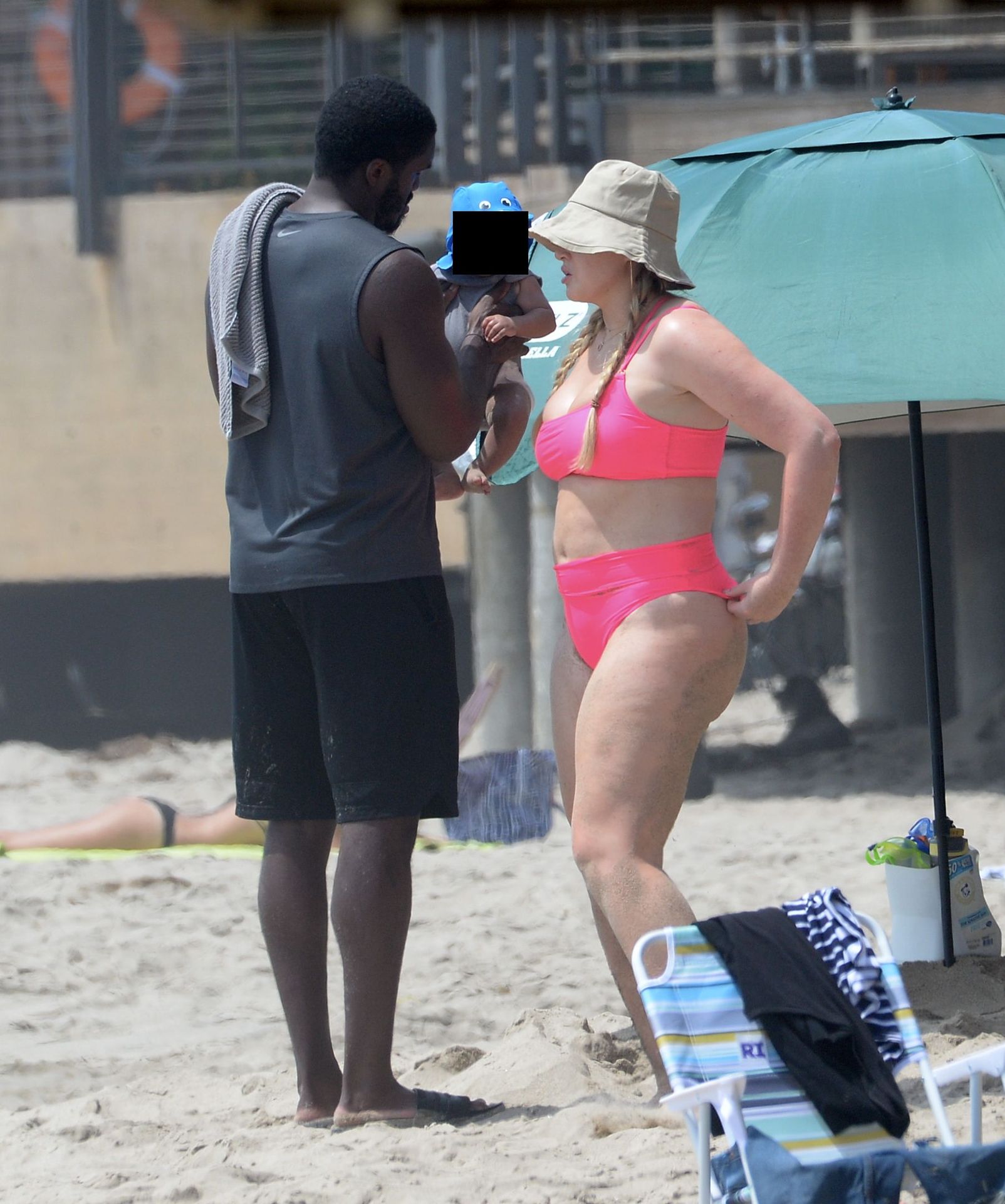 Iskra Lawrence llega a la playa con un bikini rosa intenso mientras disfruta de una salida con su novio Philip Payne en Malibu, 23/08/2020. La modelo británica y su ex deportista pasaron el día en la playa tomando fotos con su recién nacido.