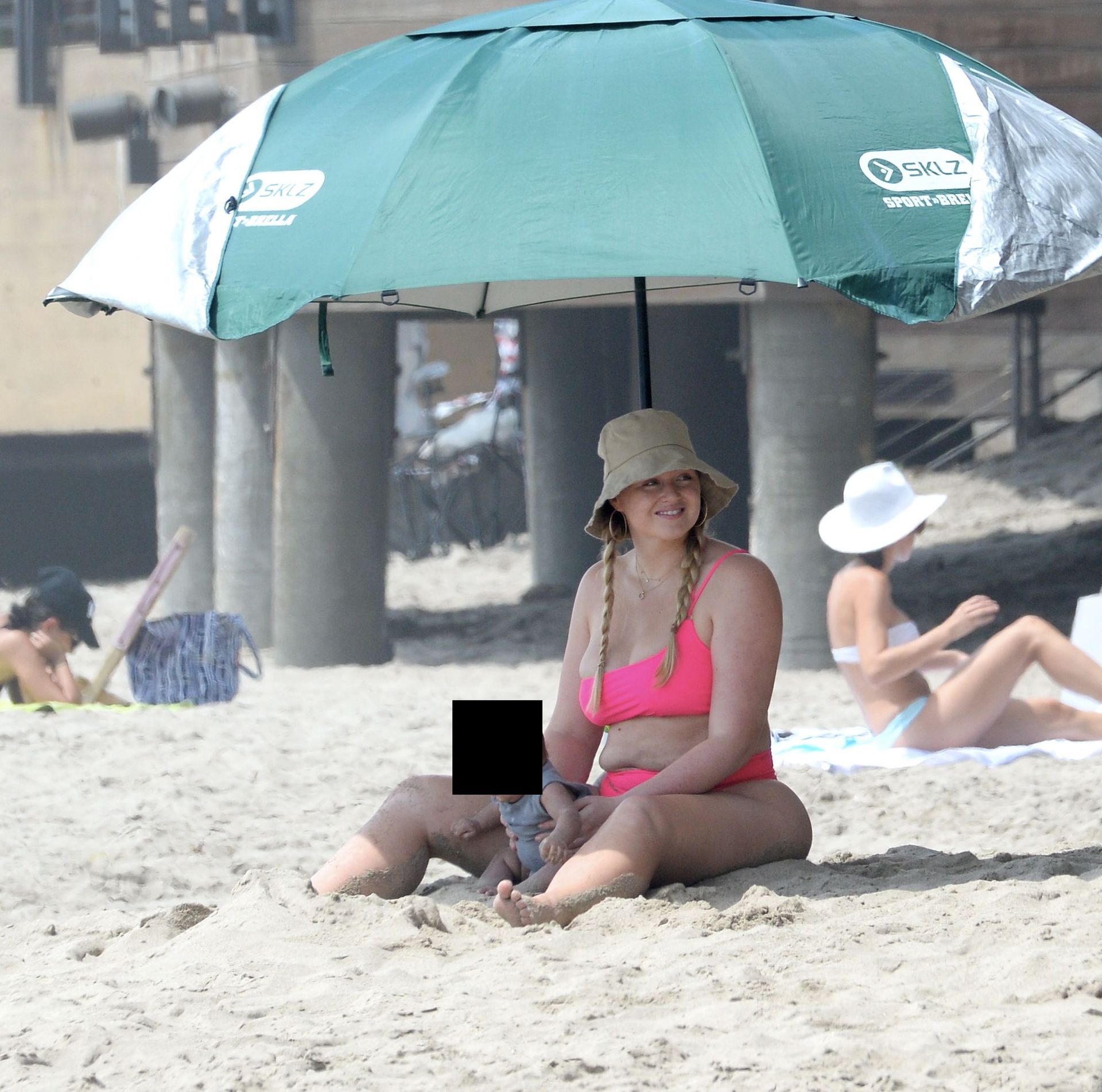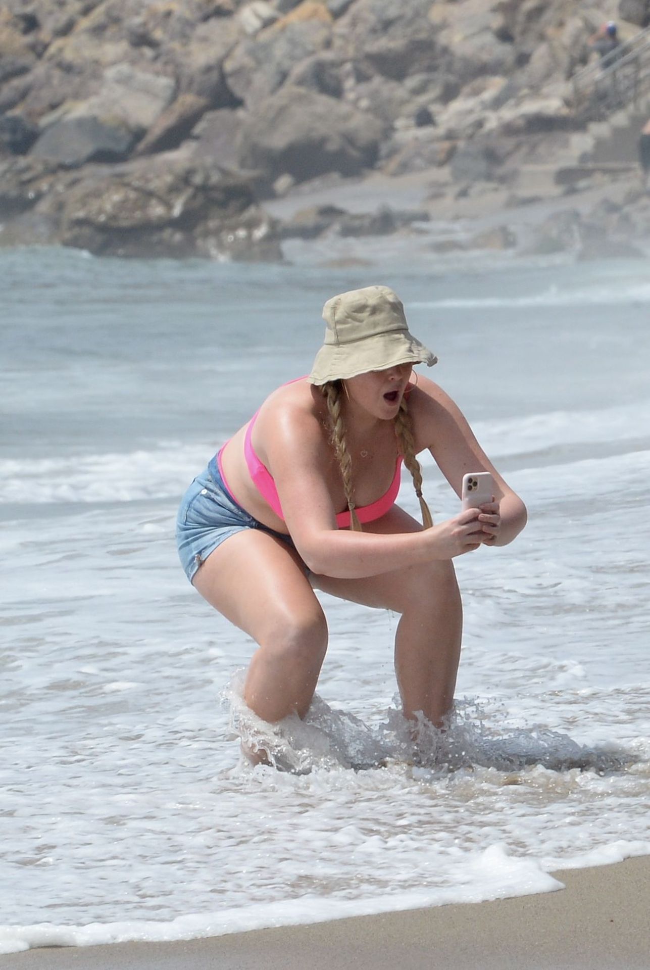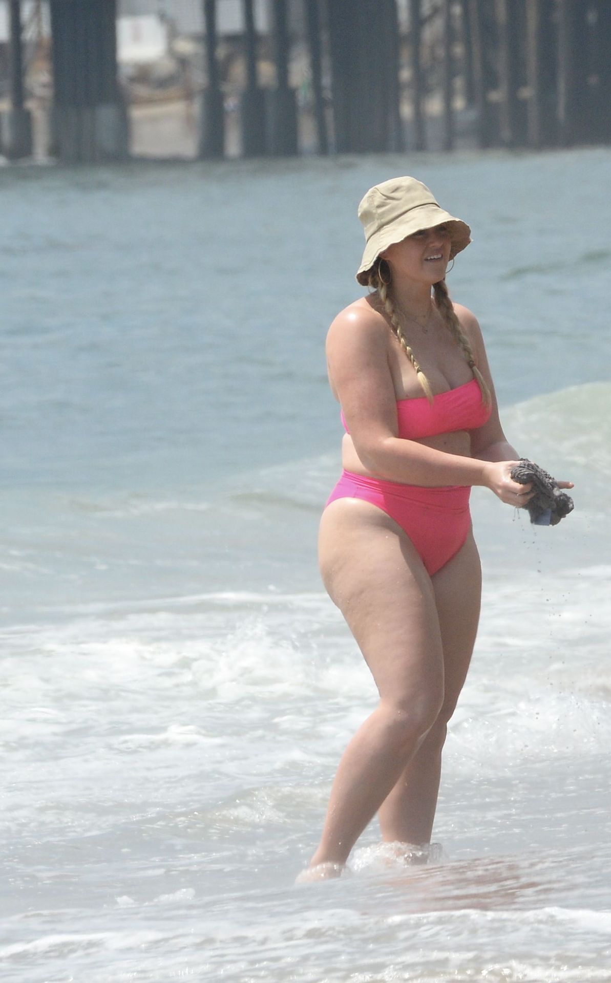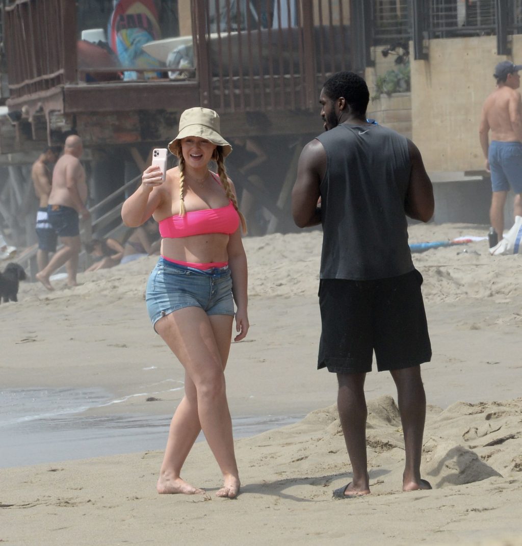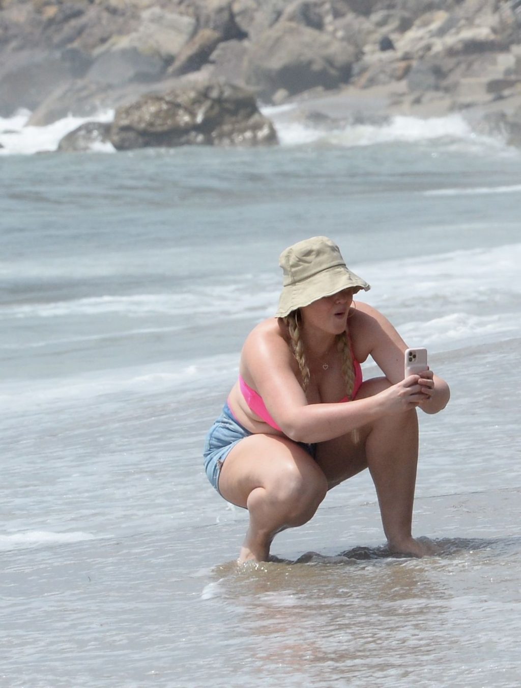 Iskra Lawrence llega a la playa con un bikini rosa intenso mientras disfruta de una salida con su novio Philip Payne en Malibu, 23/08/2020. La modelo británica y su ex deportista pasaron el día en la playa tomando fotos con su recién nacido.