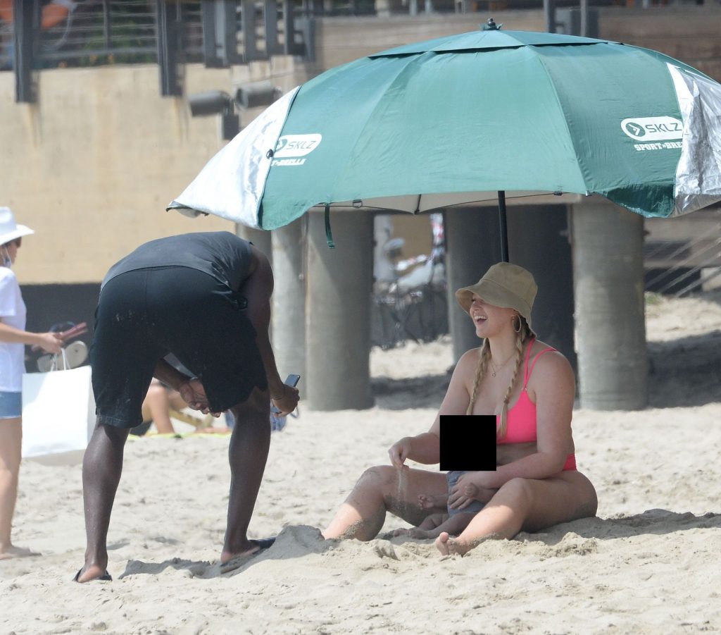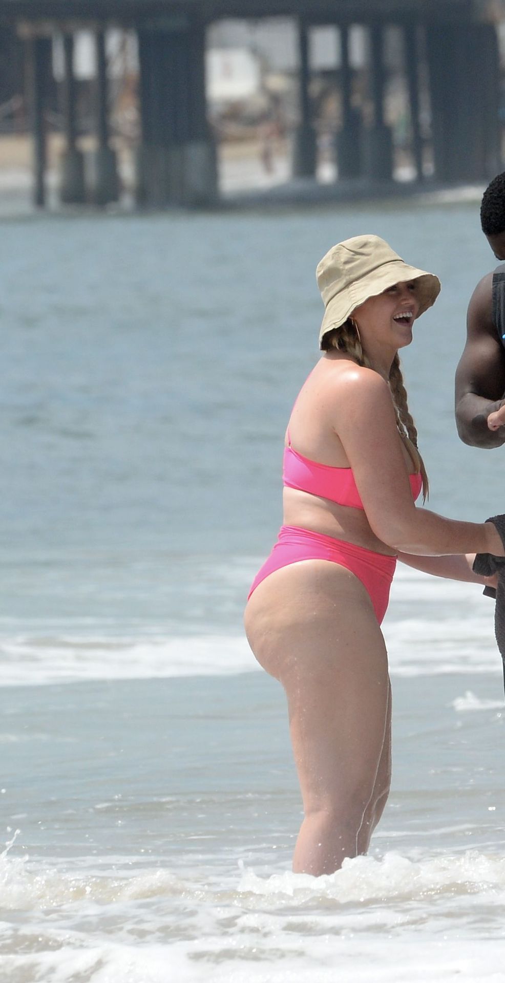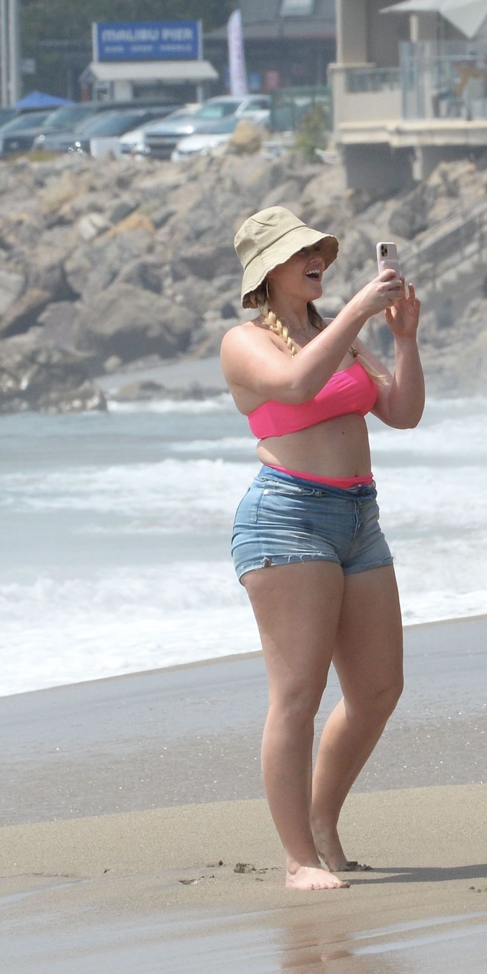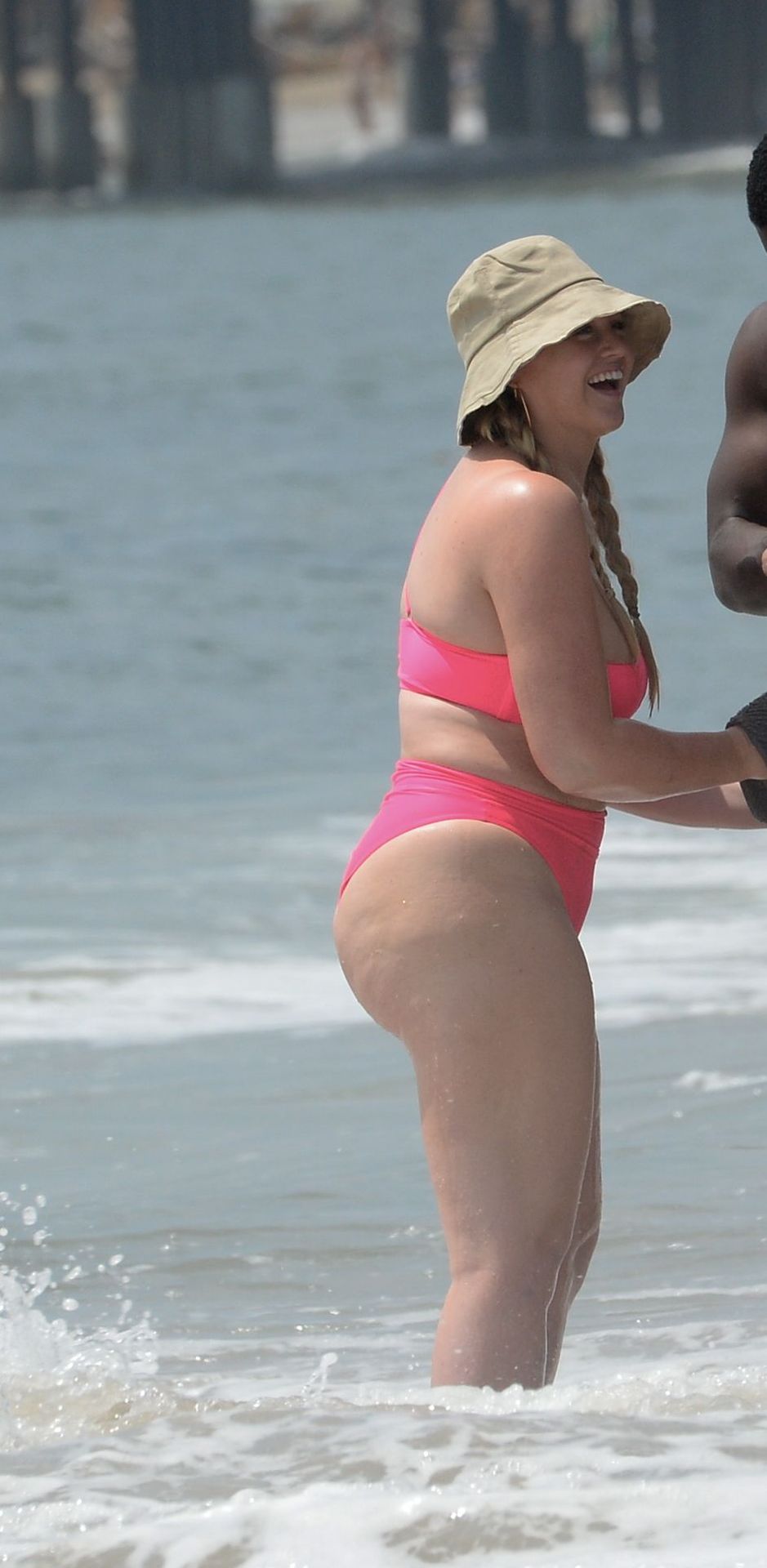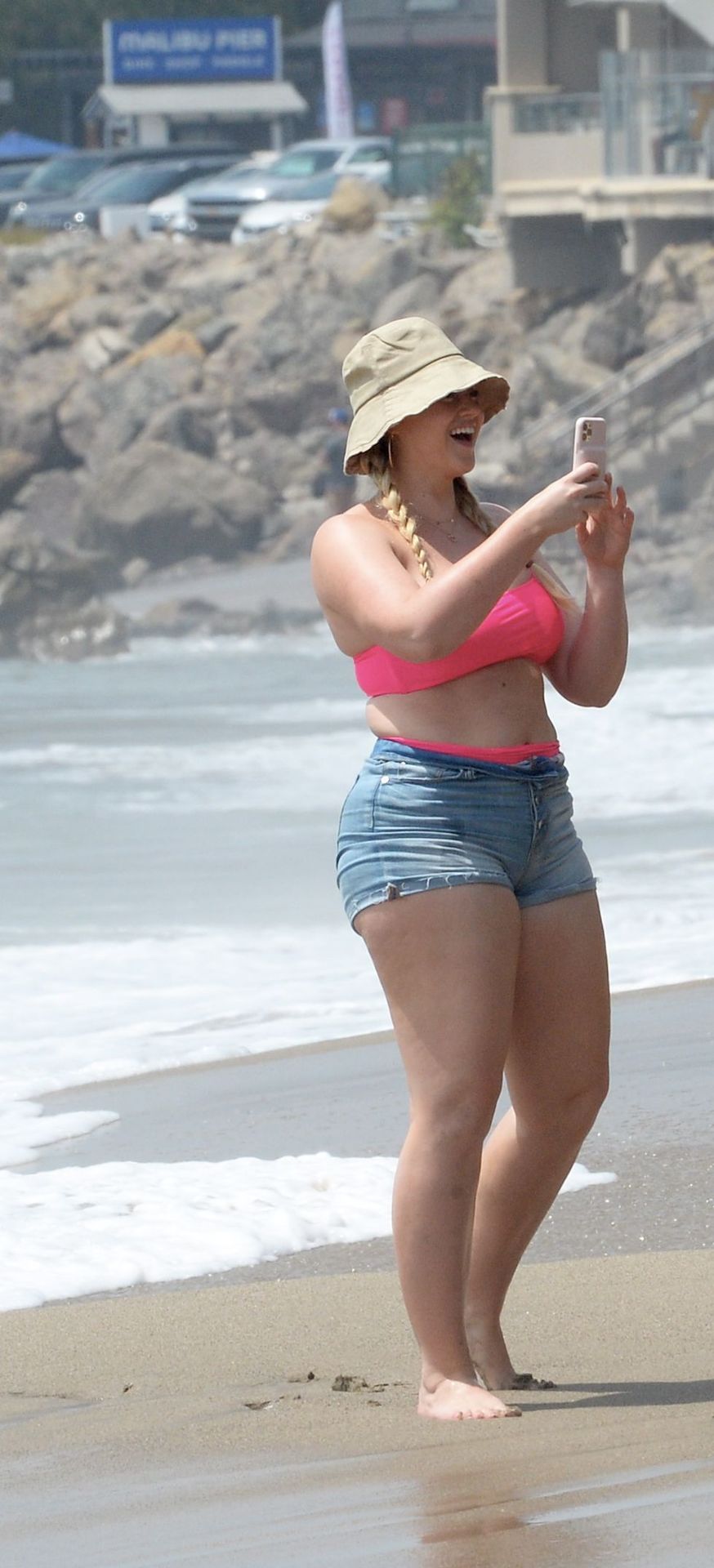 Iskra Lawrence llega a la playa con un bikini rosa intenso mientras disfruta de una salida con su novio Philip Payne en Malibu, 23/08/2020. La modelo británica y su ex deportista pasaron el día en la playa tomando fotos con su recién nacido.