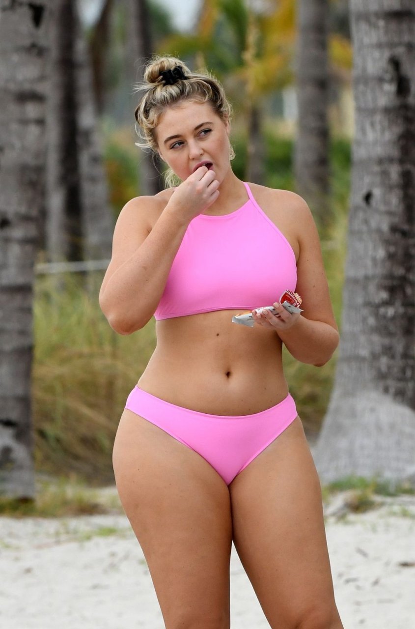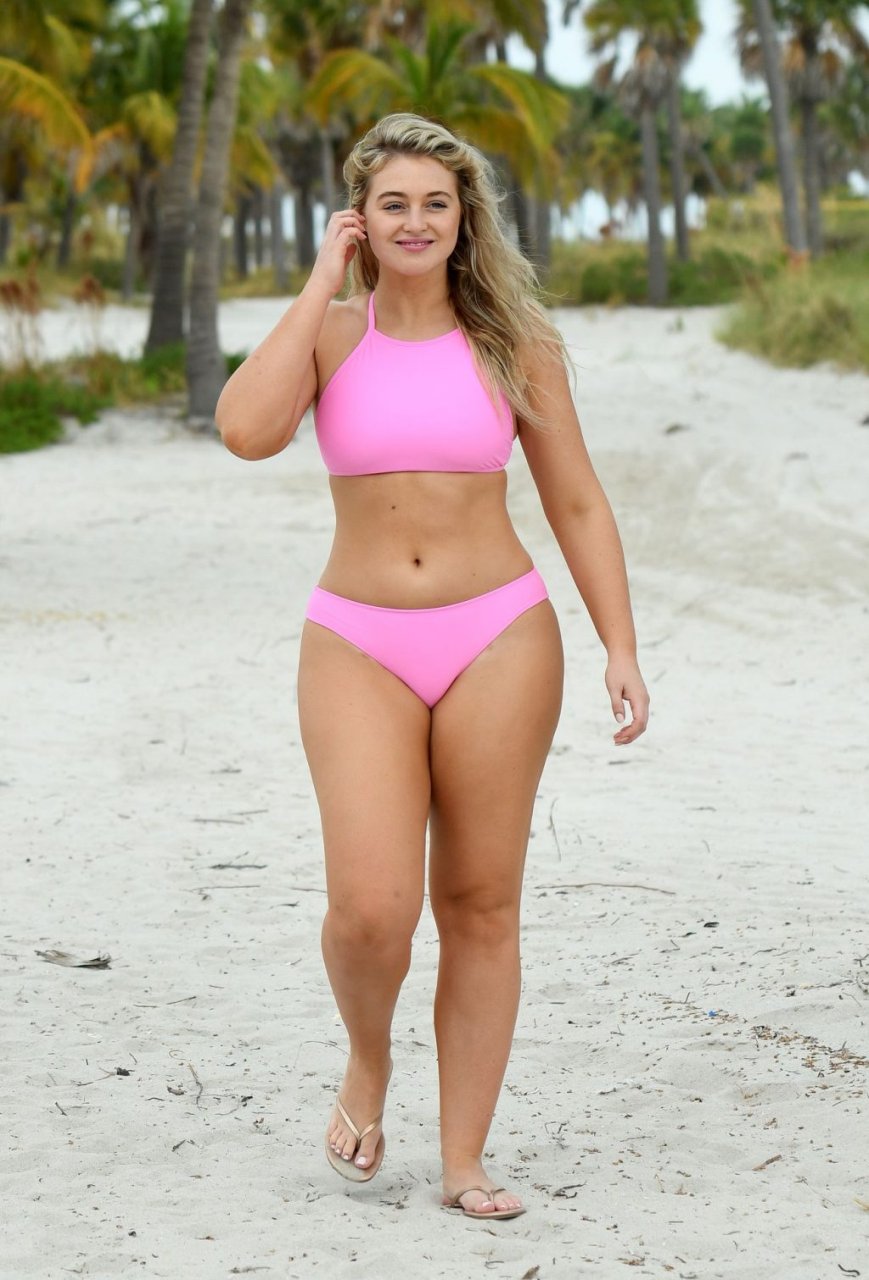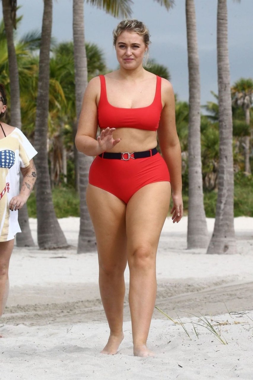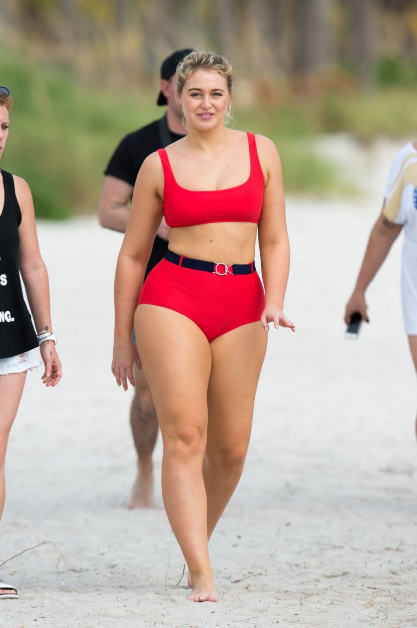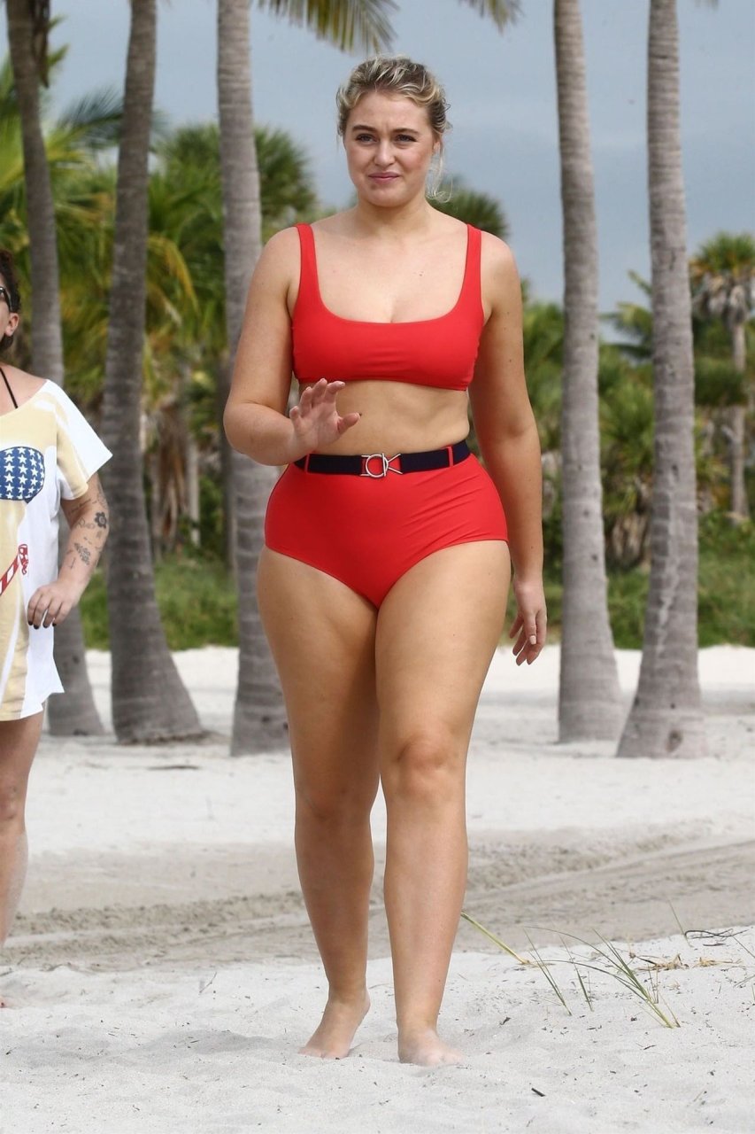 La modelo británica Iskra Lawrence fue vista haciendo una sesión de fotos para Aerie en la playa de Miami, 27/11/2018. Iskra estaba sonriente mientras disfrutaba otro día de sesión para la línea de trajes de baño.