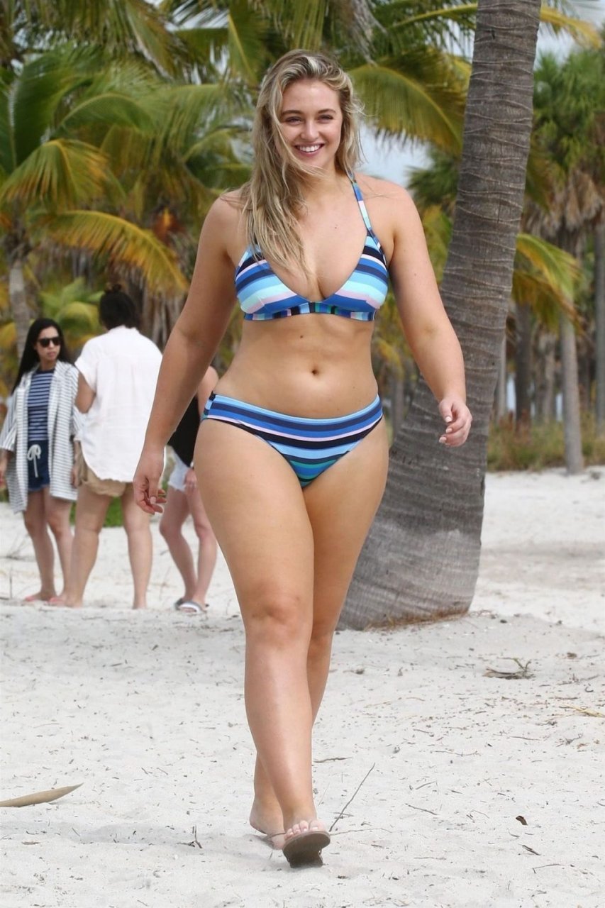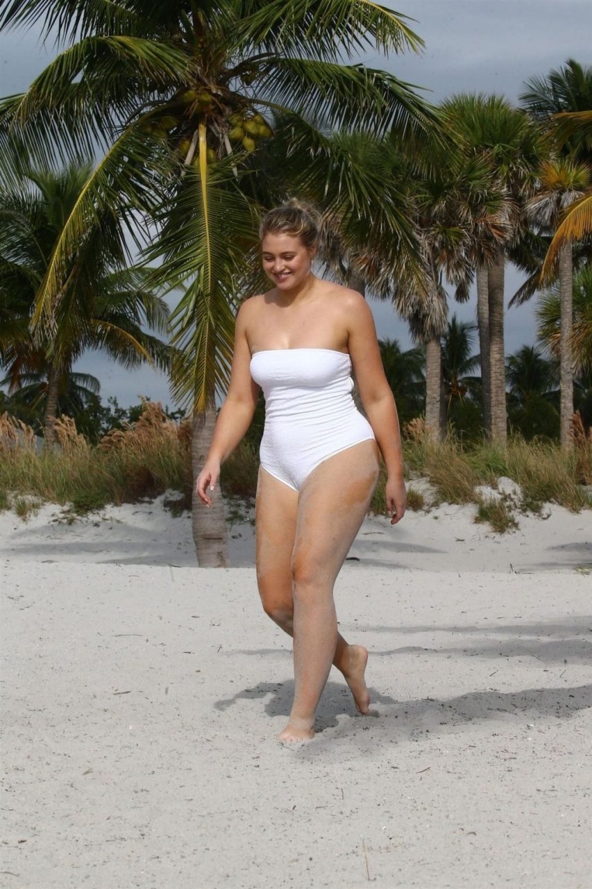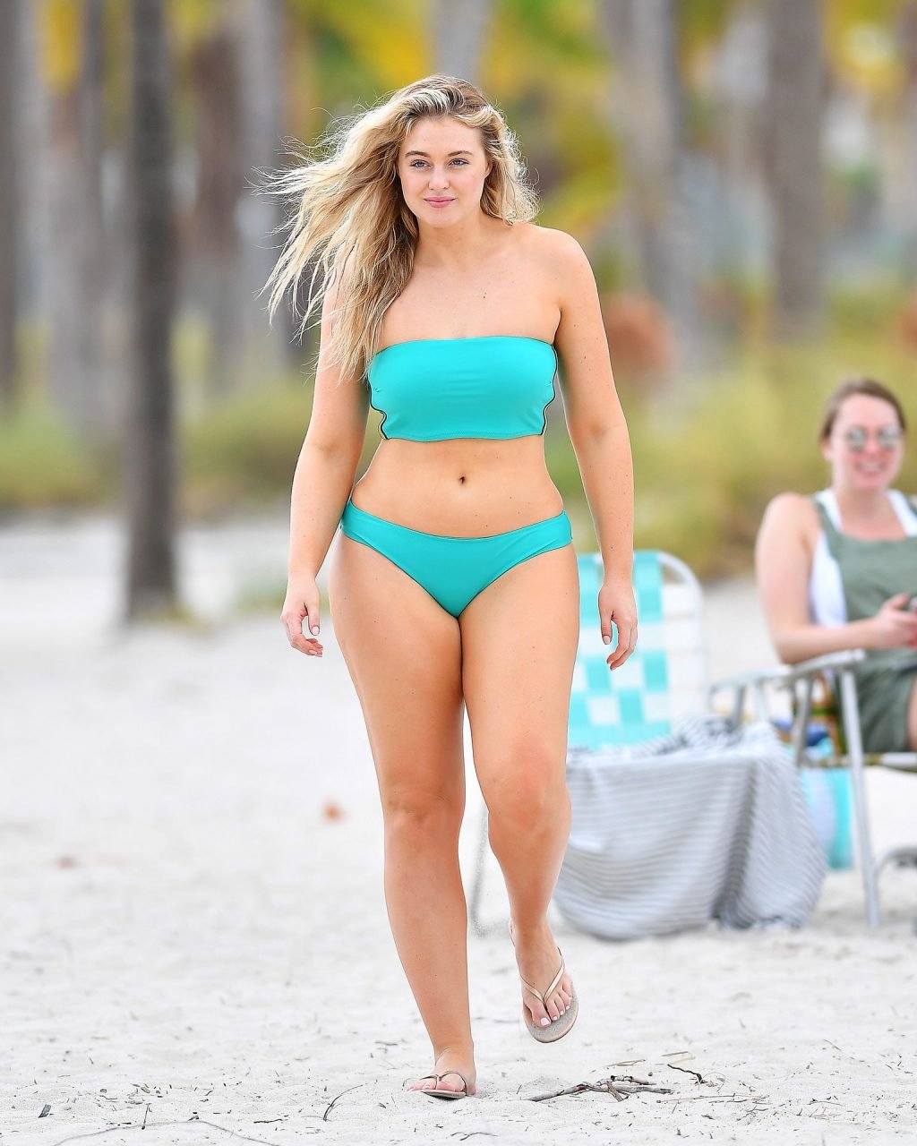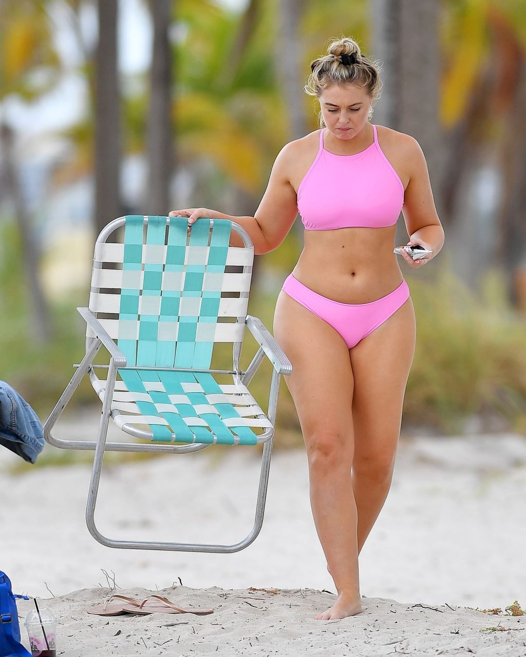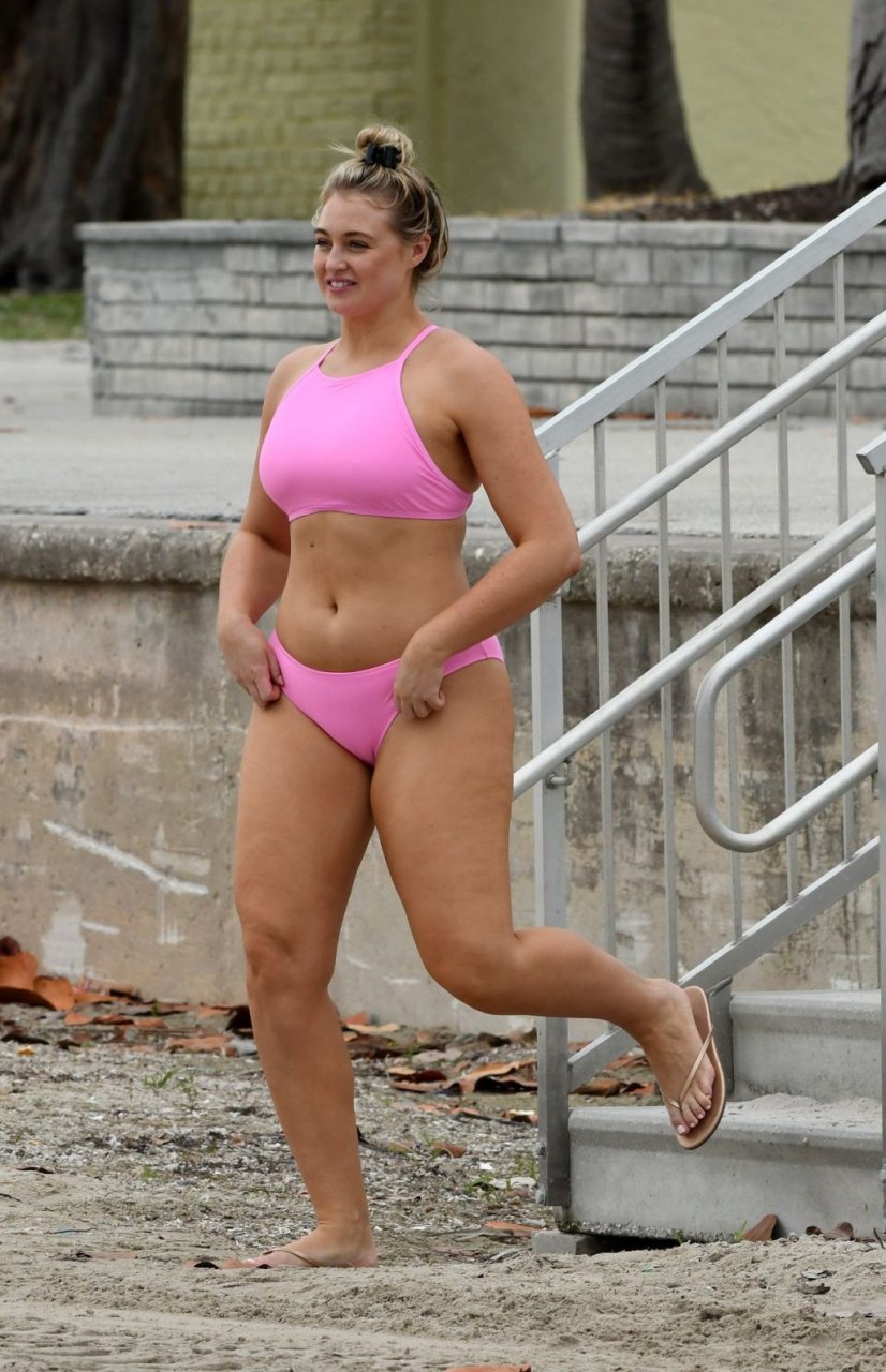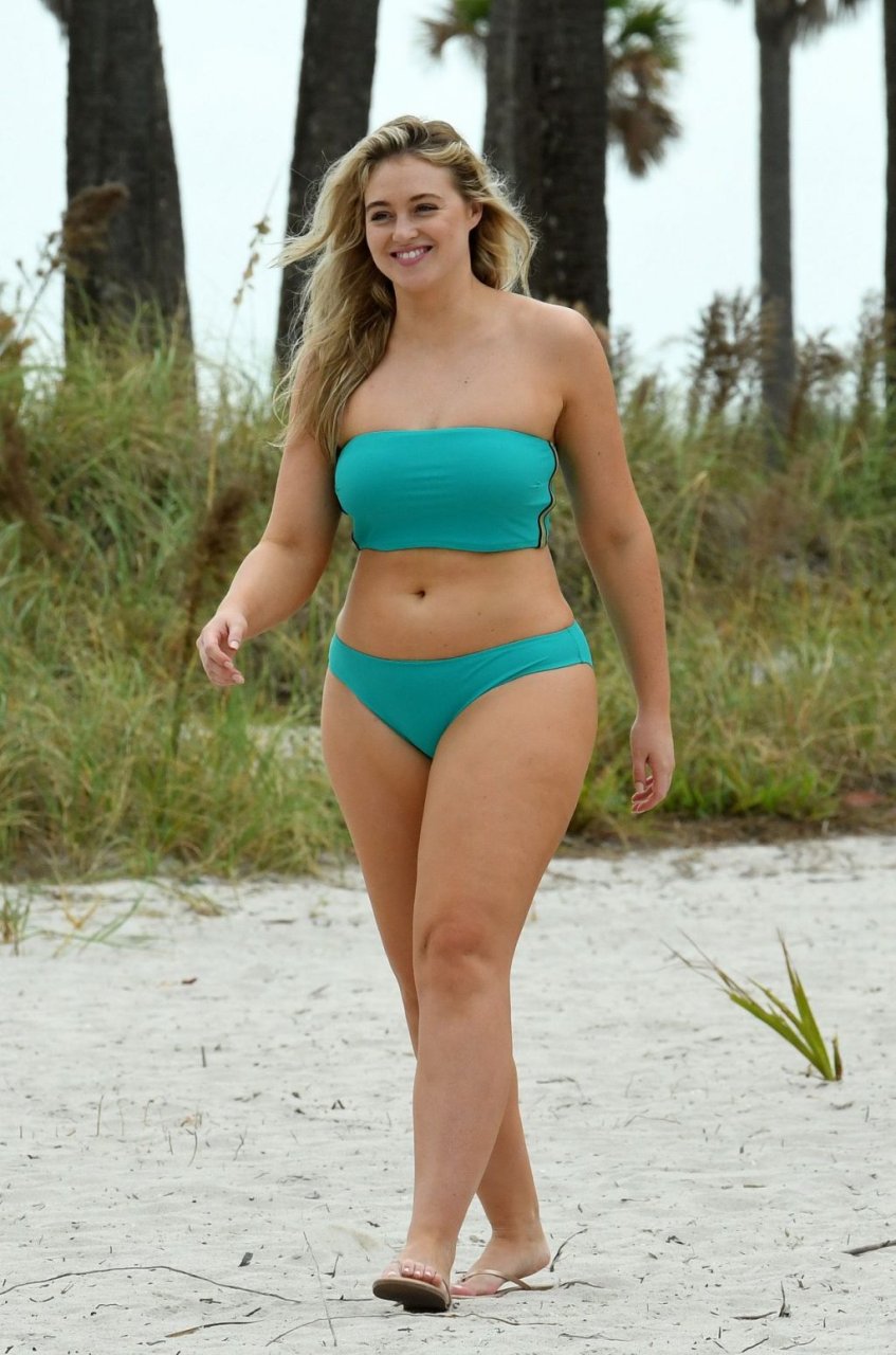 La modelo británica Iskra Lawrence fue vista haciendo una sesión de fotos para Aerie en la playa de Miami, 27/11/2018. Iskra estaba sonriente mientras disfrutaba otro día de sesión para la línea de trajes de baño.