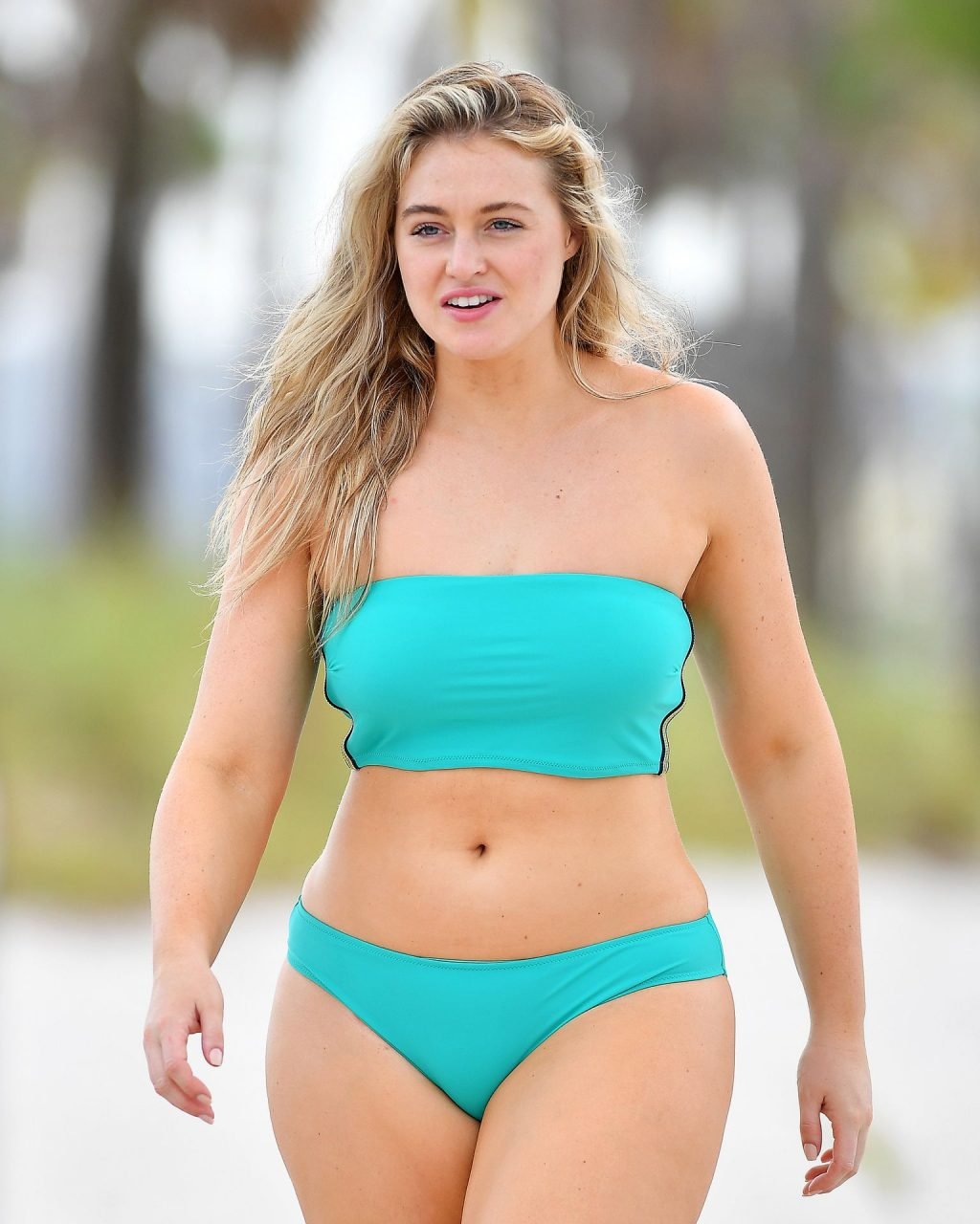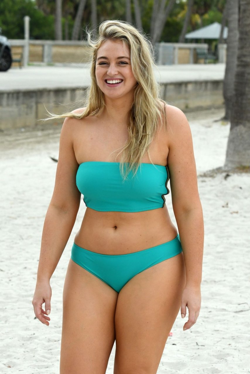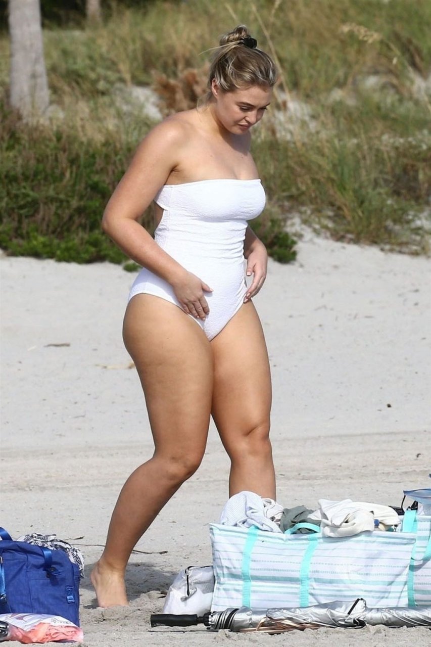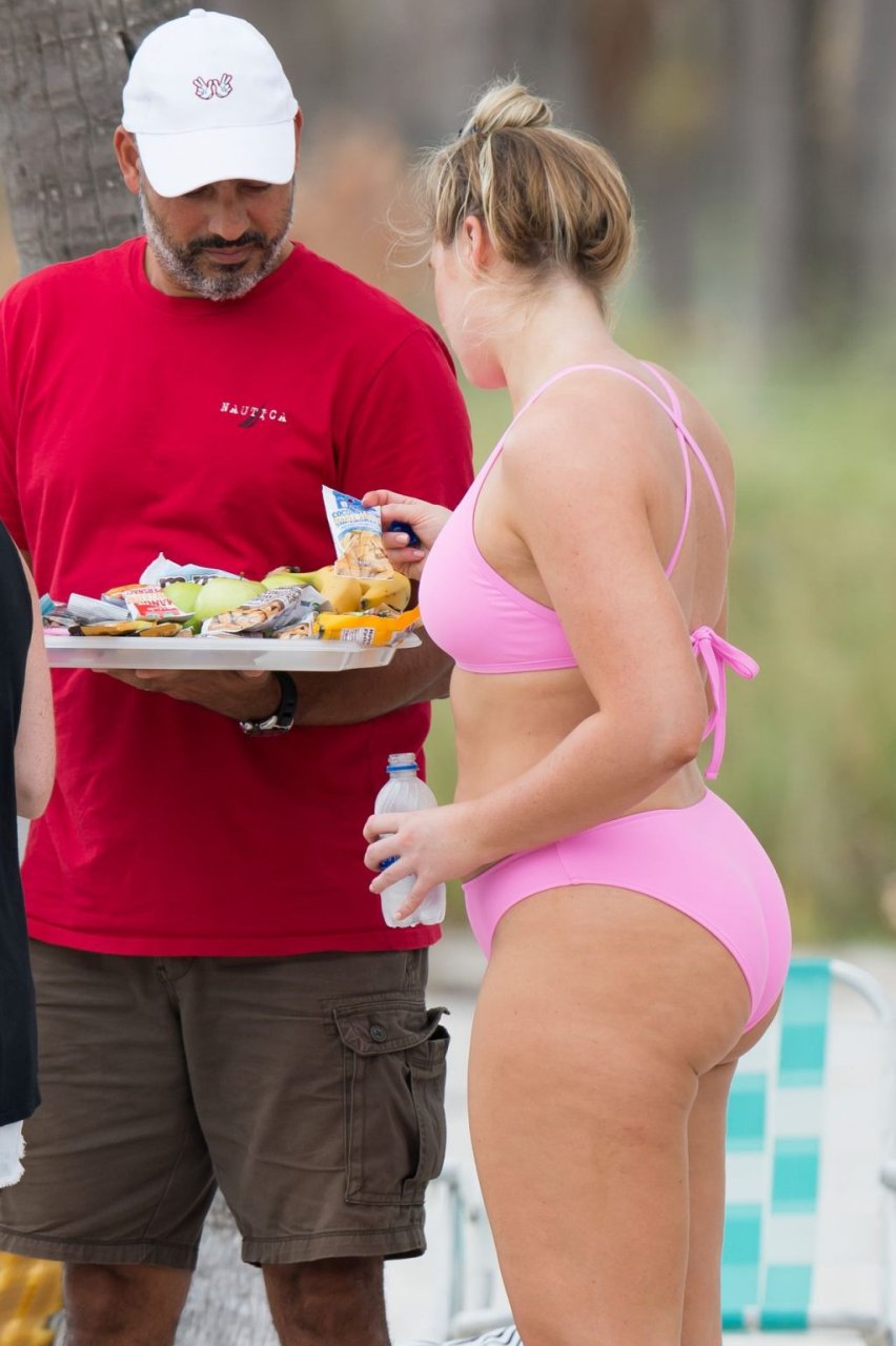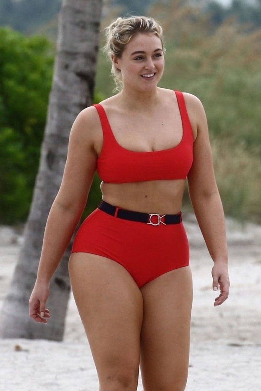 La modelo británica Iskra Lawrence fue vista haciendo una sesión de fotos para Aerie en la playa de Miami, 27/11/2018. Iskra estaba sonriente mientras disfrutaba otro día de sesión para la línea de trajes de baño.