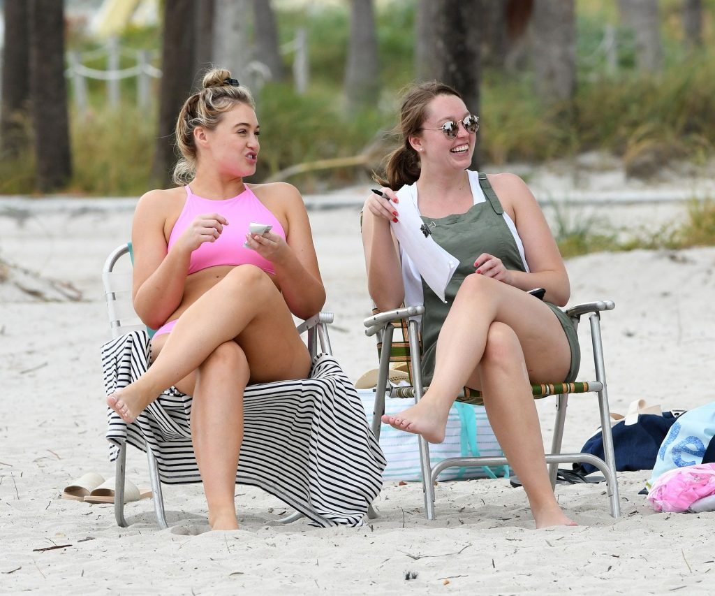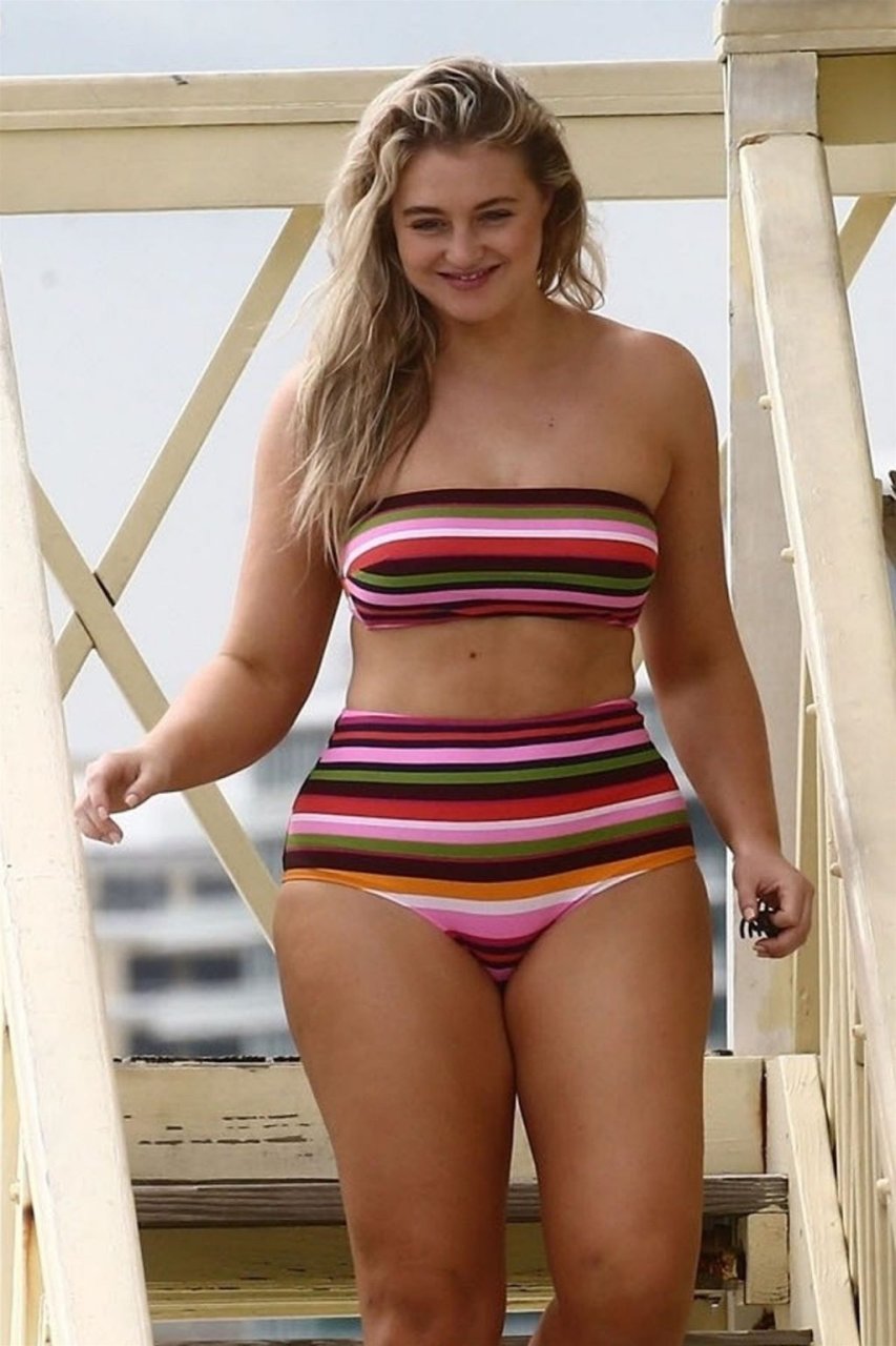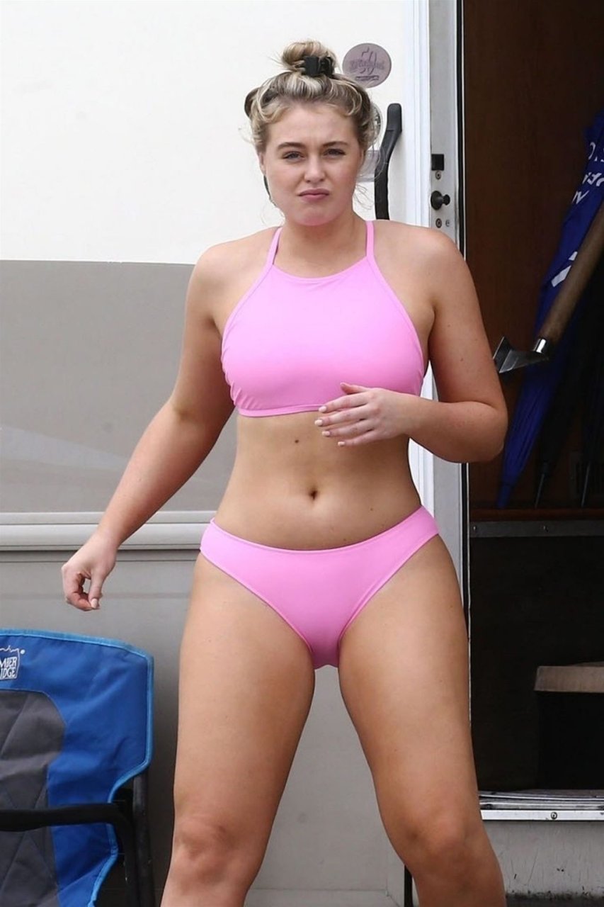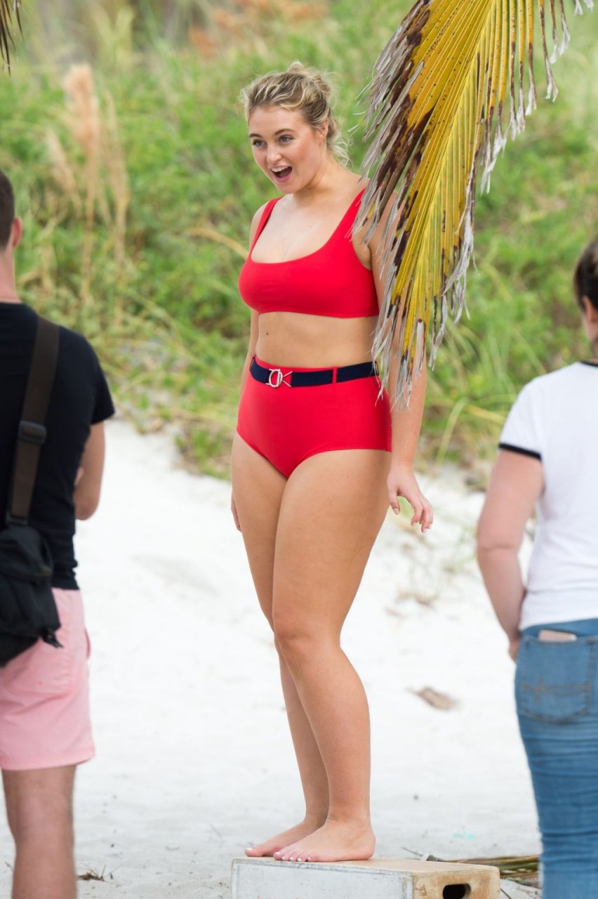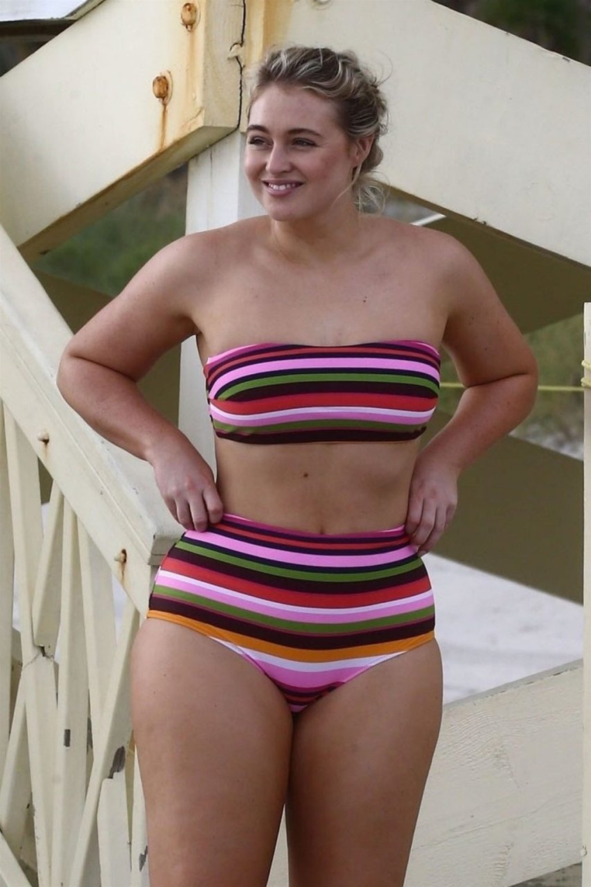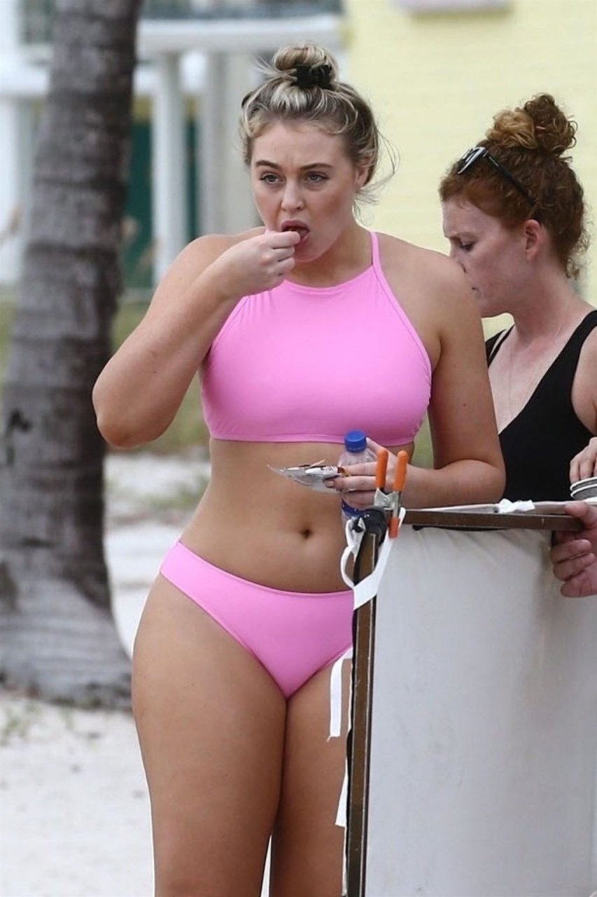 La modelo británica Iskra Lawrence fue vista haciendo una sesión de fotos para Aerie en la playa de Miami, 27/11/2018. Iskra estaba sonriente mientras disfrutaba otro día de sesión para la línea de trajes de baño.